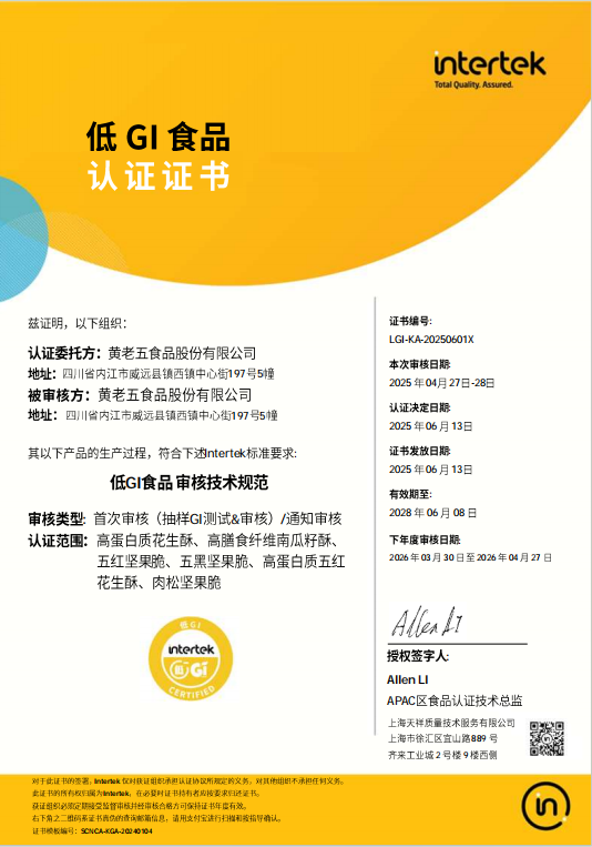 产品已获得权威机构颁发的低GI(血糖生成指数)食品认证。
