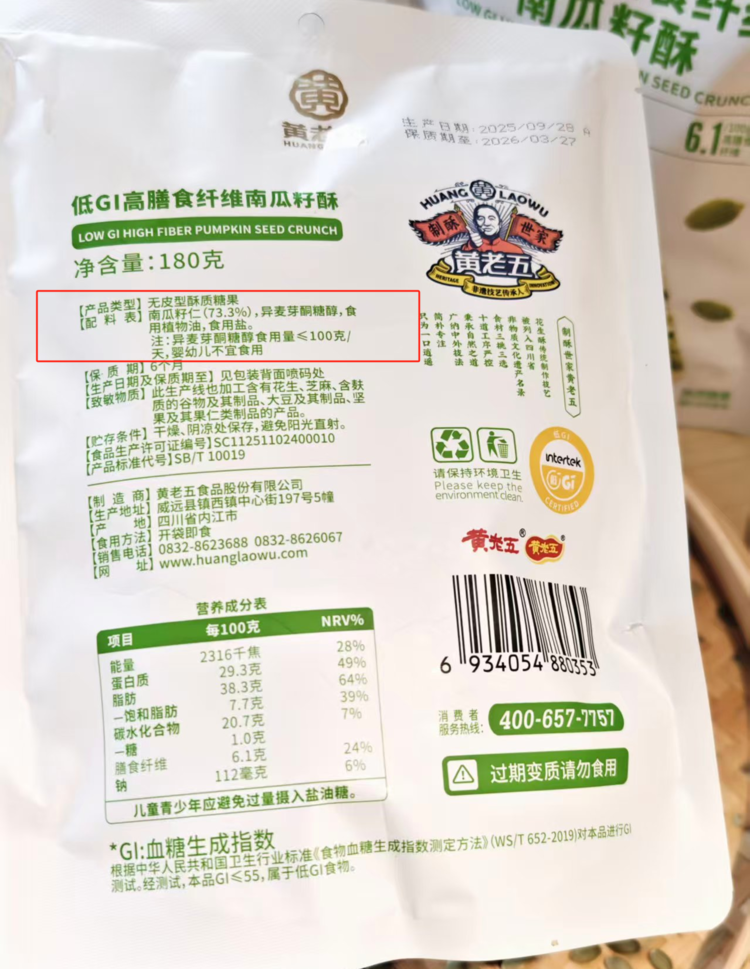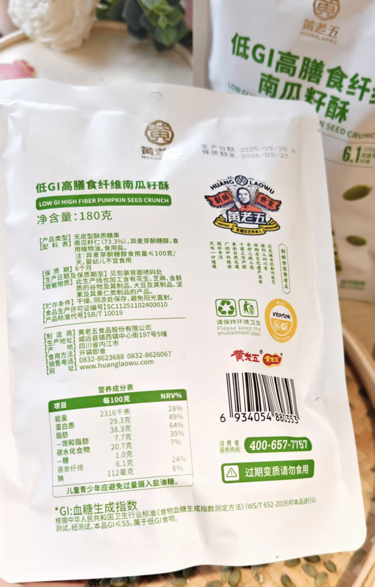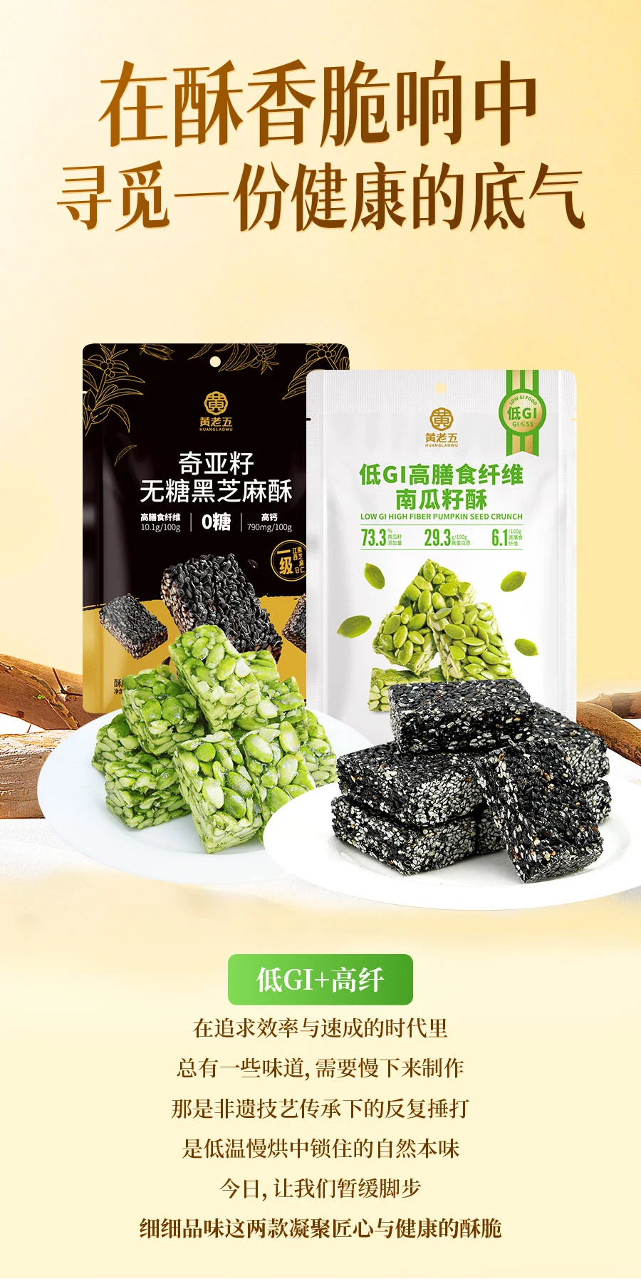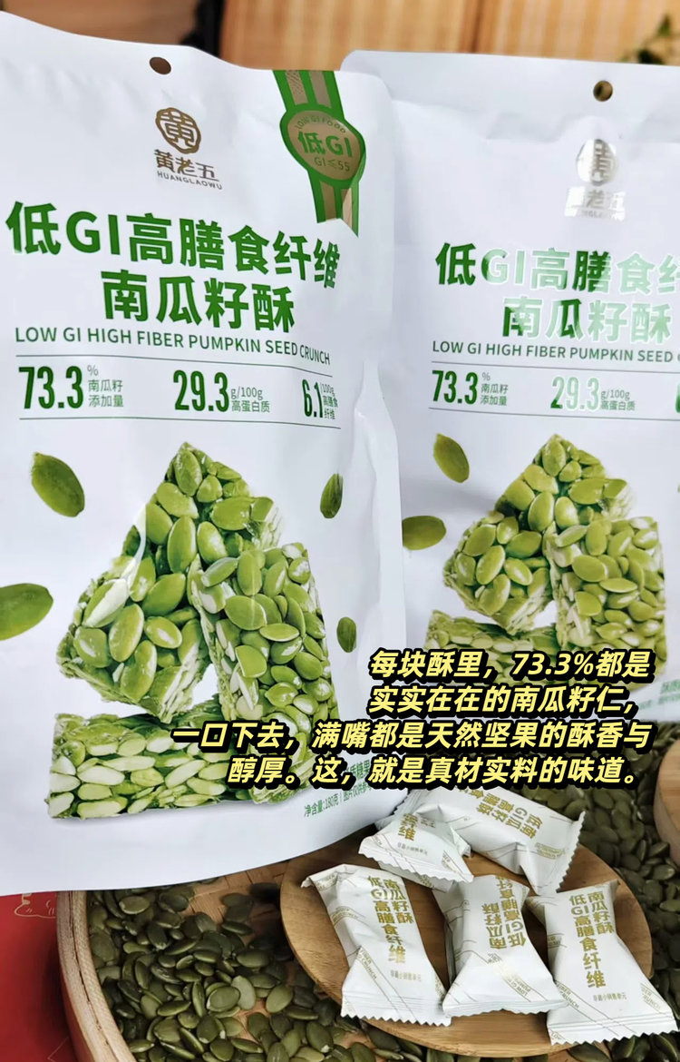 【黄老五低GI配方南瓜籽酥/黄老五奇亚籽无糖黑芝麻酥】黄老五龙头企业匠心作 低 GI 认证南瓜籽酥 黑芝麻+奇亚籽双重高营养酥脆不腻口 高膳食纤维无负担 独立包装便携带