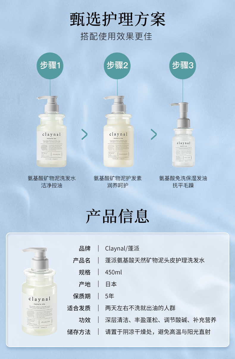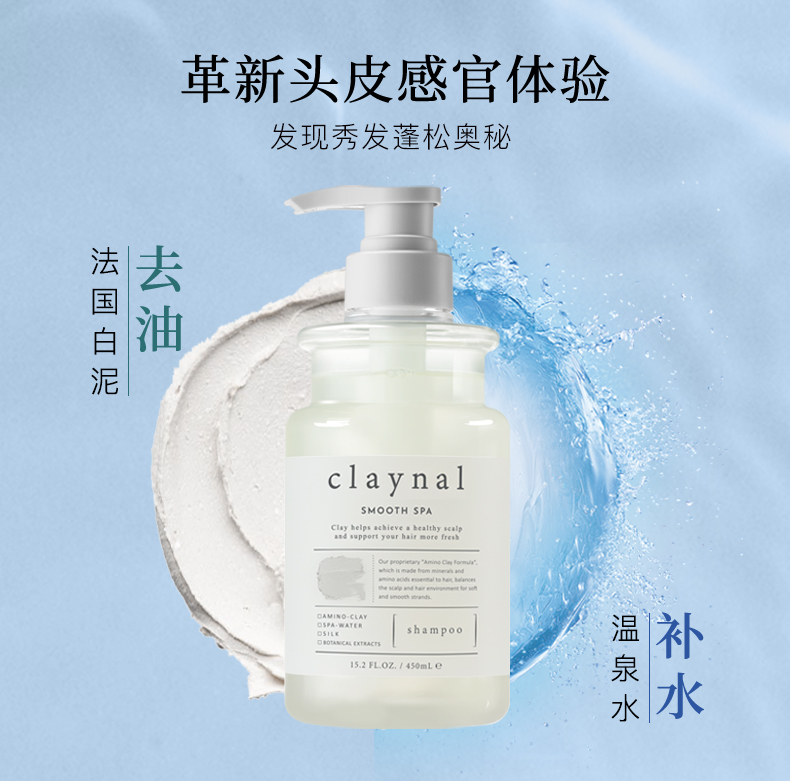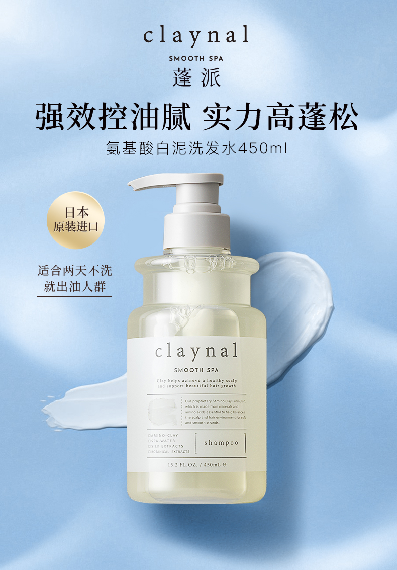 日本进口claynal蓬派 氨基酸天然矿物泥头皮护理洗发水450ml