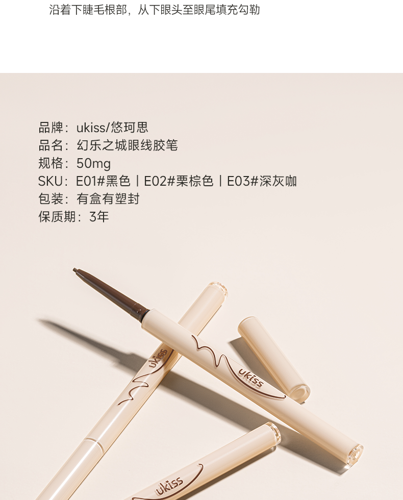 【专区90元任选5件】【 顺滑不结块 新手超友好 】ukiss悠珂思幻乐之城眼线胶笔