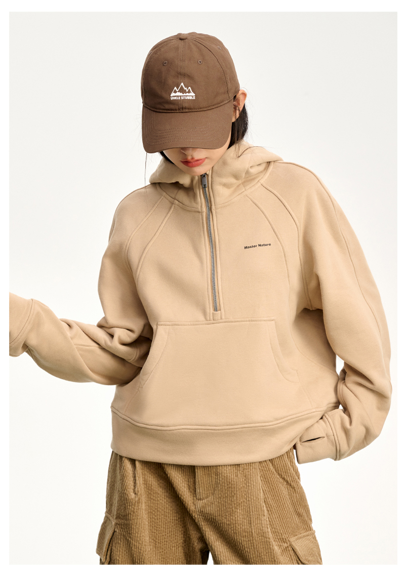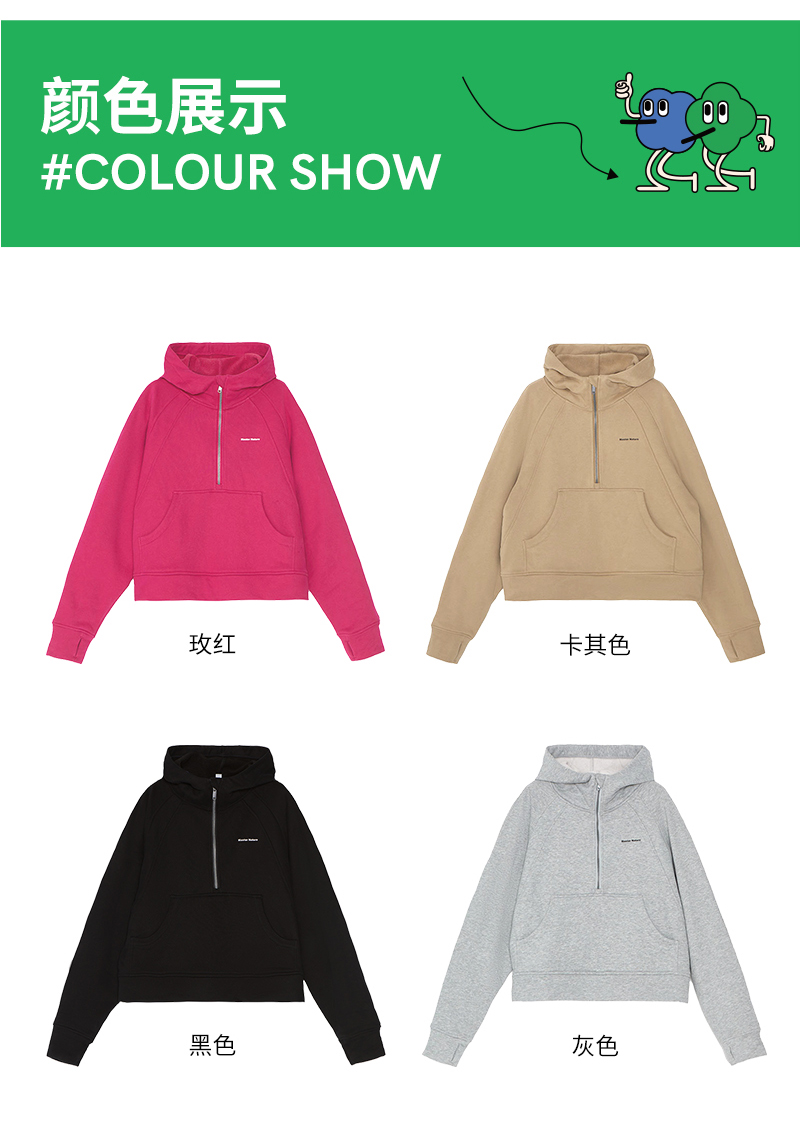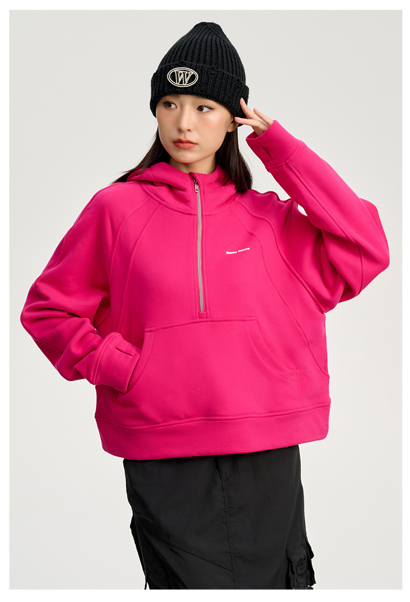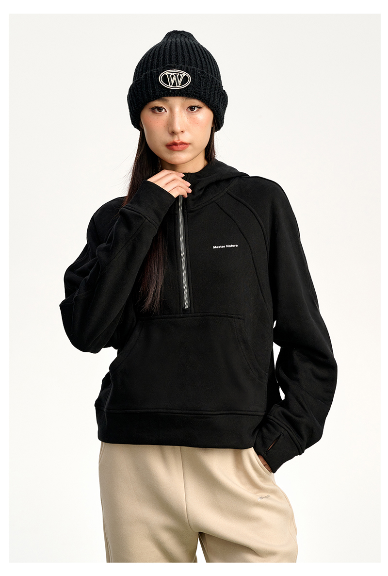 完型半拉链套头运动卫衣秋冬运动户外套头外套女款