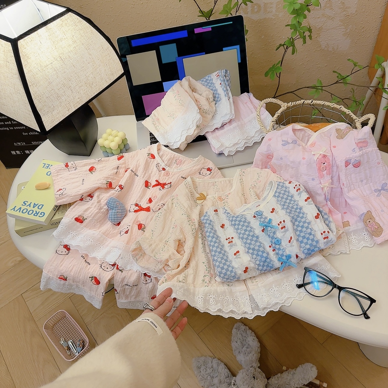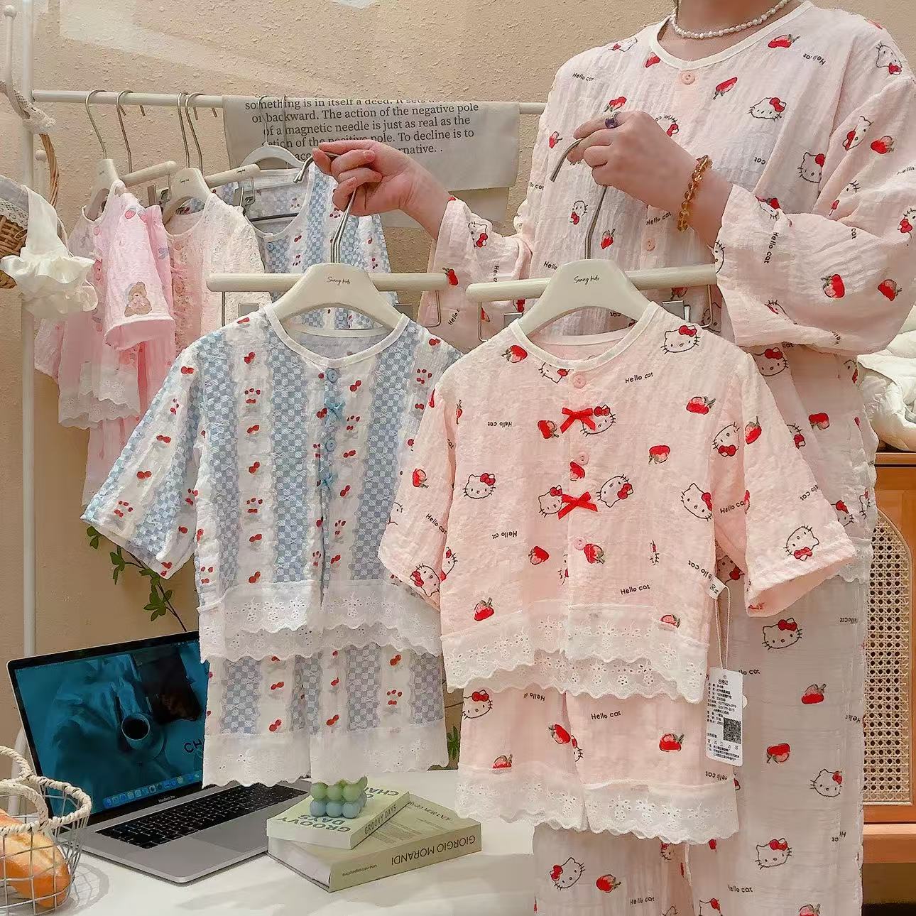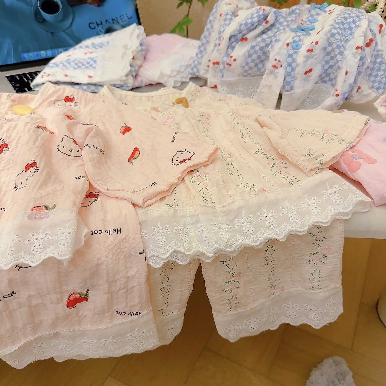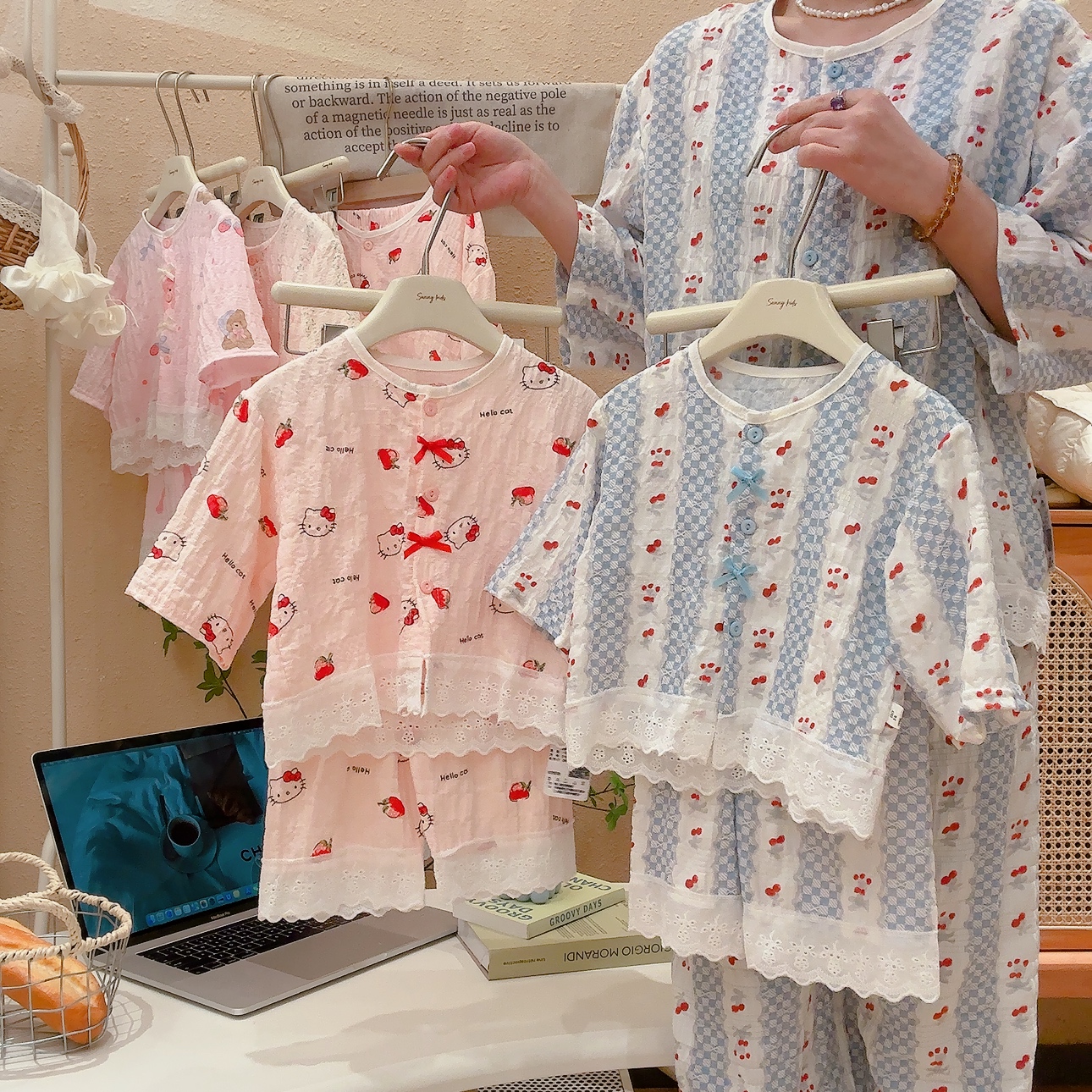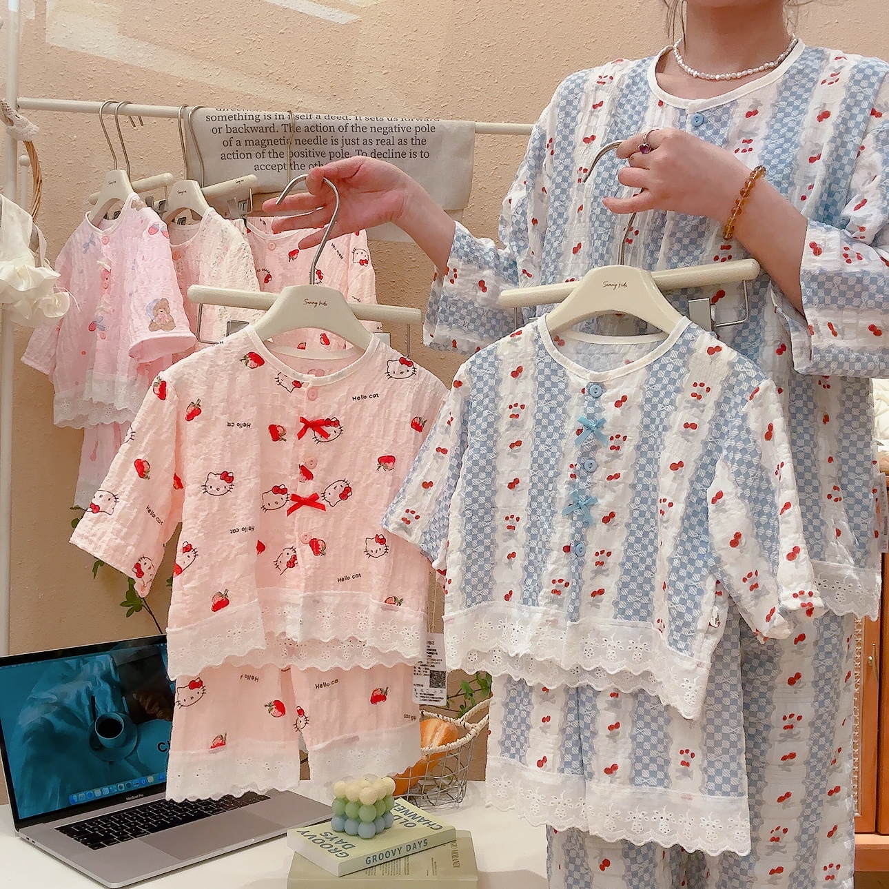 【10A抗菌亲子款29.9/套起】2026春夏新款女童时光棉家居服套装甜美花边睡衣两件套聚