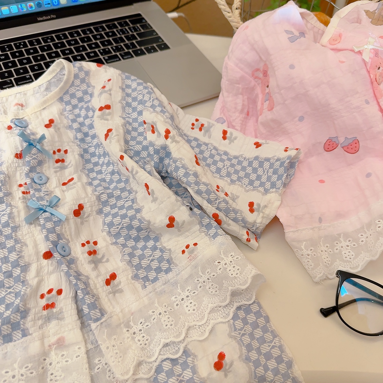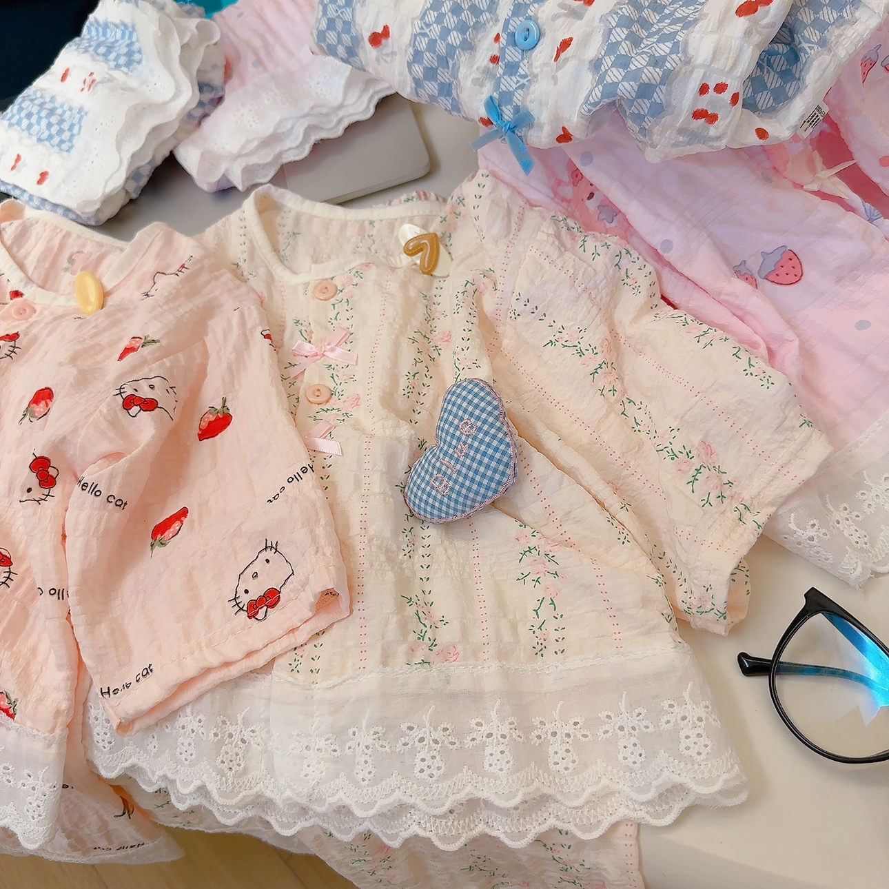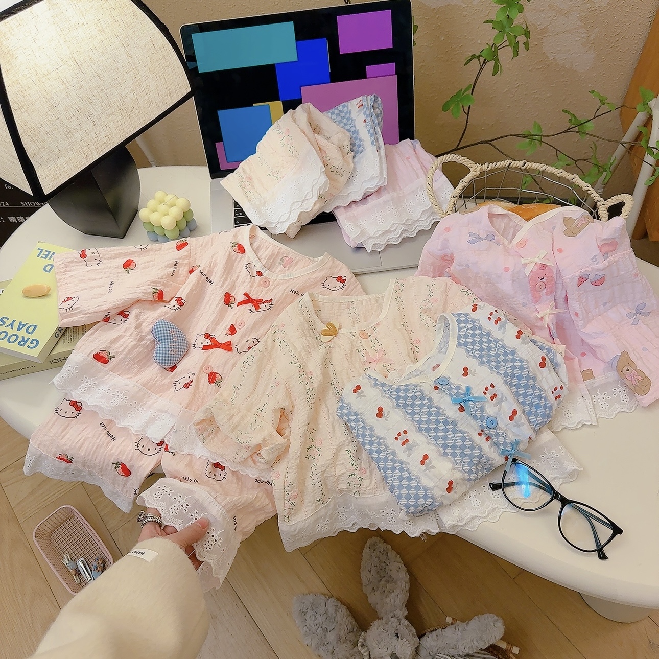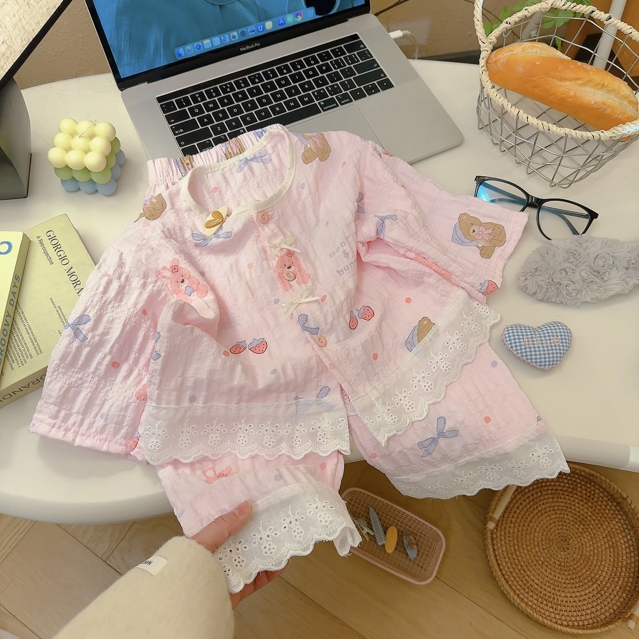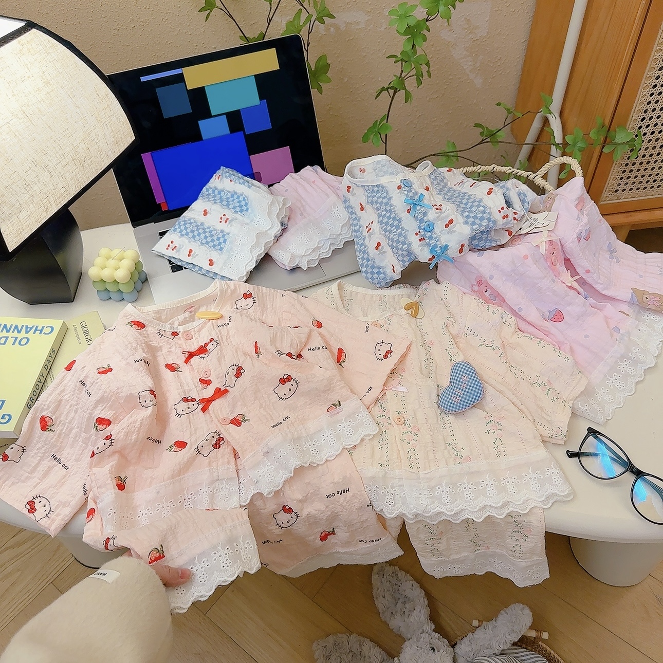 【10A抗菌亲子款29.9/套起】2026春夏新款女童时光棉家居服套装甜美花边睡衣两件套聚