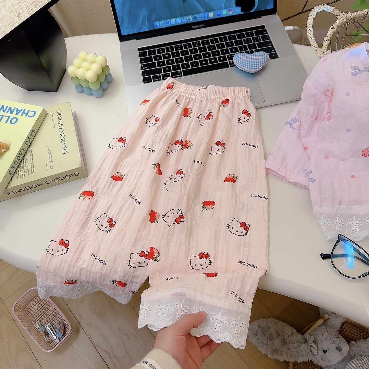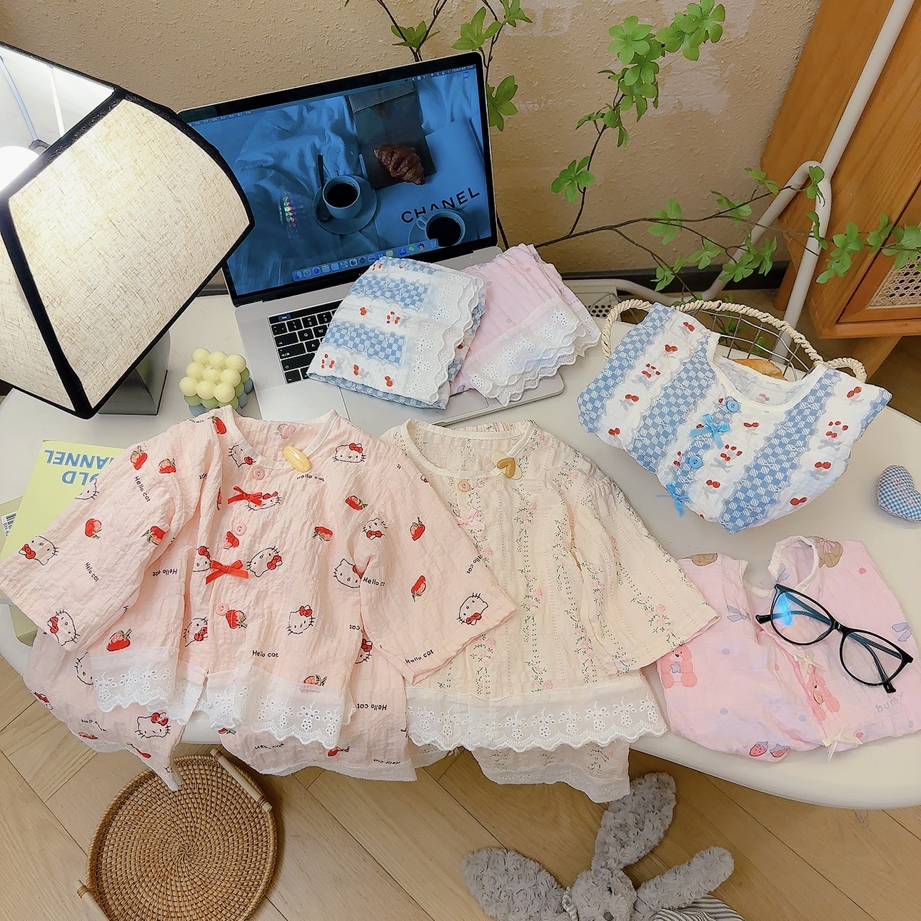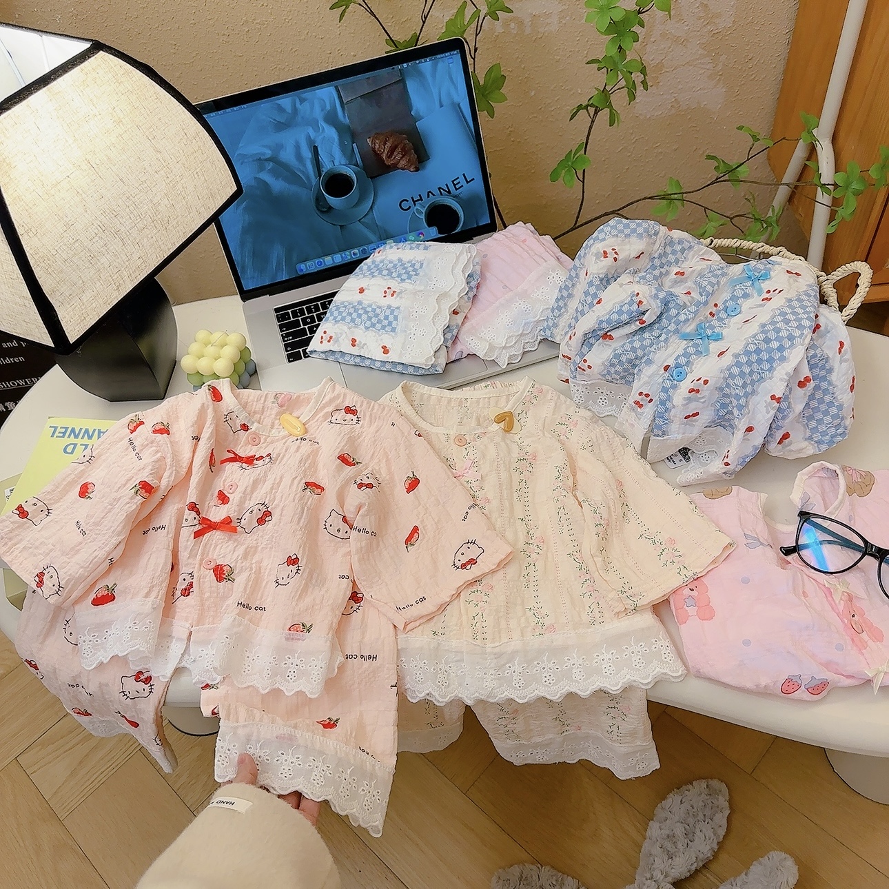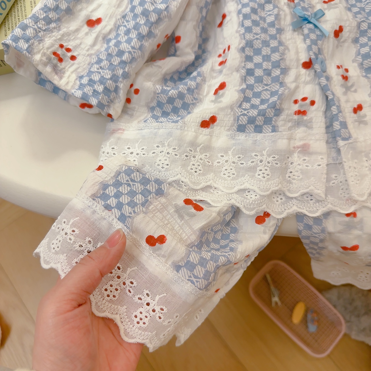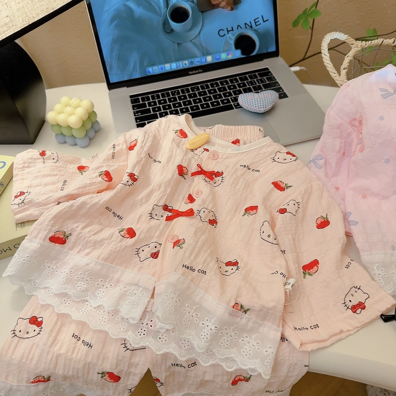 【10A抗菌亲子款29.9/套起】2026春夏新款女童时光棉家居服套装甜美花边睡衣两件套聚