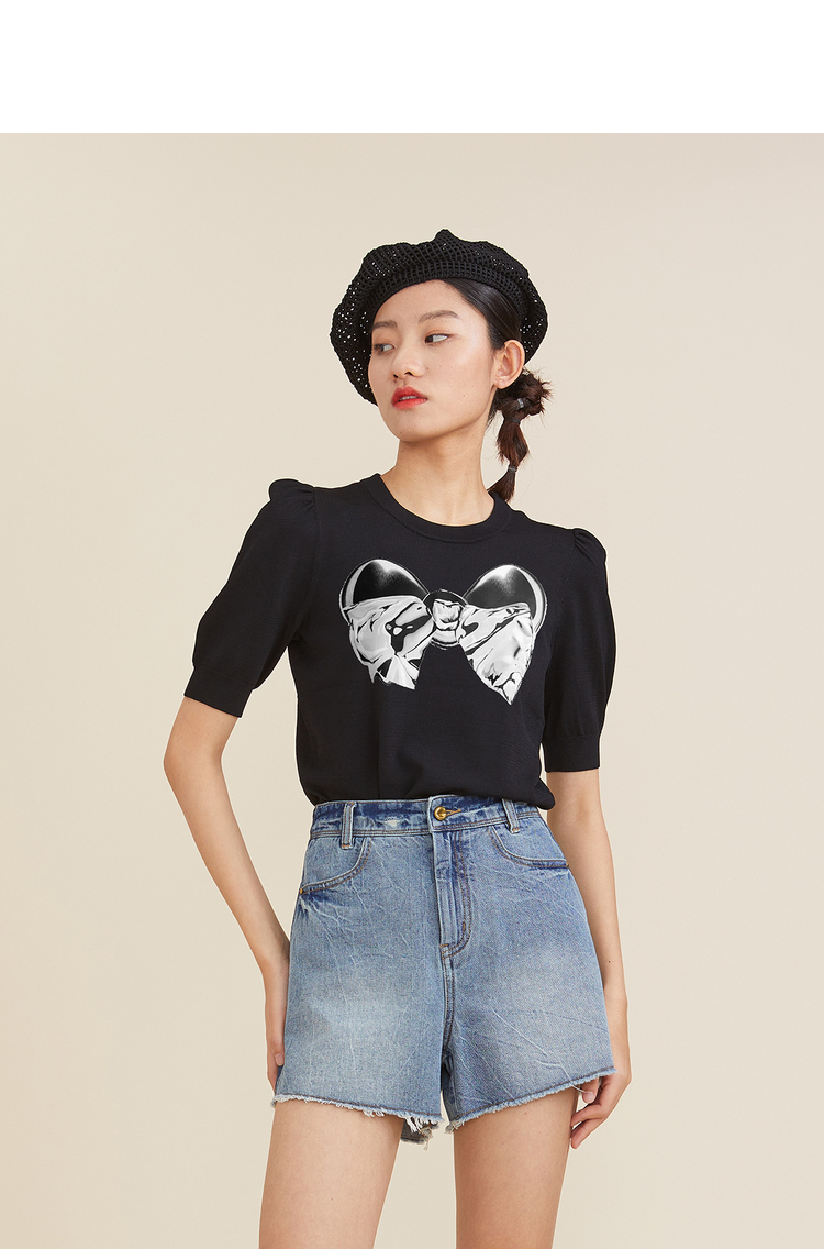 谜底短款针织开衫女2023冬季新品简约时尚百搭针织衫女234MZ1993