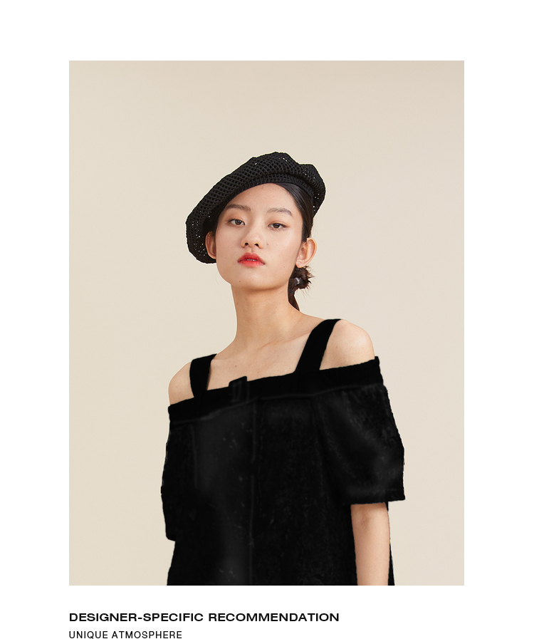 谜底2022夏季新款镂空贝雷帽女气质晚礼帽222MQ0913