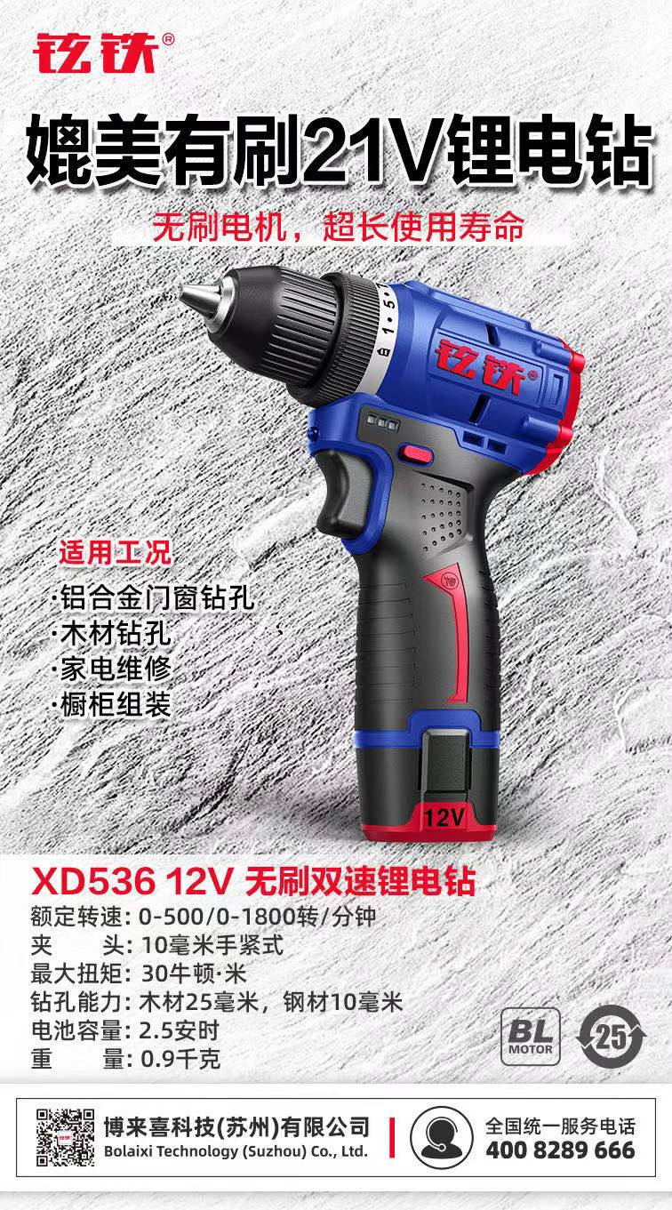 铉铁牌XD536无刷锂电钻12V/10mm