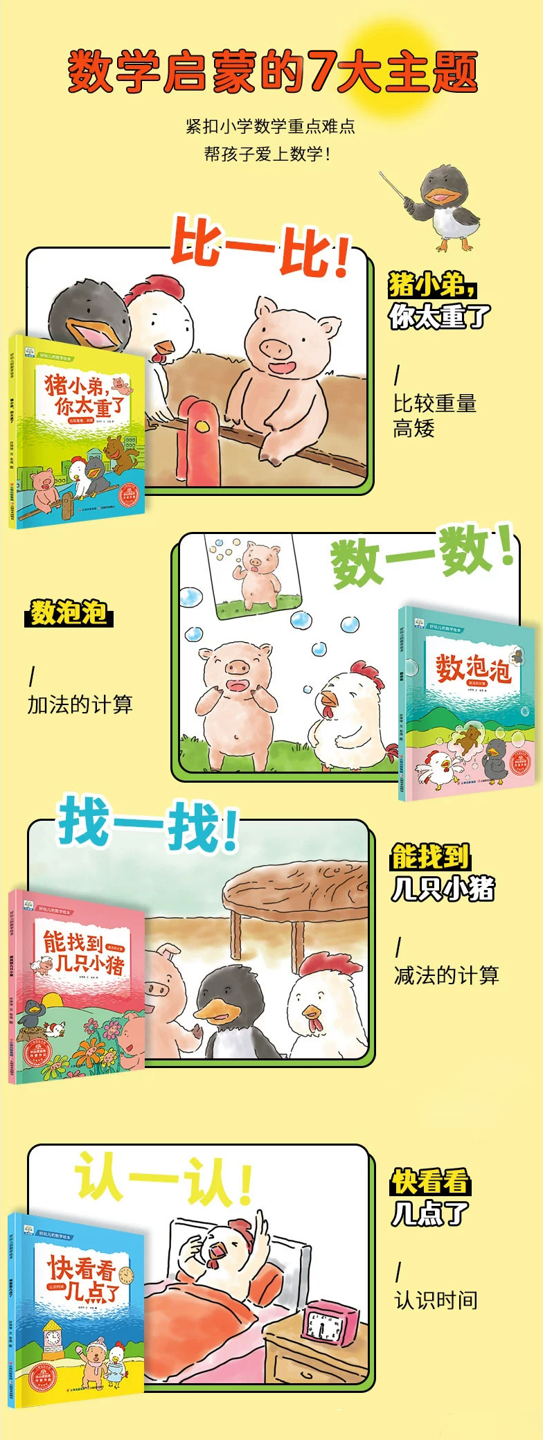 《好玩儿的数学绘本》全7册 3-6岁 数学启蒙的7大主题 内容涵盖加法的计算、减法的计算、探索规律、认识方位、比较重量高矮、认识时间、学会归类方法、认识形状等多方面