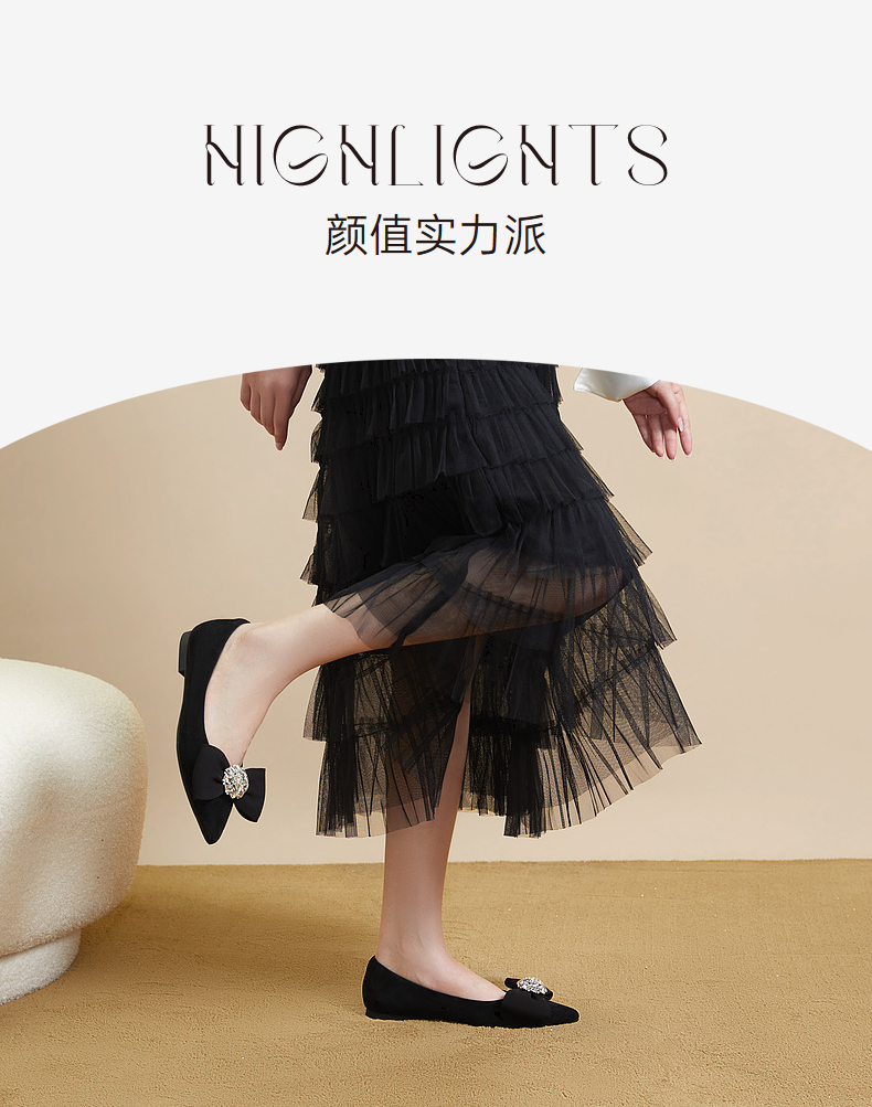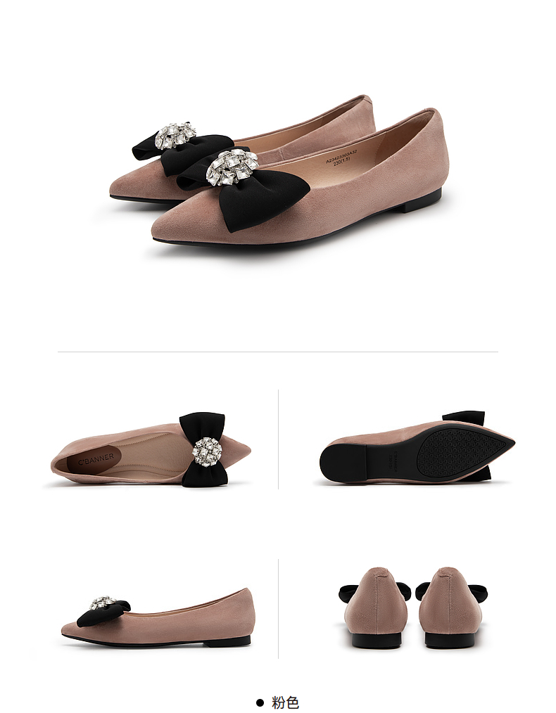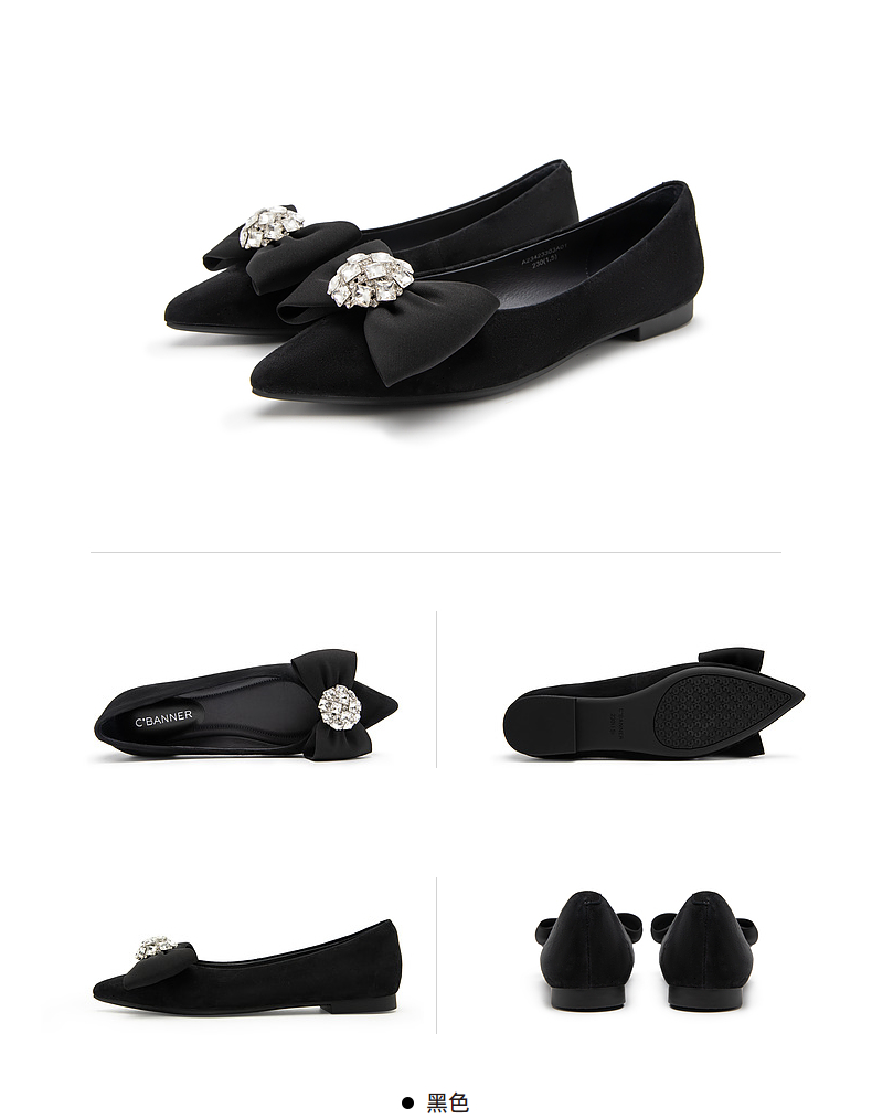 千百度秋季低跟钻石蝴蝶结舒适女单鞋A23423303