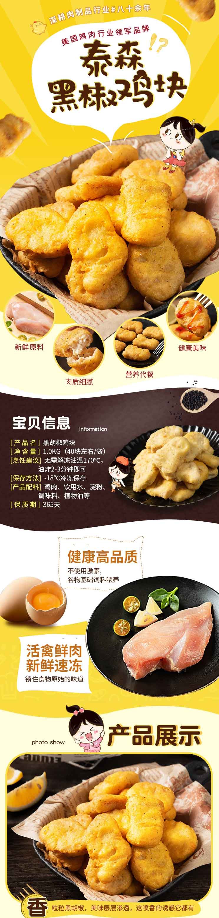 25G泰森黑胡椒鸡块1000g/袋(25g/个)15袋/件