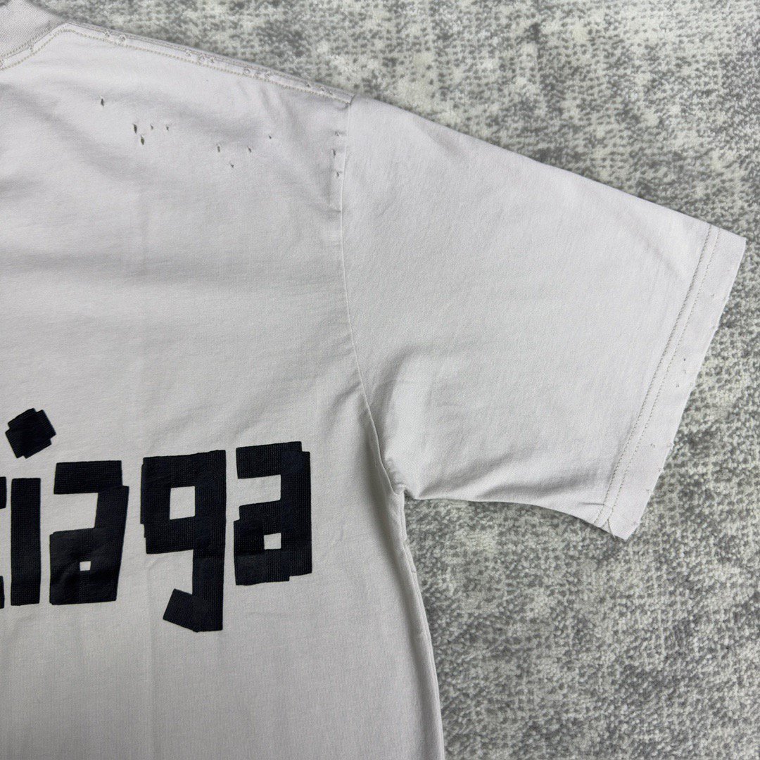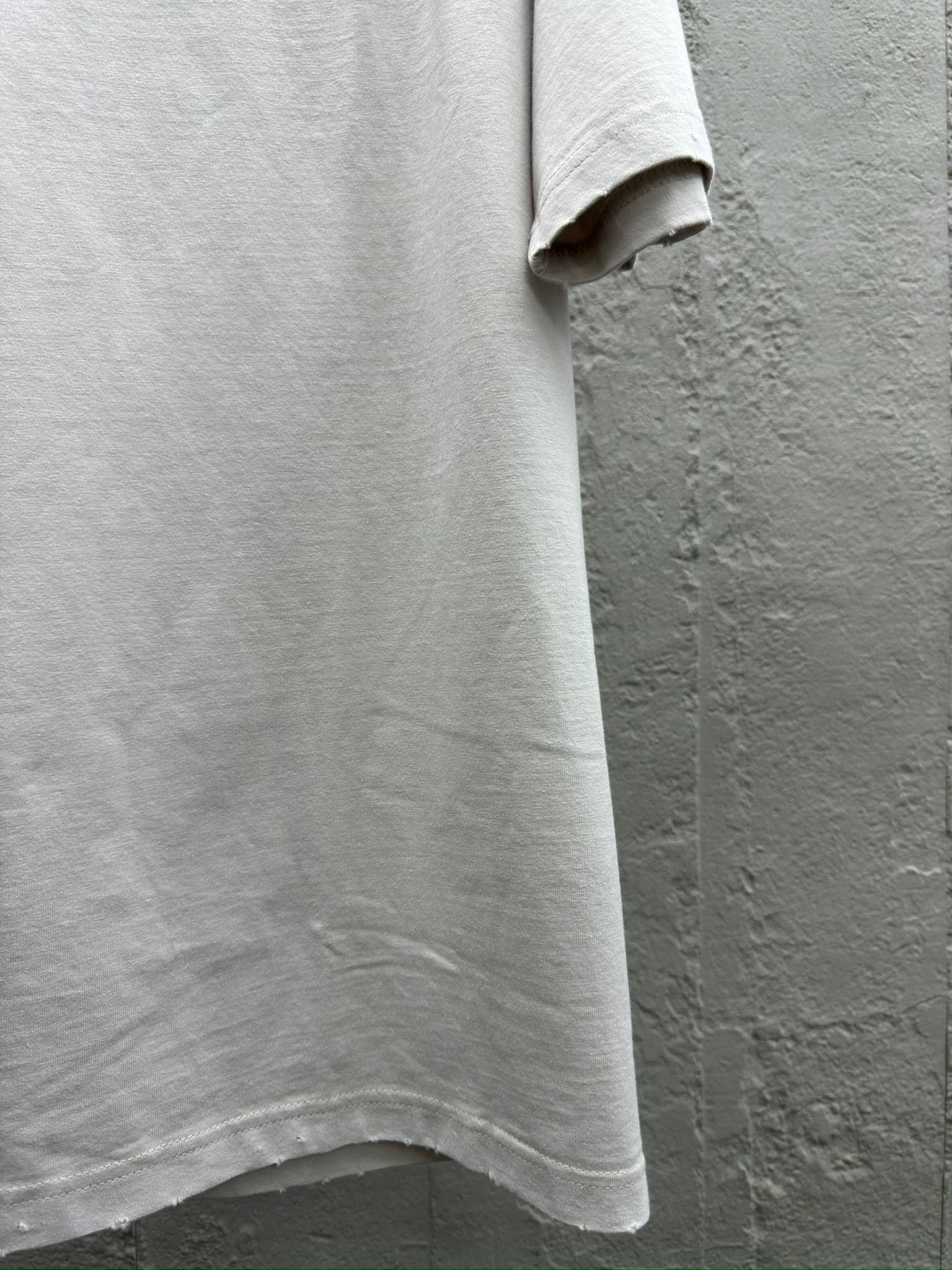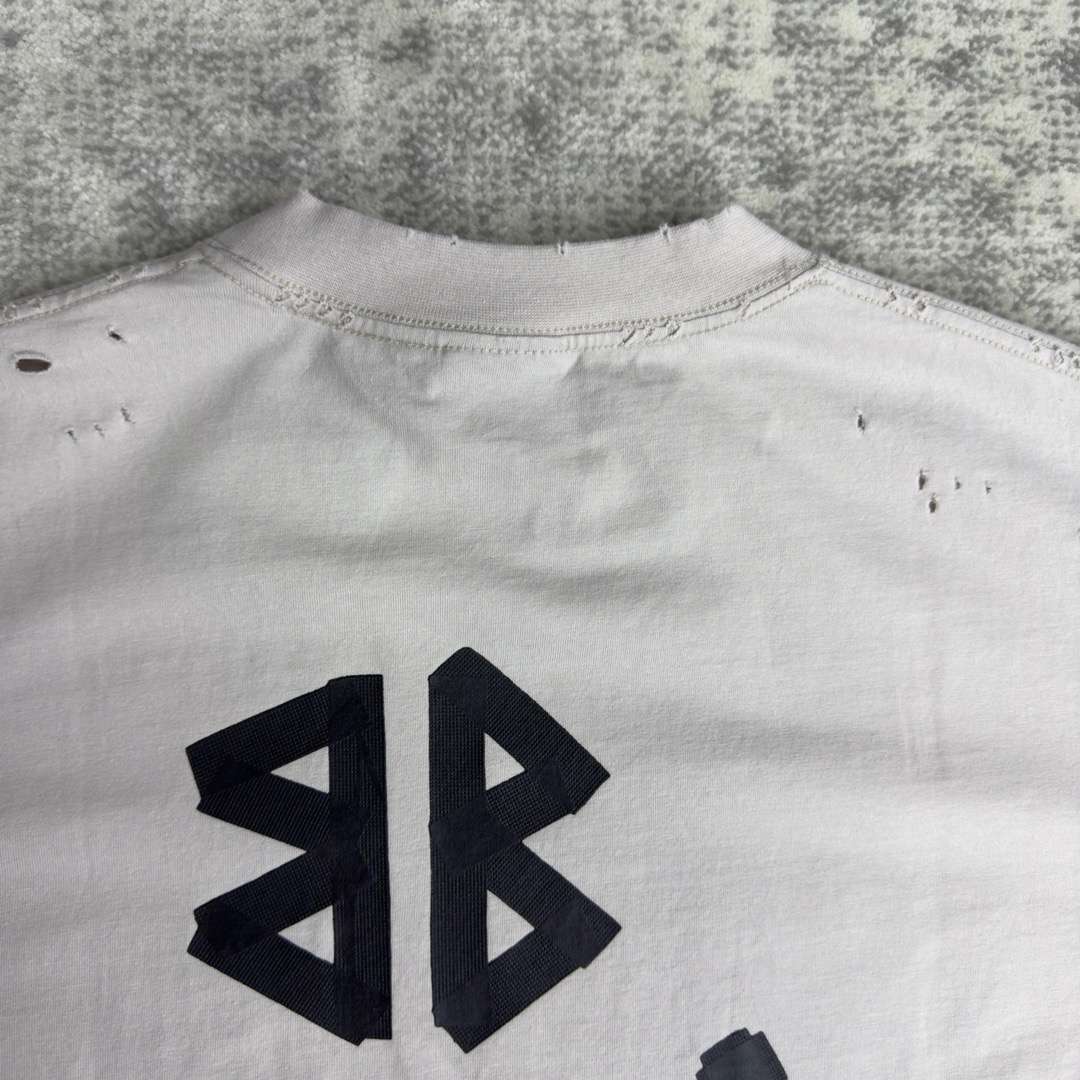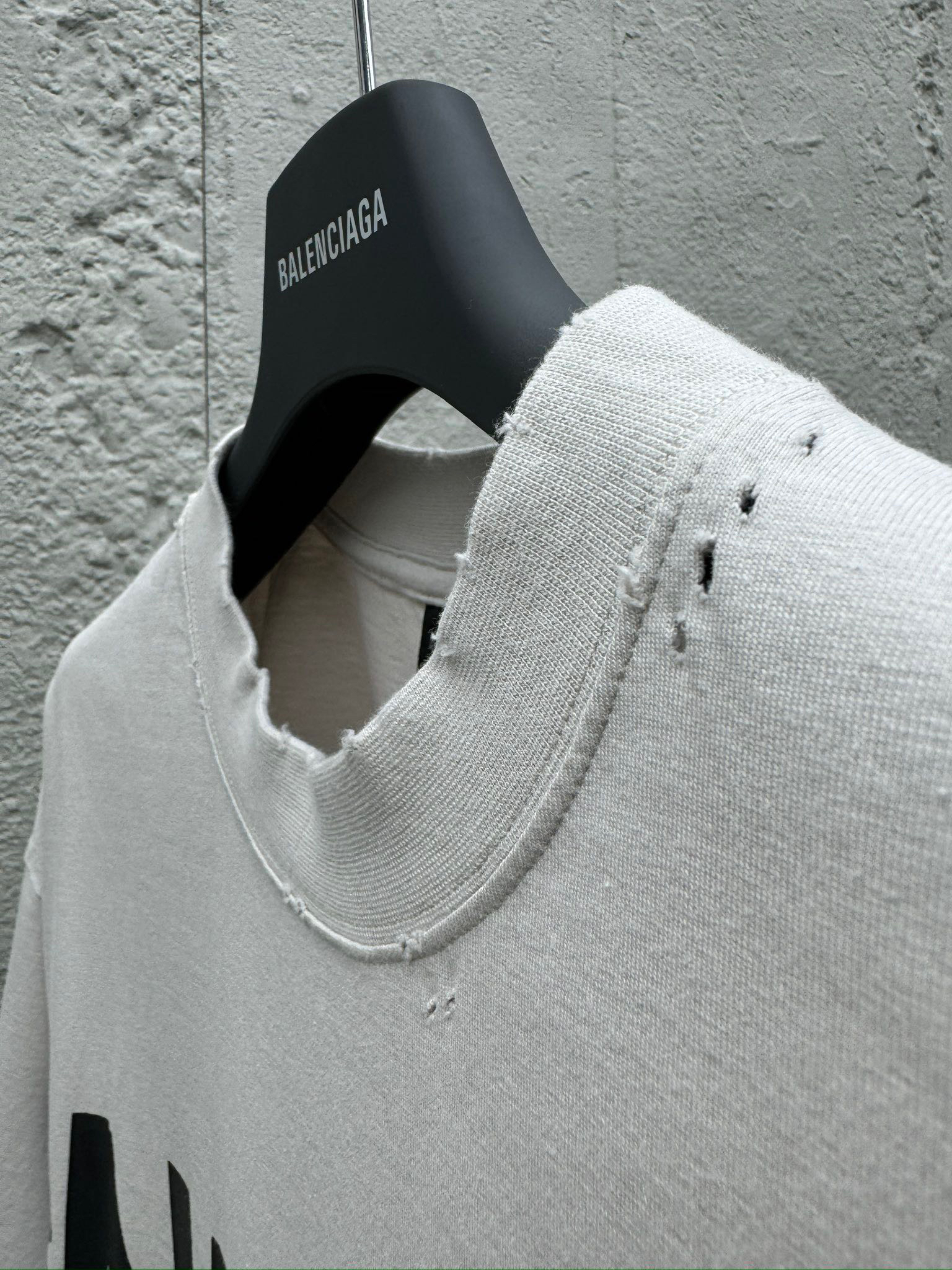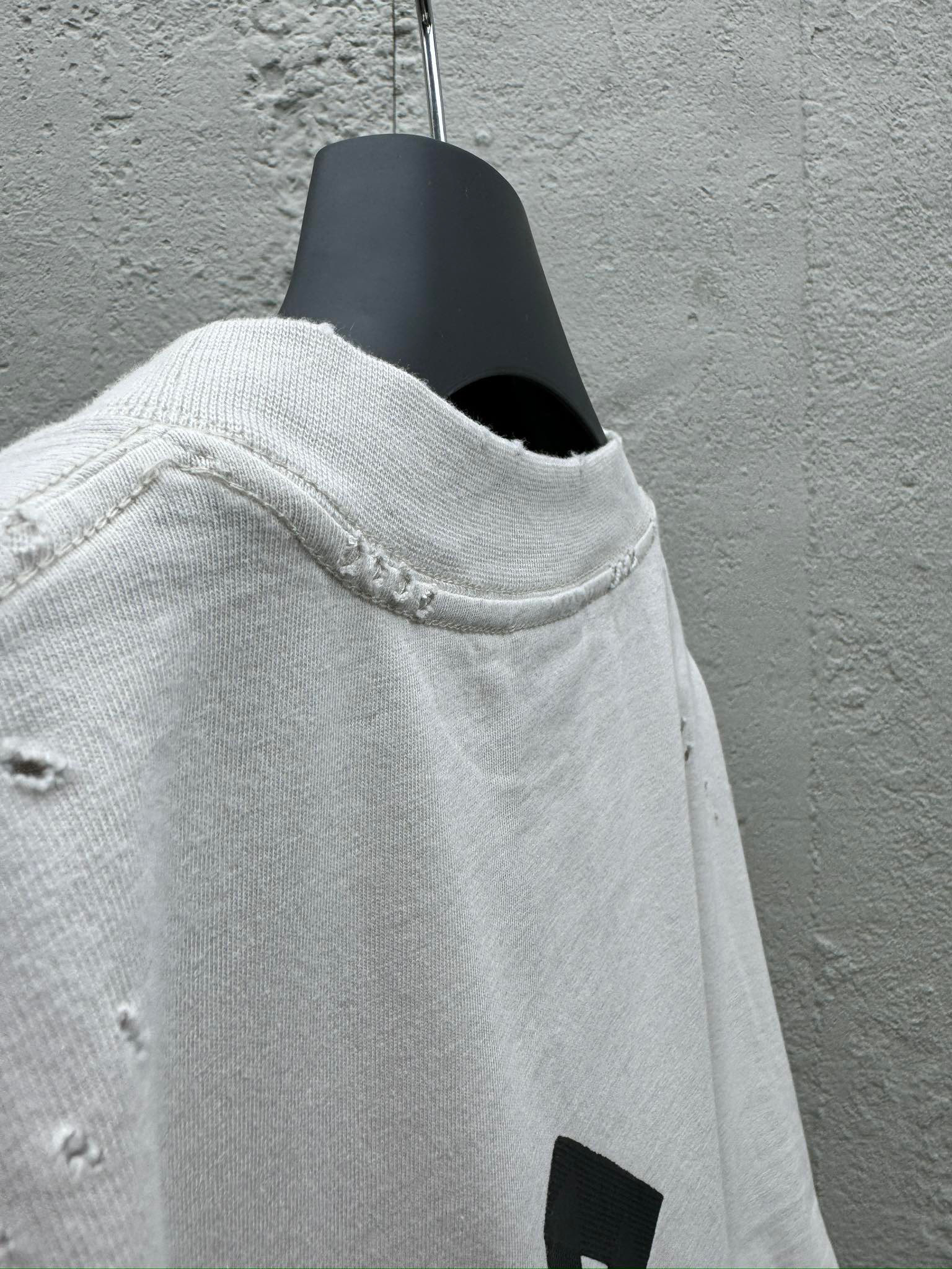 工艺说明: 袖子以及下摆采用磨烂效果 内里处理干净 无线头 无余边 肩部采用磨烂设计 车线平直 三针五线工艺 肩膀处内里带压条 面料采用做旧洗水磨毛工艺 领口部位磨烂破洞设计 罗纹面料定织定染色 颜色一致无色差 胸前运用美纹纸胶带字母 整体重工艺的工序 水洗面料 舒适柔软 磨损洗旧效果 背后字母采用人工对位用烫版定型做胶浆印花工艺
