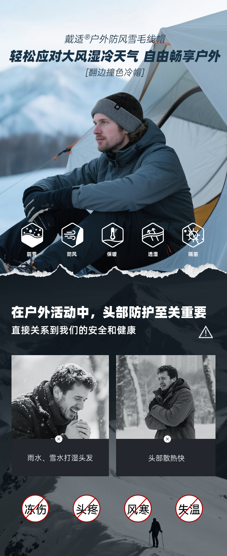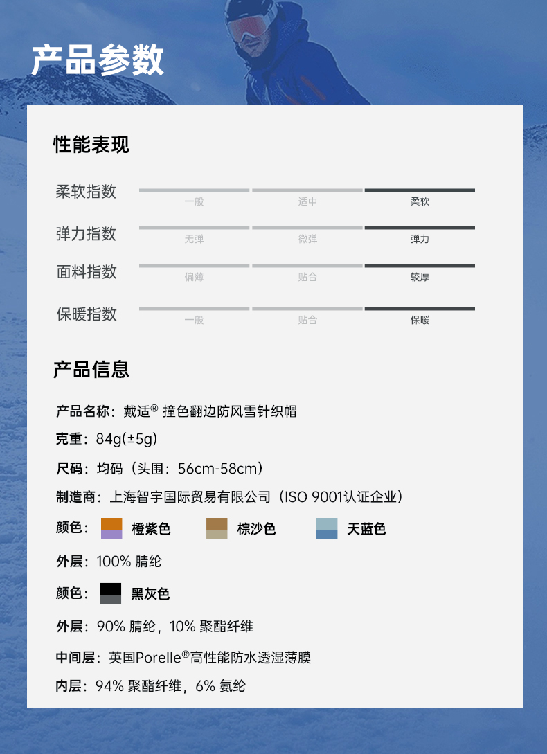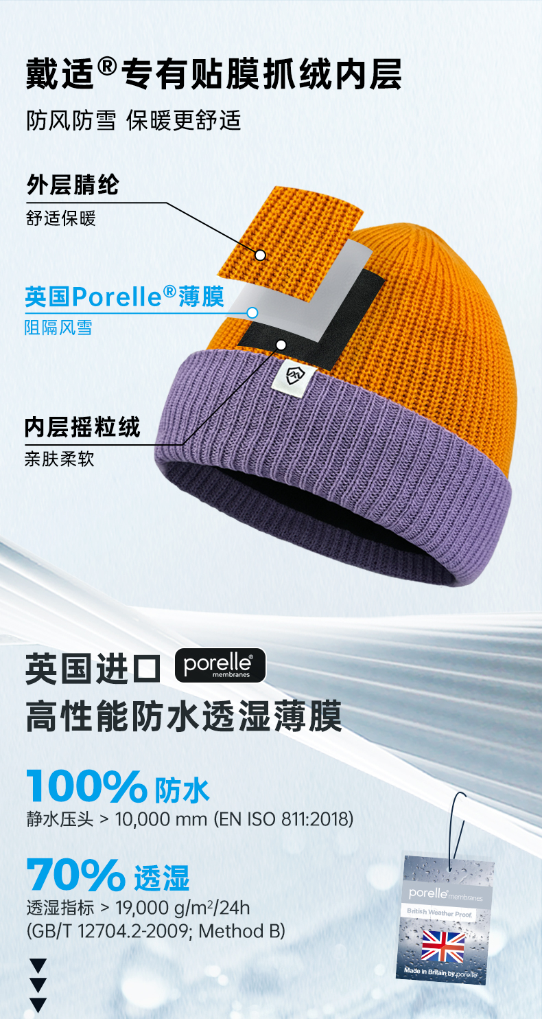 DexShell 戴适 撞色翻边防风雪针织帽2.0 DH32511