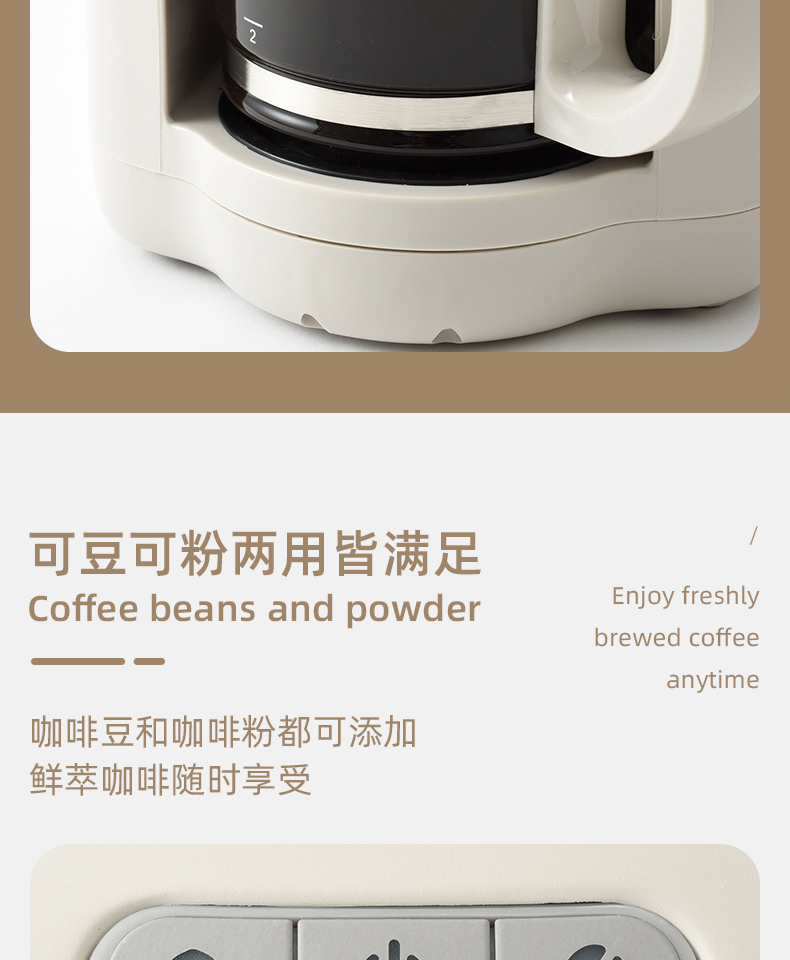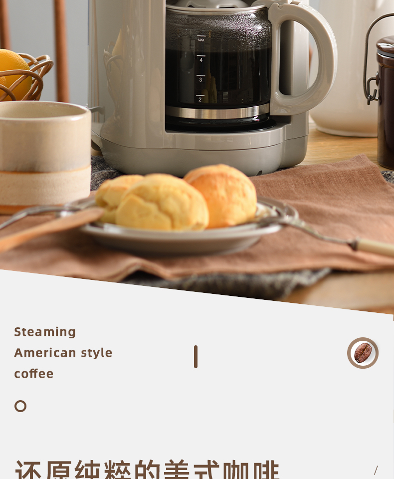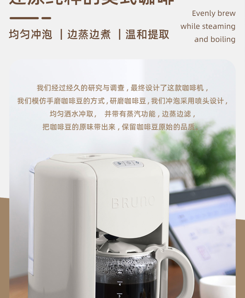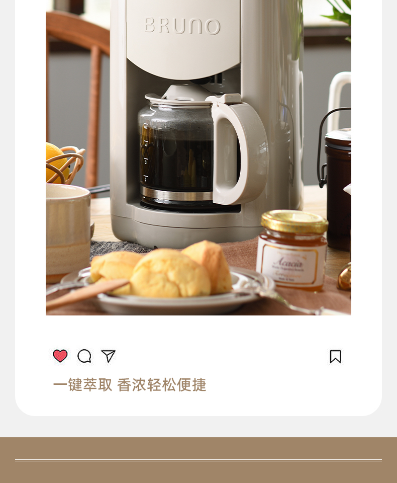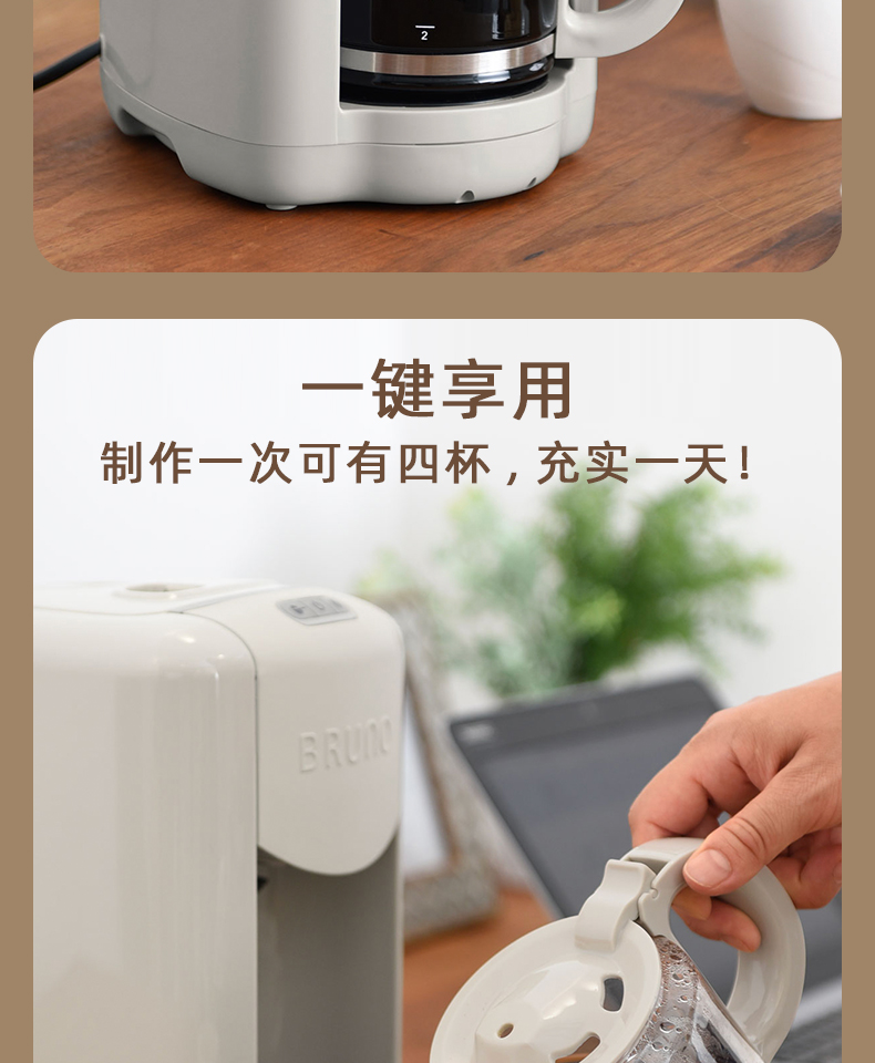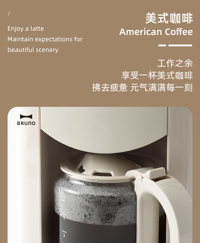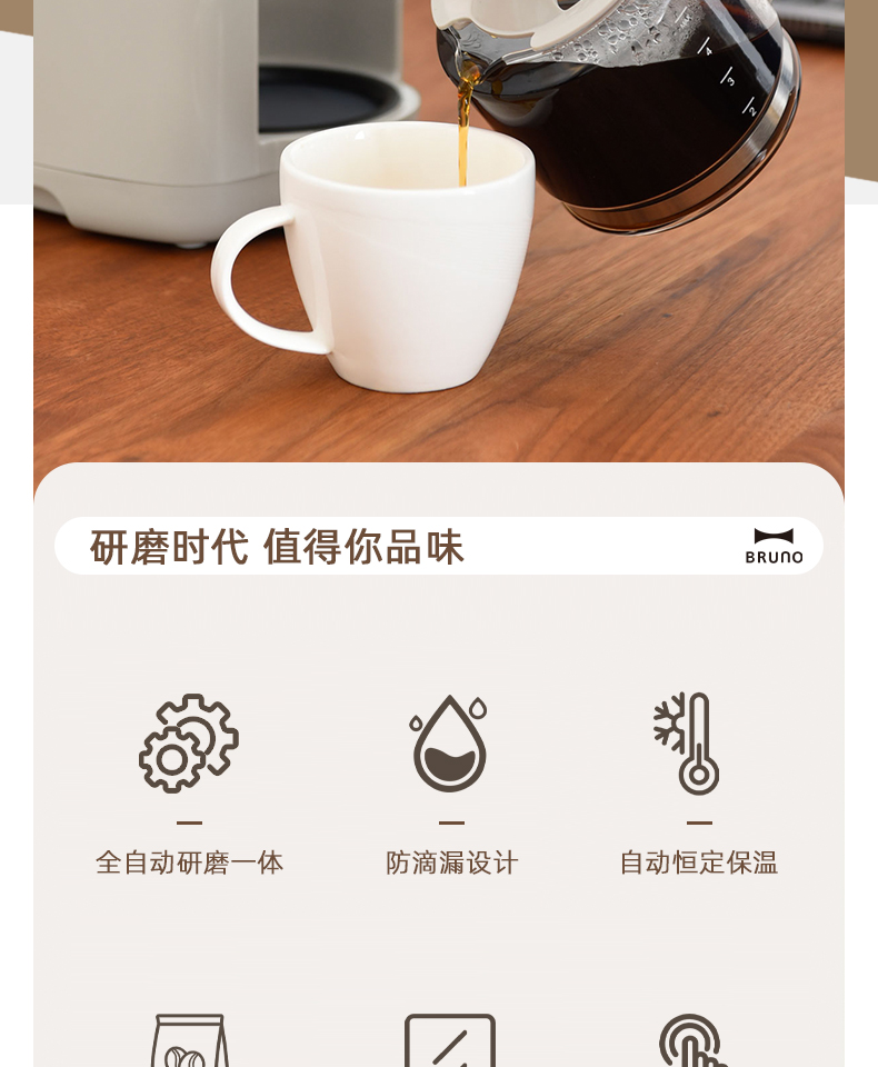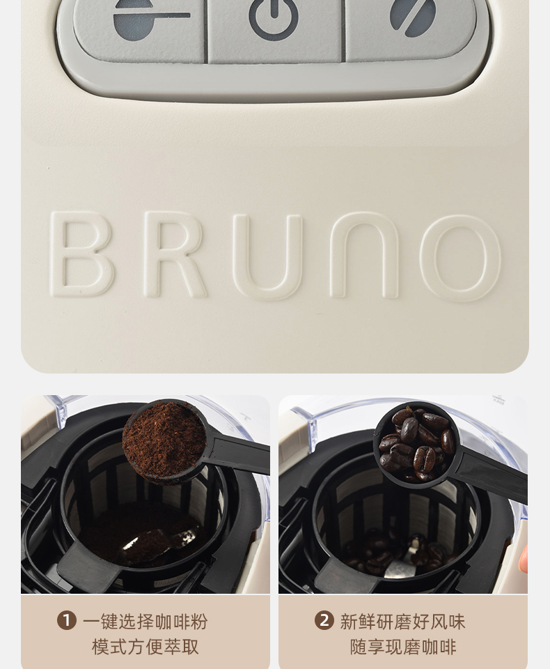 【BRUNO进口美式咖啡机】家用全自动研磨现煮一体豆粉两用小型咖啡机