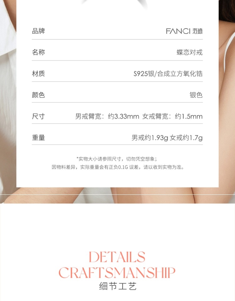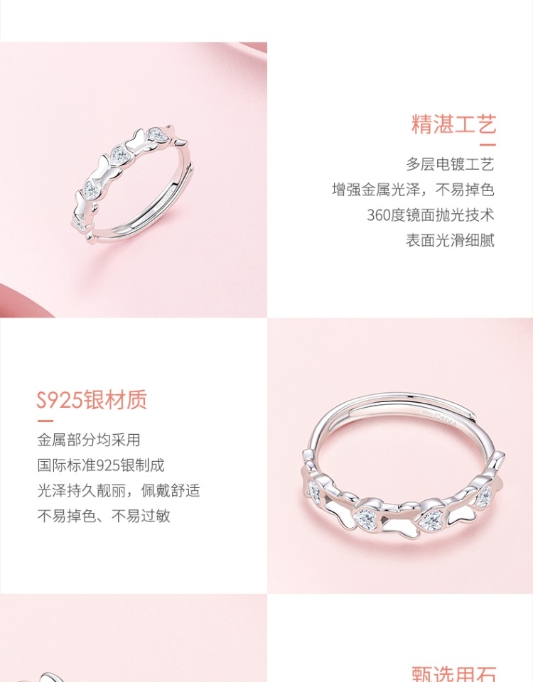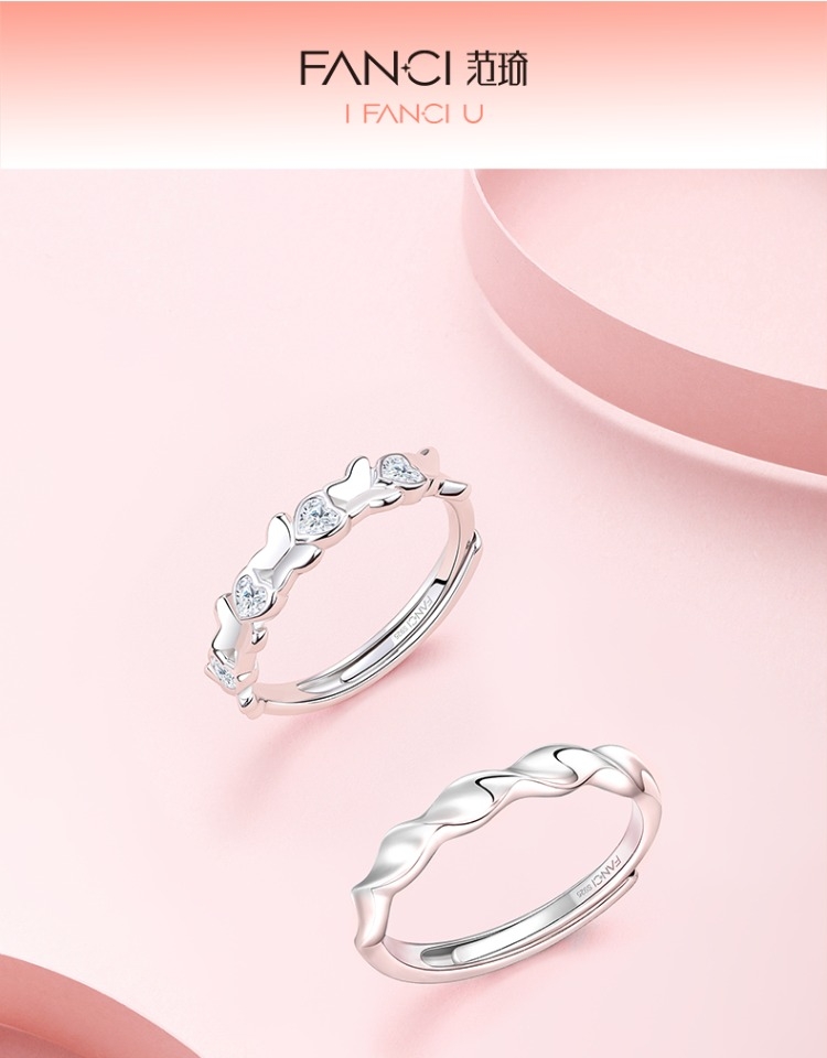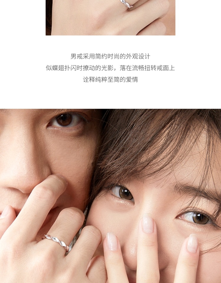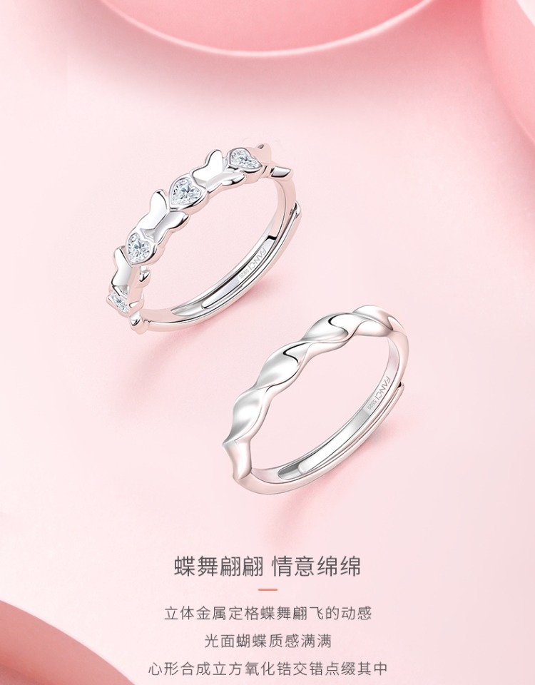 【蝶恋对戒】Fanci范琦925银情侣对戒 蝶恋闭口女戒单戒发光开口可调节戒指 小众设计纪念日送女友礼物送男友