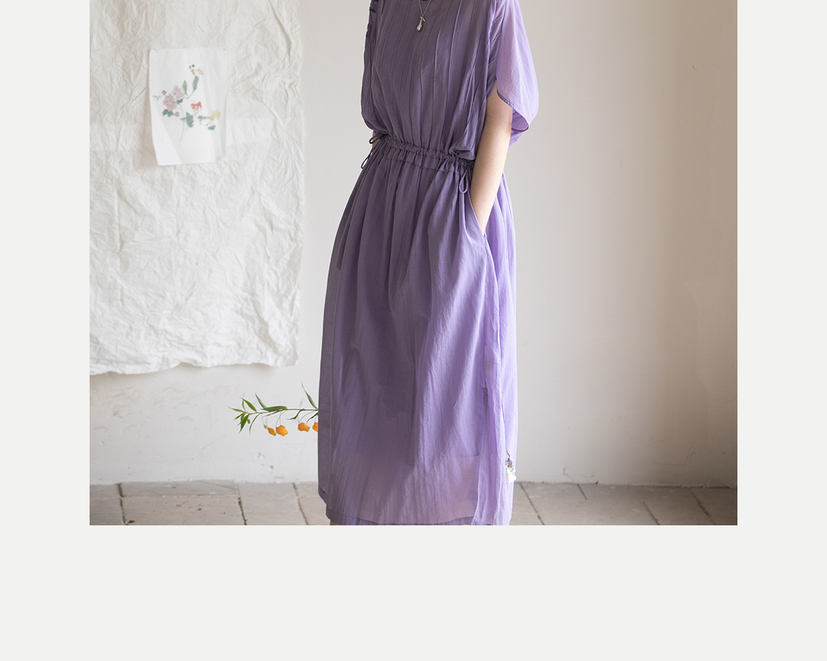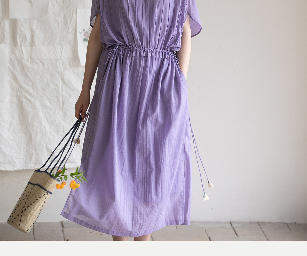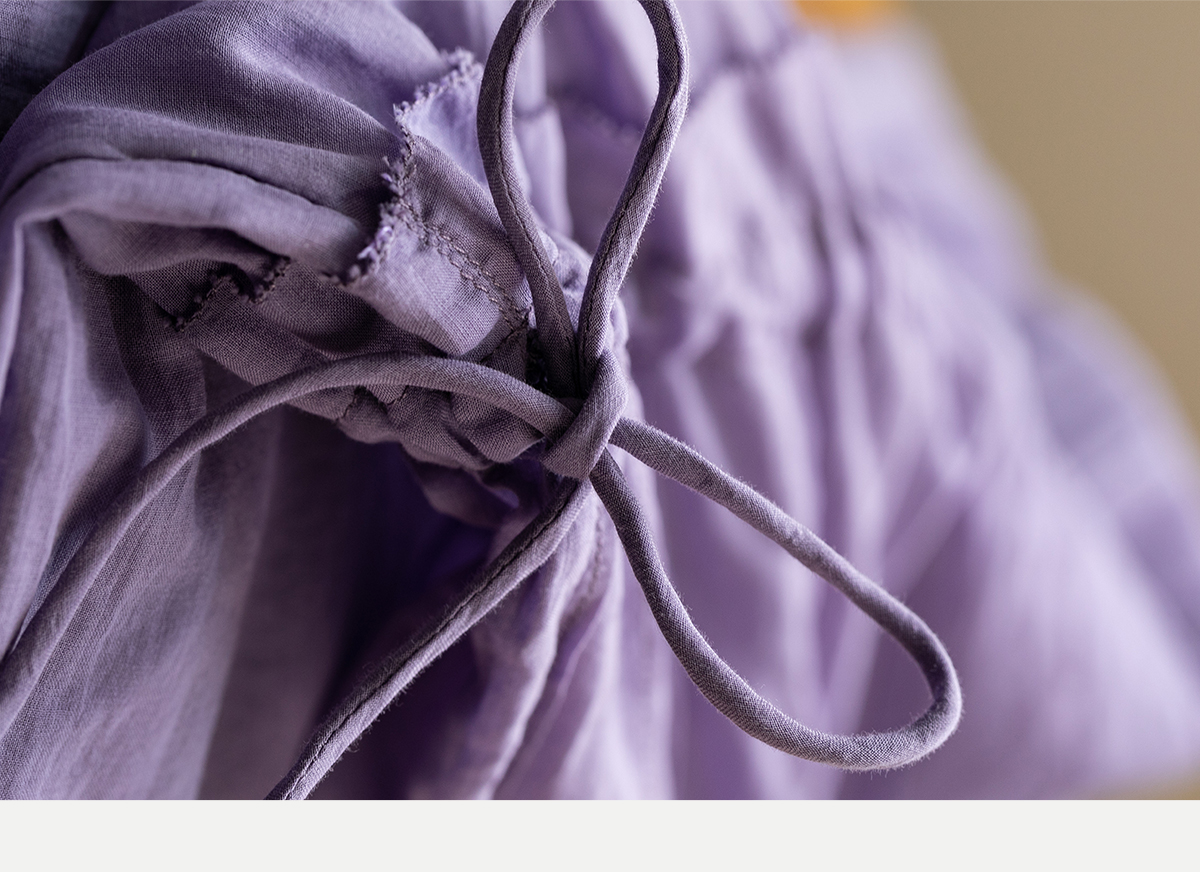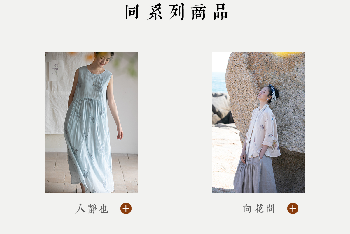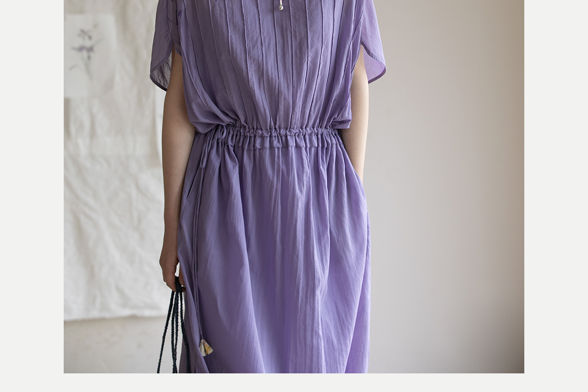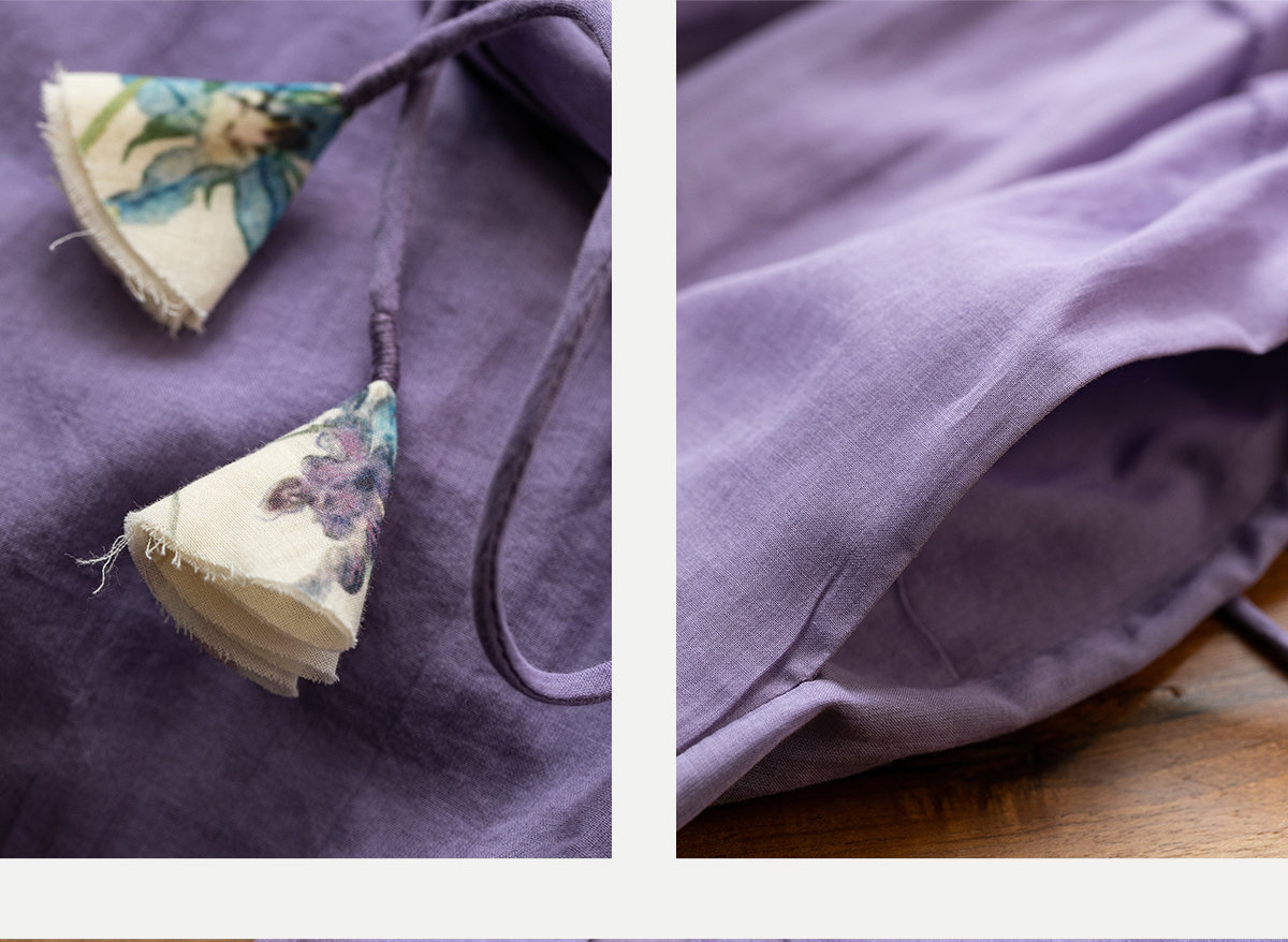 牧衣游原创 印花纯棉连衣裙新品轻薄抽绳设计感V领文艺长裙 清雨