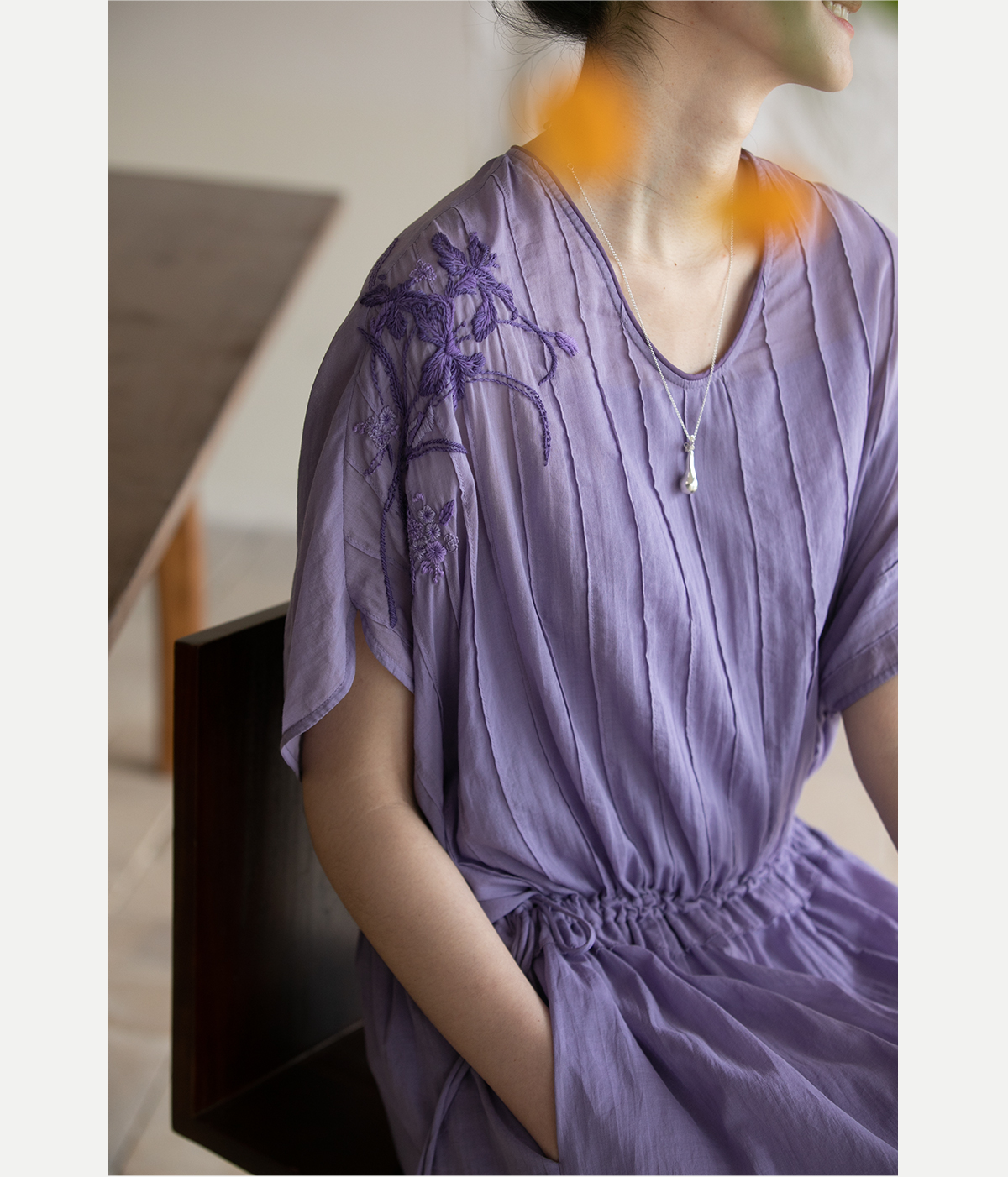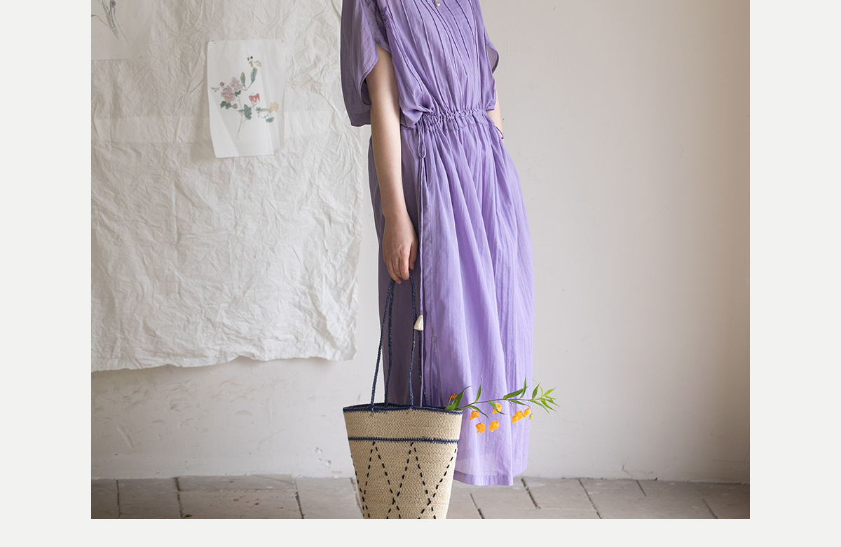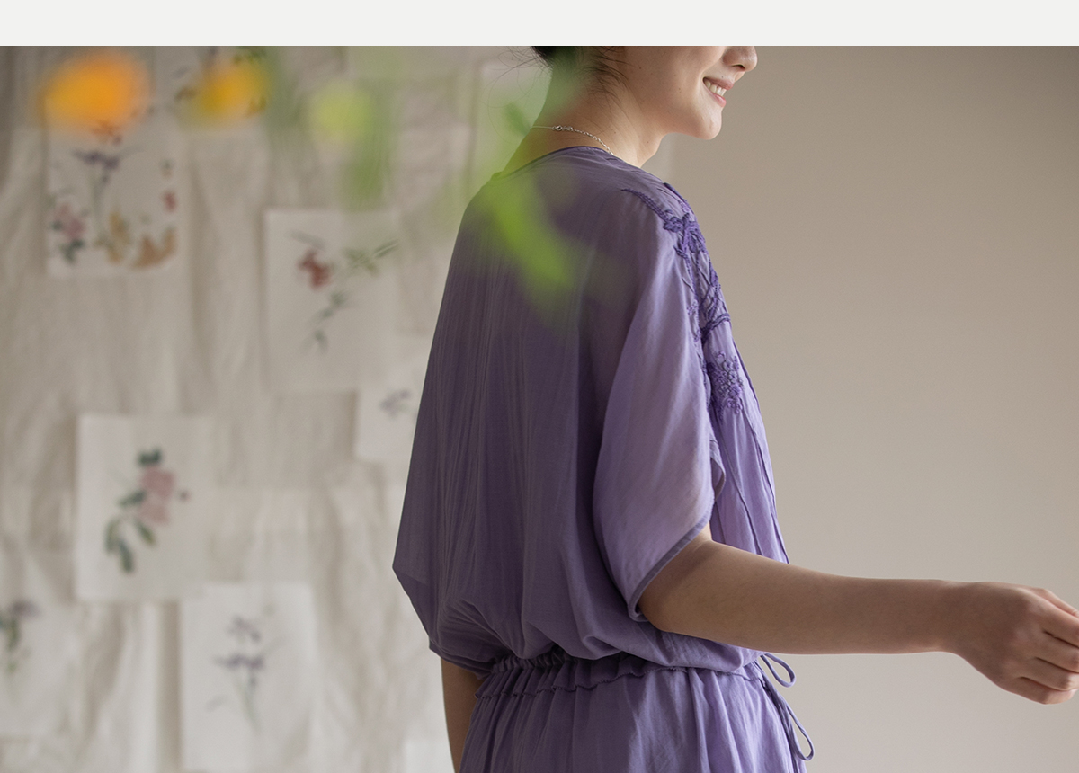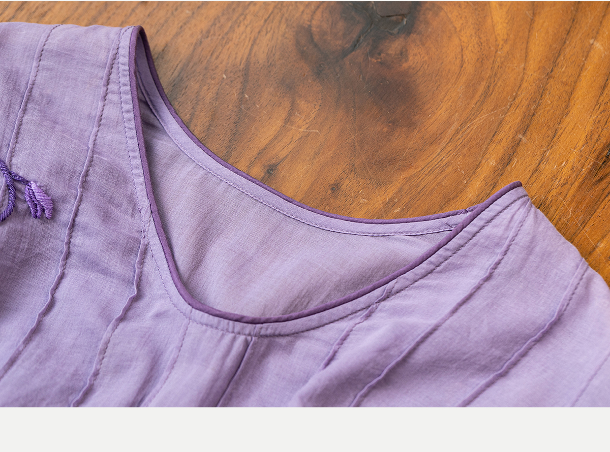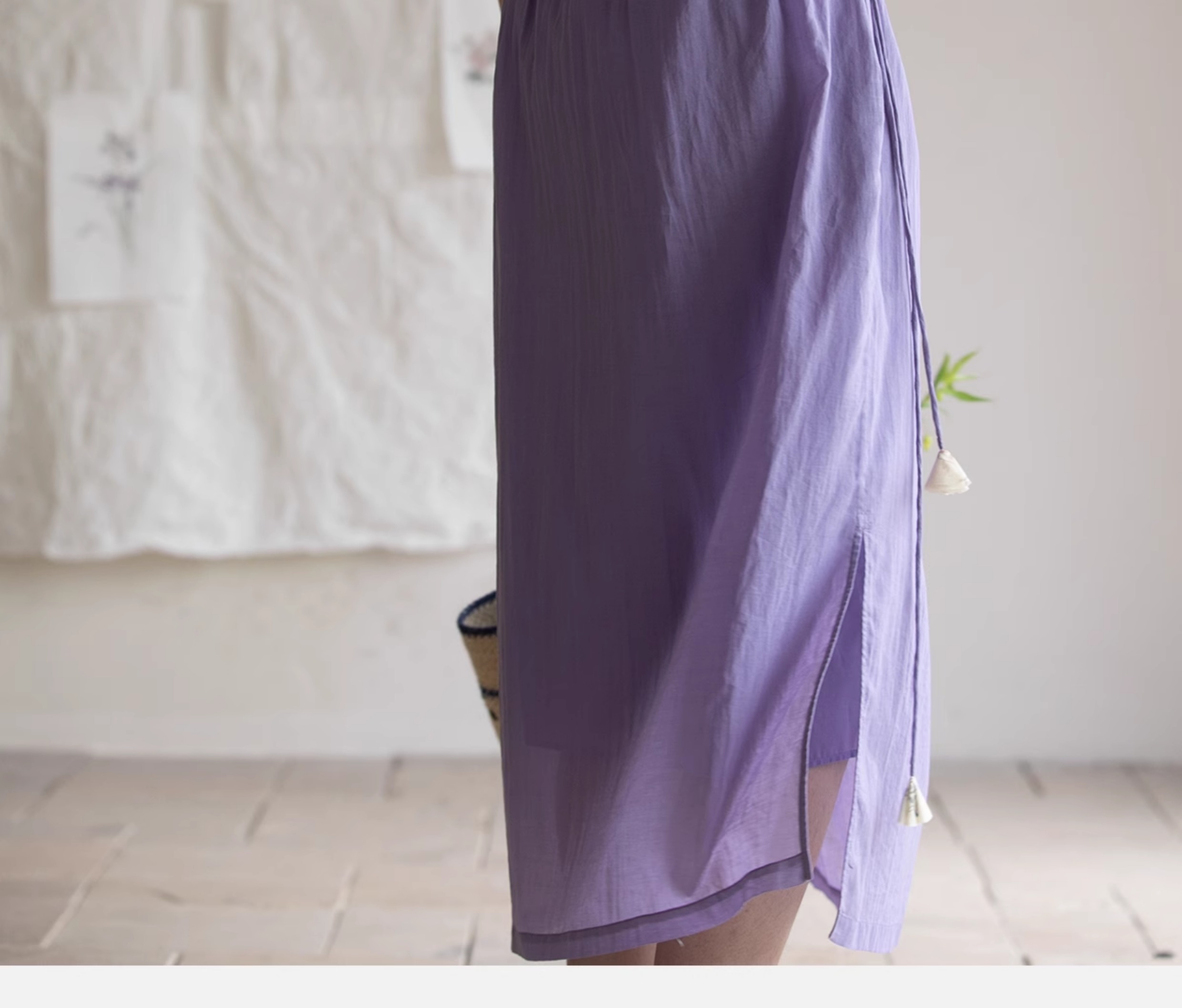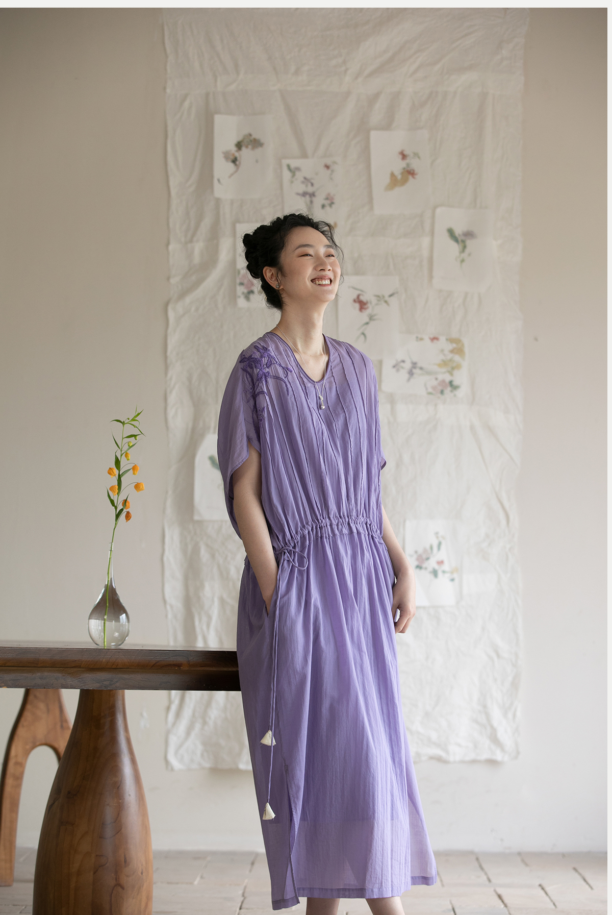牧衣游原创 印花纯棉连衣裙新品轻薄抽绳设计感V领文艺长裙 清雨