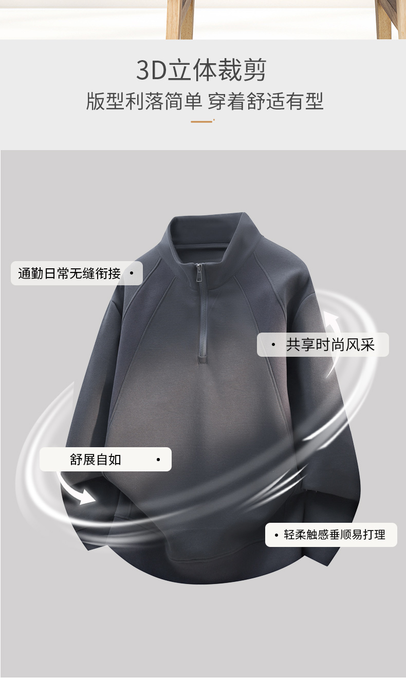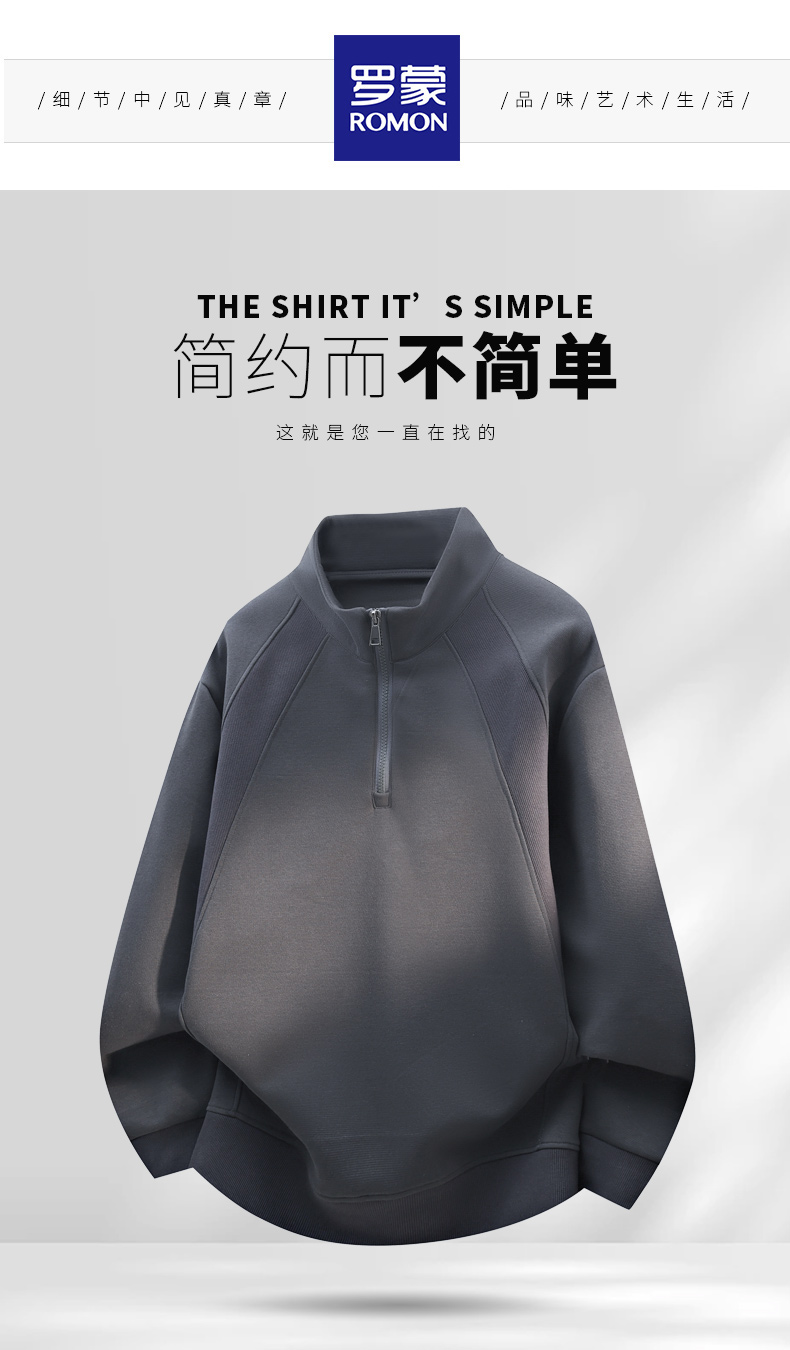 罗蒙春秋款男士卫衣立领半拉链休闲纯色百搭落肩版上衣通勤卫衣 商品图4