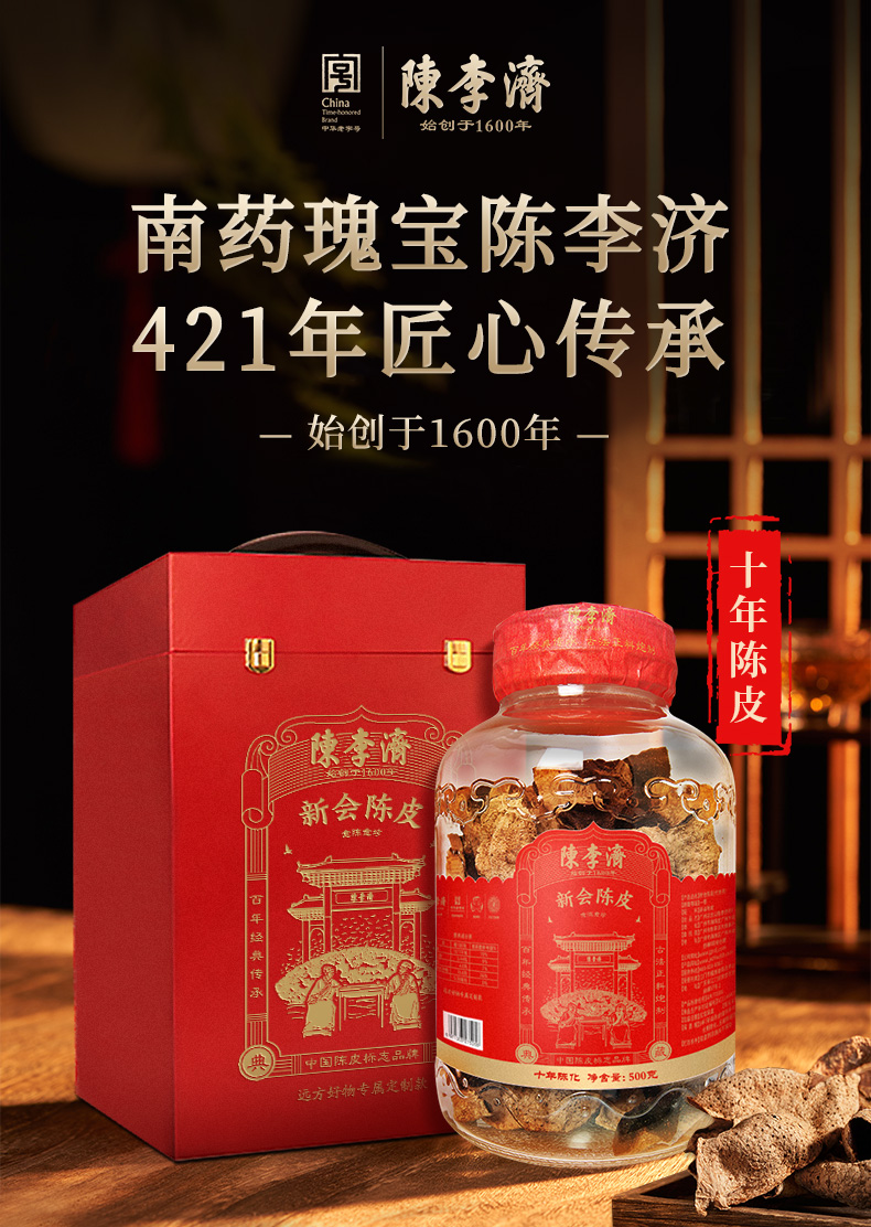 《年份升级不加价》限时:满500减100,满1000减300!四百年《陈李济 》中国陈皮行业标杆品牌👊正宗新会陈皮 7年 12年陈皮礼盒 国家地理标志产品 非物质文化遗产