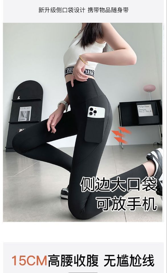 「数色可选!网纱口袋鲨鱼裤」女春夏新款外穿高腰收腹提臀无痕紧身瑜伽打底裤女下装