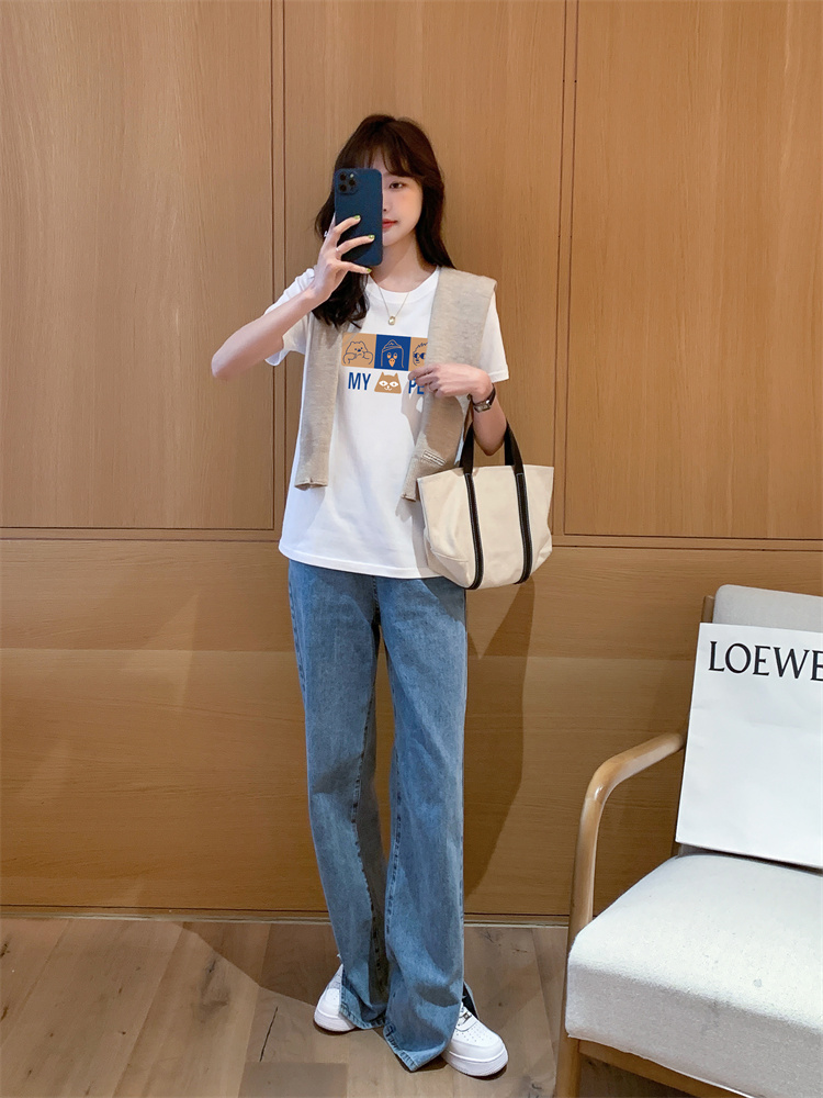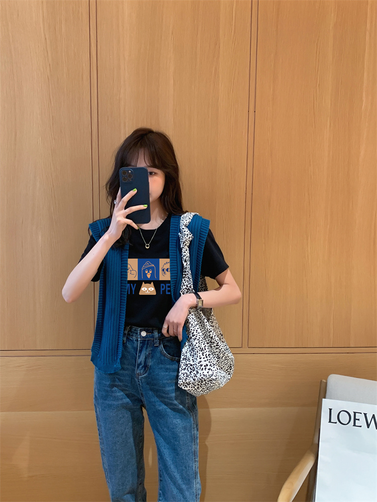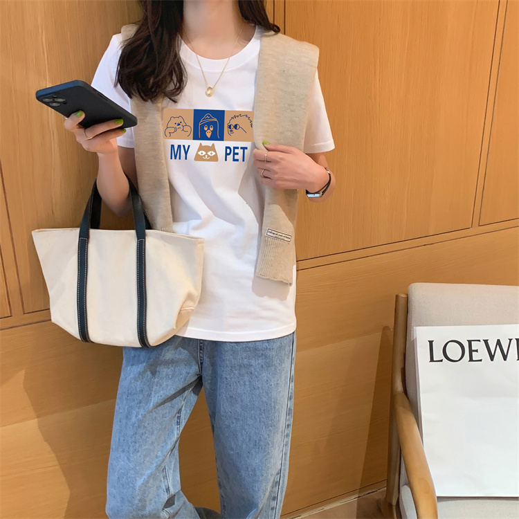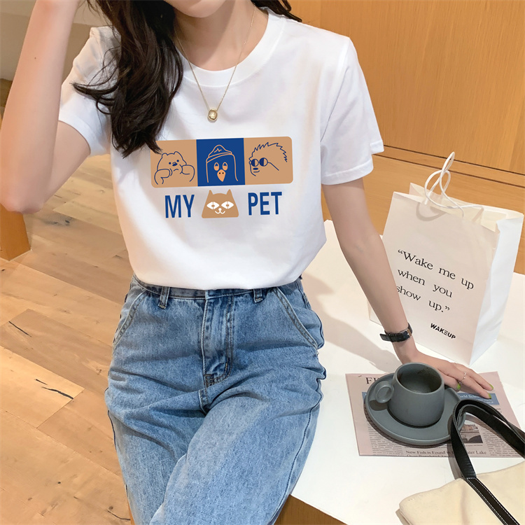 「纯棉材质!黑白两色可选」韩版夏季短袖t恤女T恤衫棉时尚韩版内搭半袖袖上衣T恤女