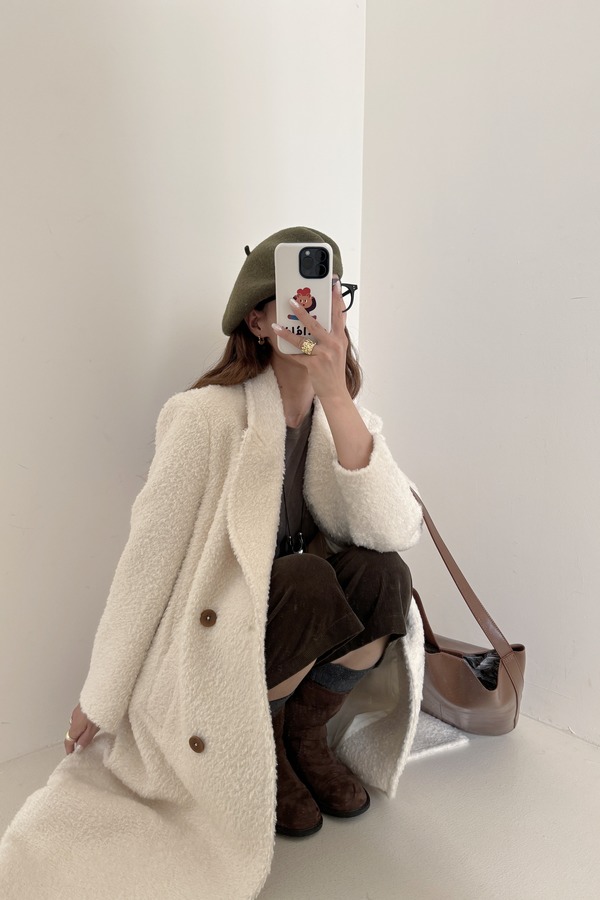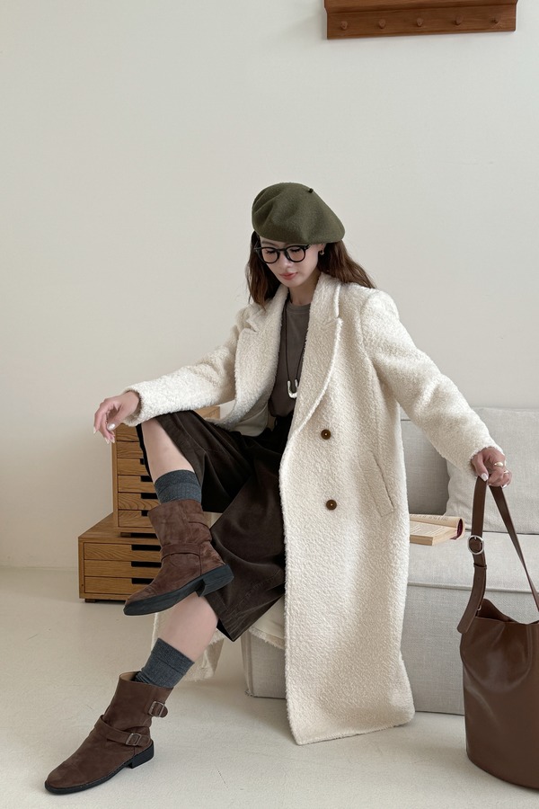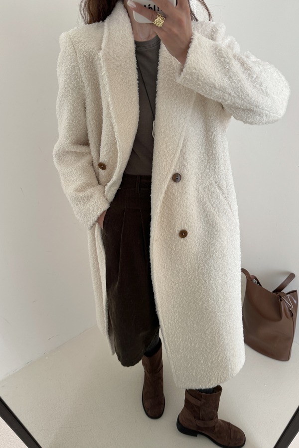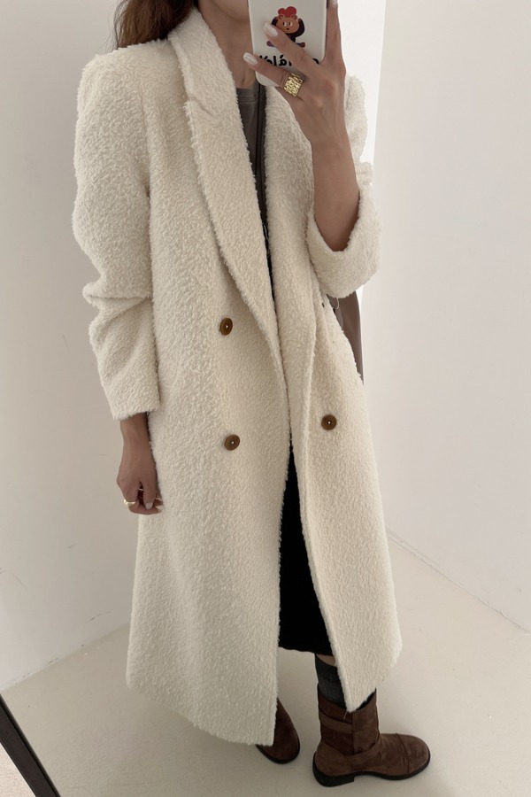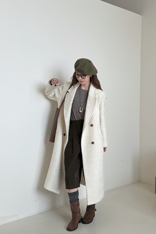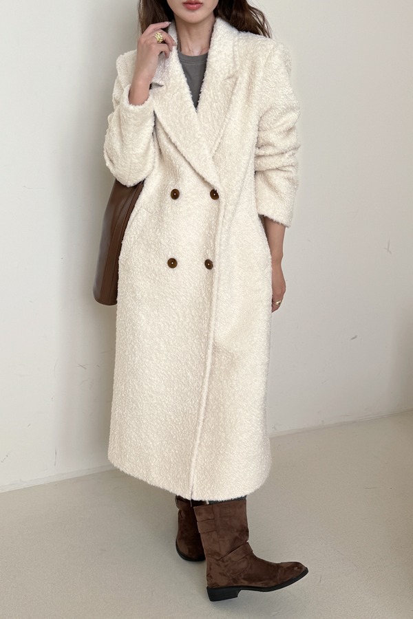 Le Malene 高级氛围感奶白色长款毛呢大衣 21309