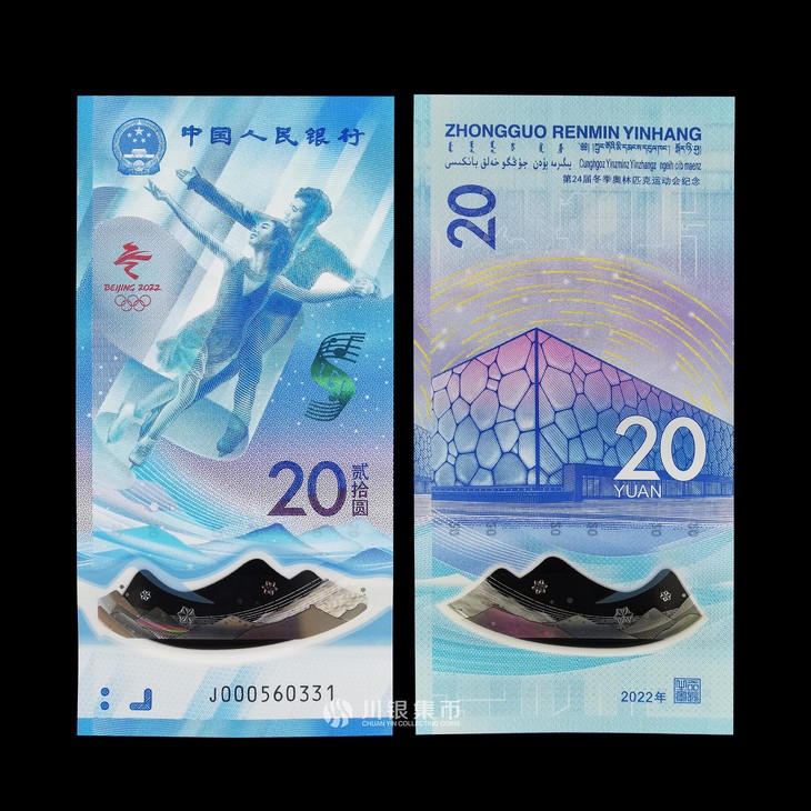 规格信息:145×70毫米,面额20元,2亿套。冰上运动为塑料钞,雪上运动为纸钞。