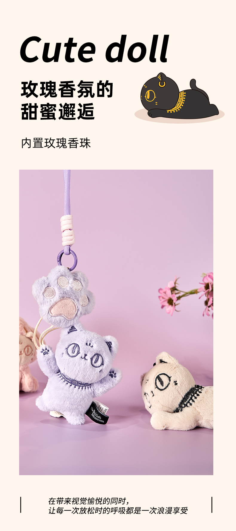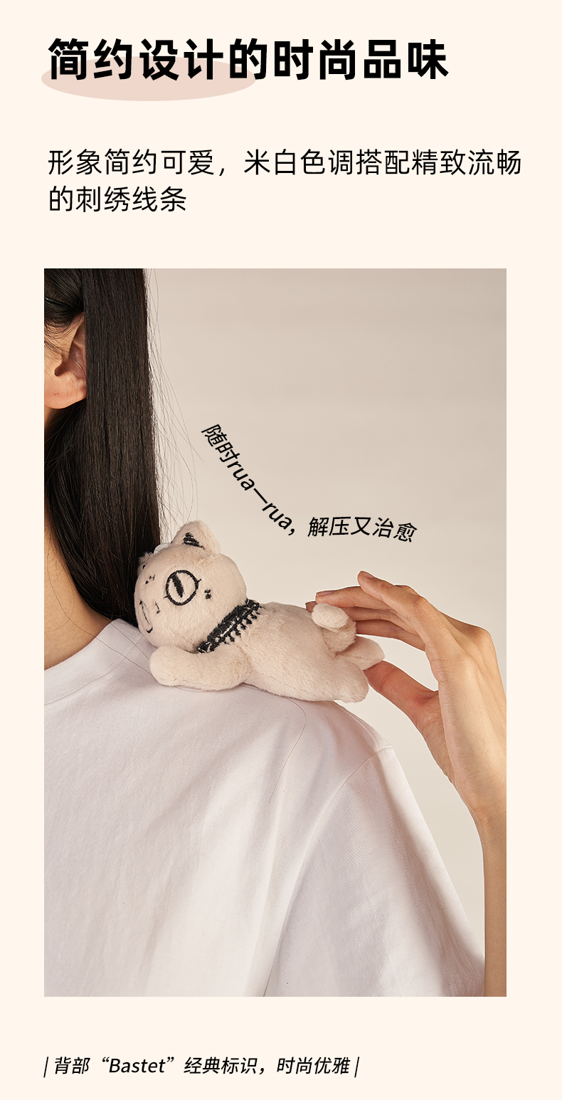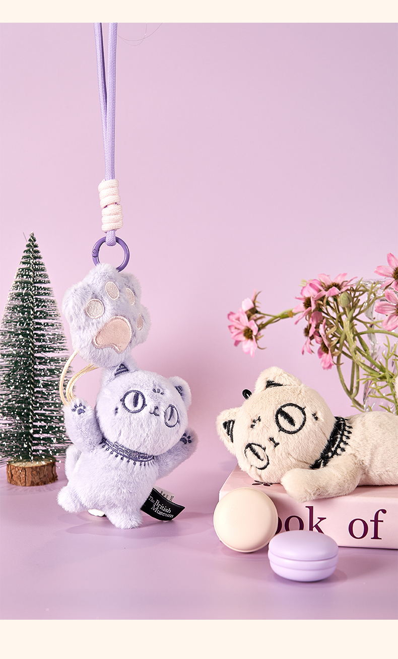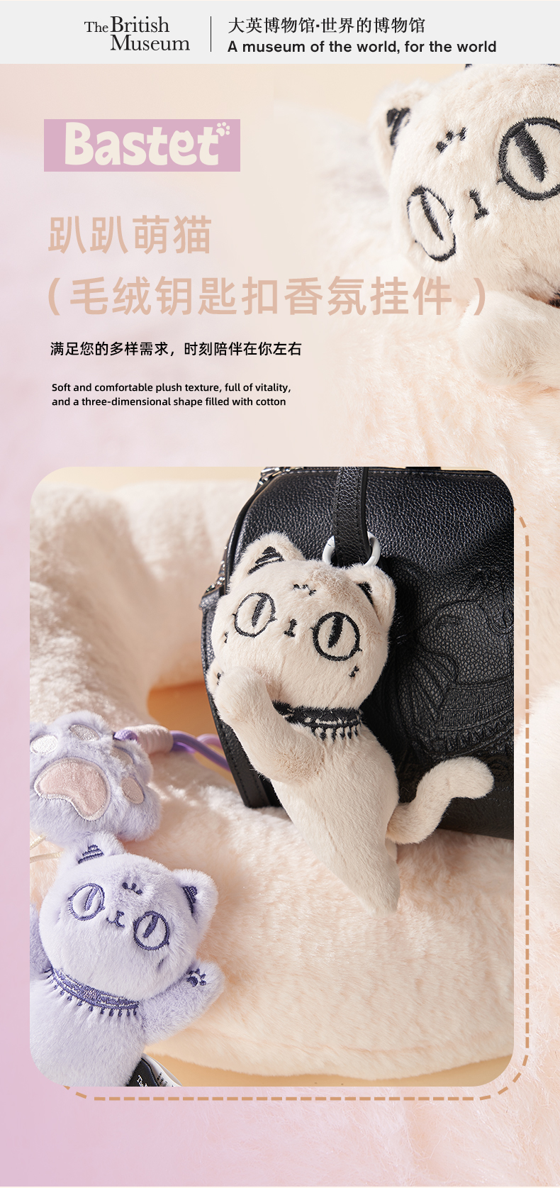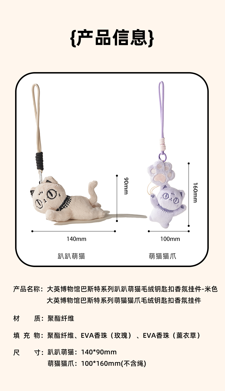 大英博物馆 巴斯特系列 趴趴萌猫毛绒钥匙扣香氛挂件 米色
