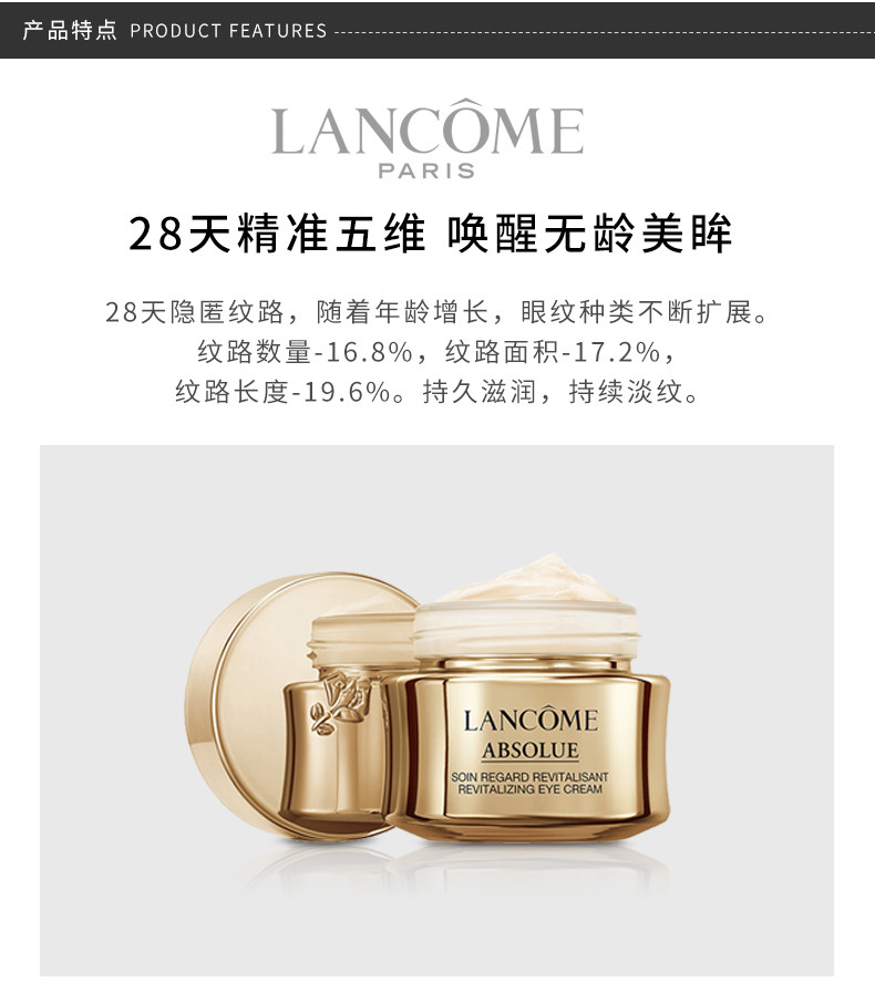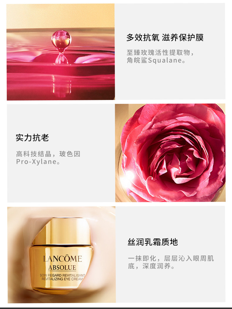 富含玫瑰精油,能加速眼周循环,改善黑眼圈,眼袋和黯沉,令眼周肌肤更显轻透净澈平滑。
