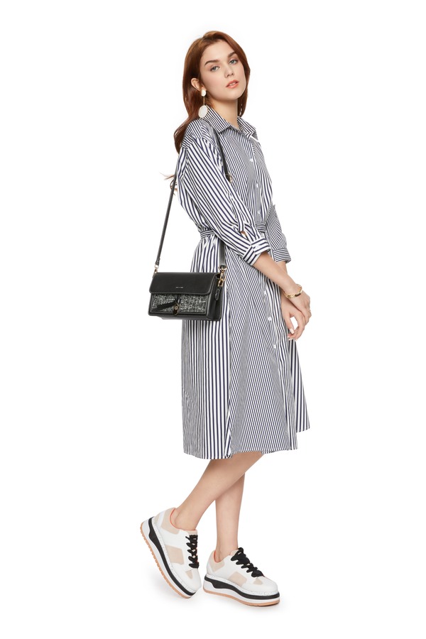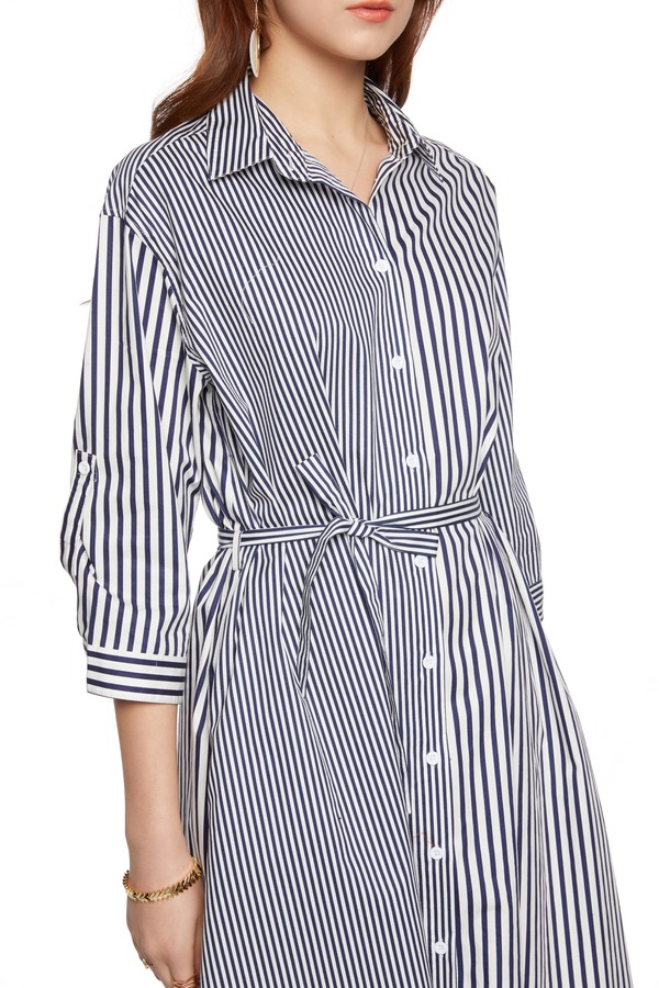 SUMMER & SAGE 竖条纹束腰衬衫裙 5913