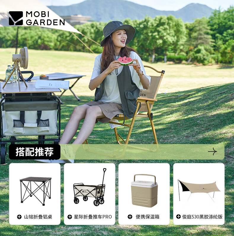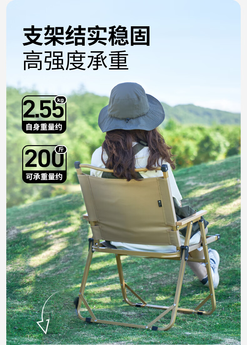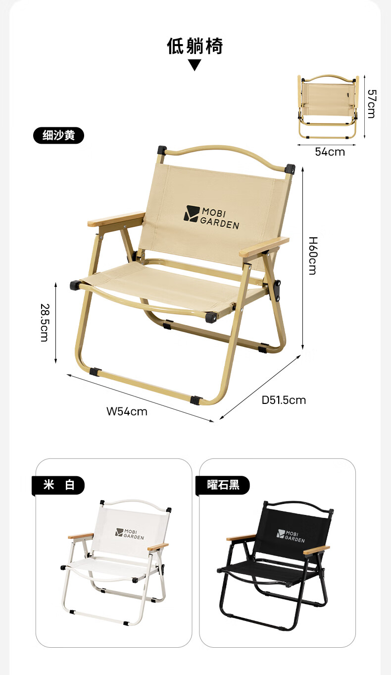 牧高笛(MOBIGARDEN)折叠椅 户外露营克米特椅便携露营椅沙滩椅 NX22665037 细沙黄