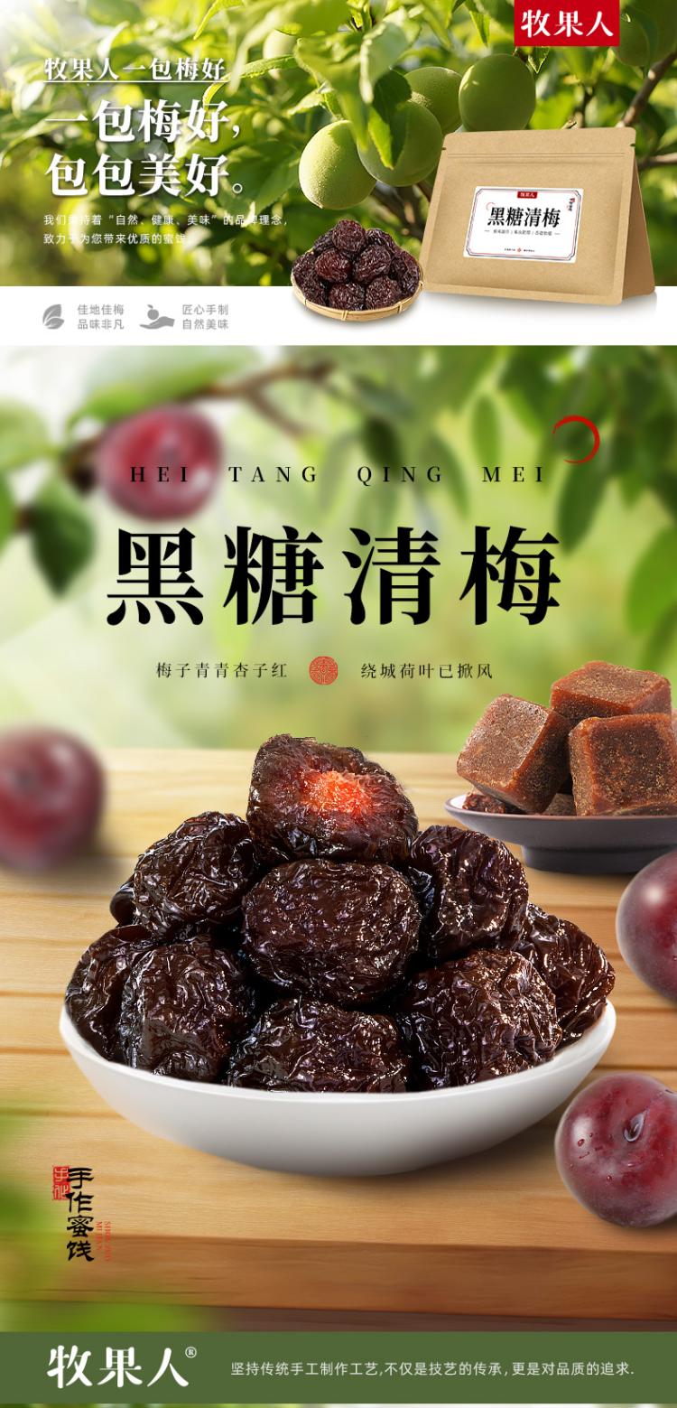 牧果人黑糖清梅500g袋大颗粒果干蜜饯果脯梅子休闲零食解馋小吃