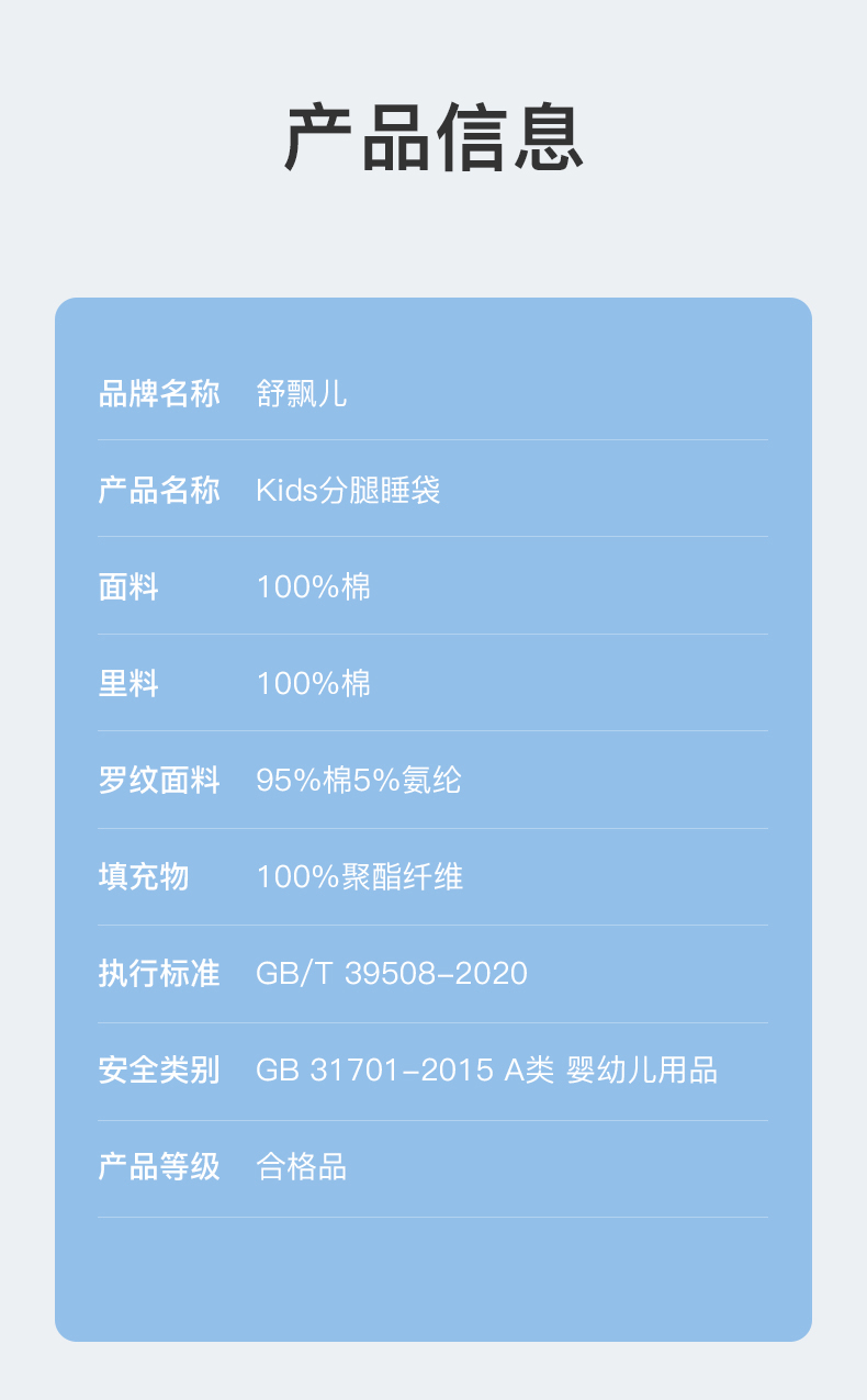 舒飘儿Kids分腿睡袋 四季款/冬款/加厚冬款(建议身高90-115cm)