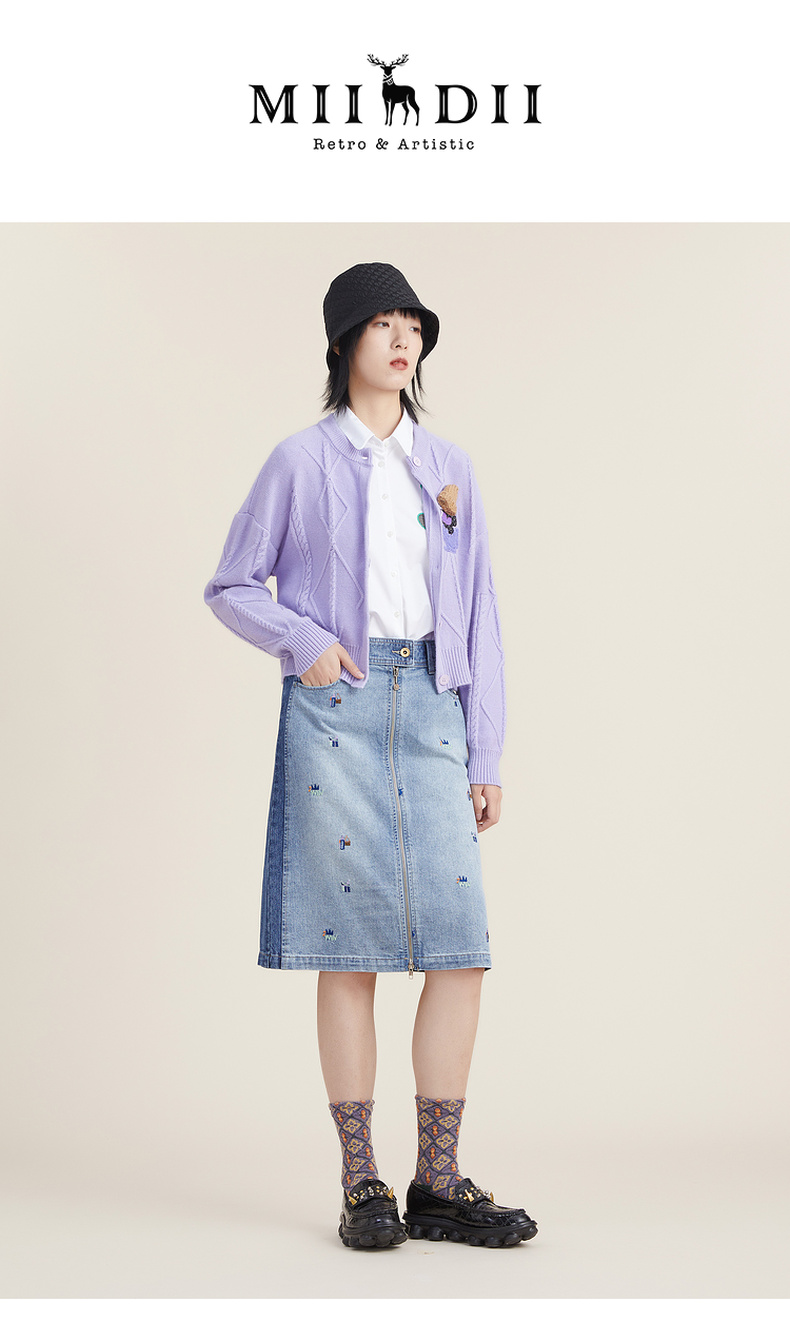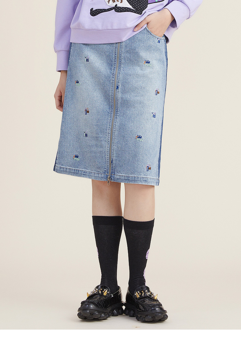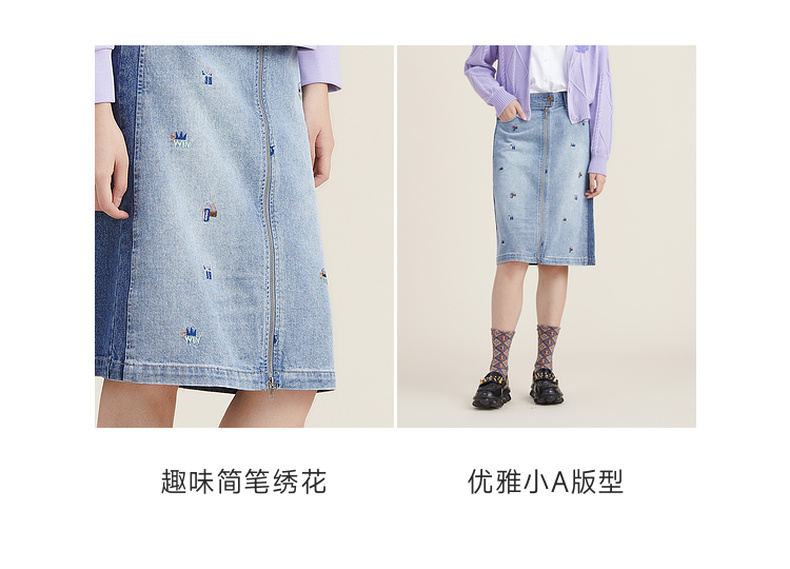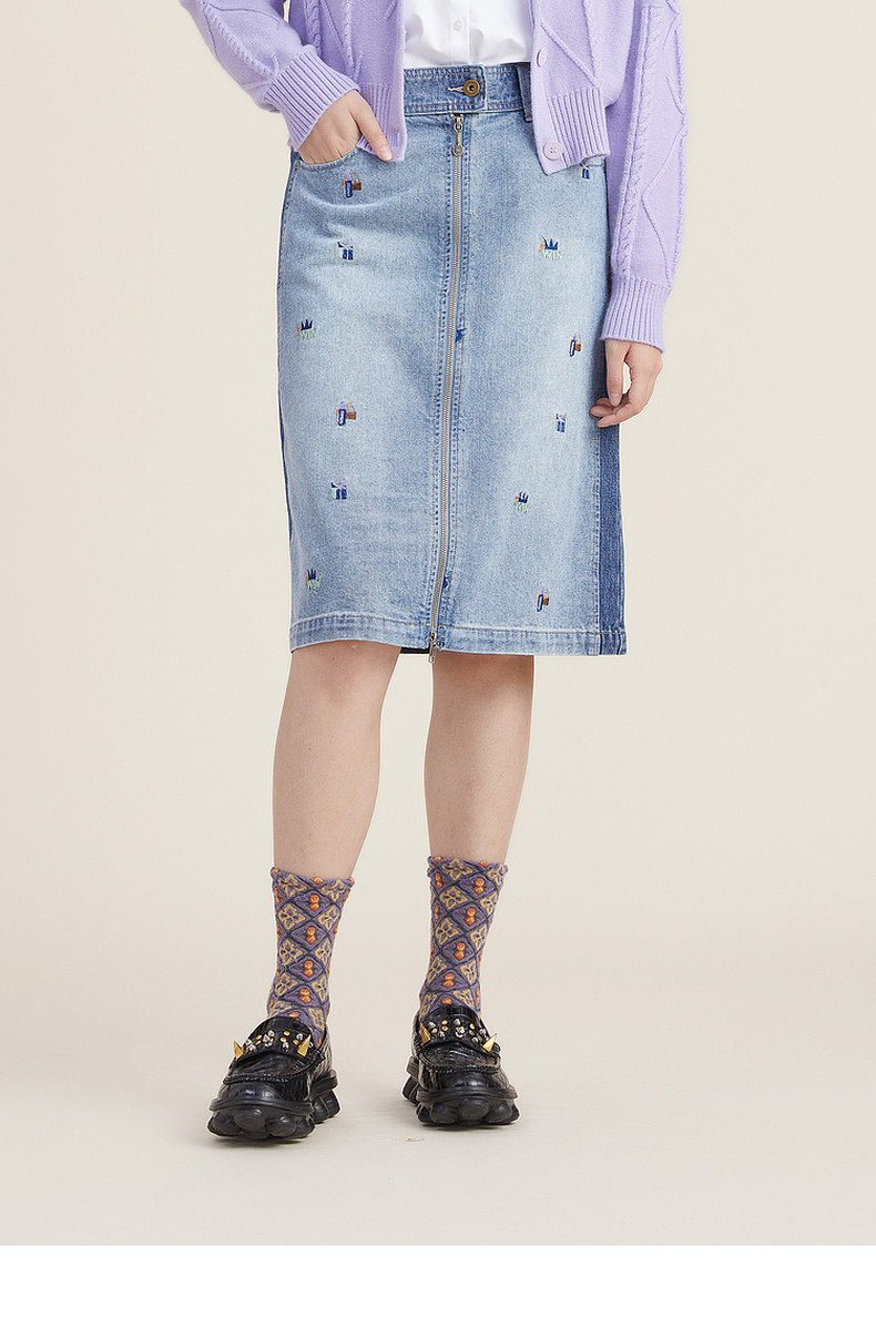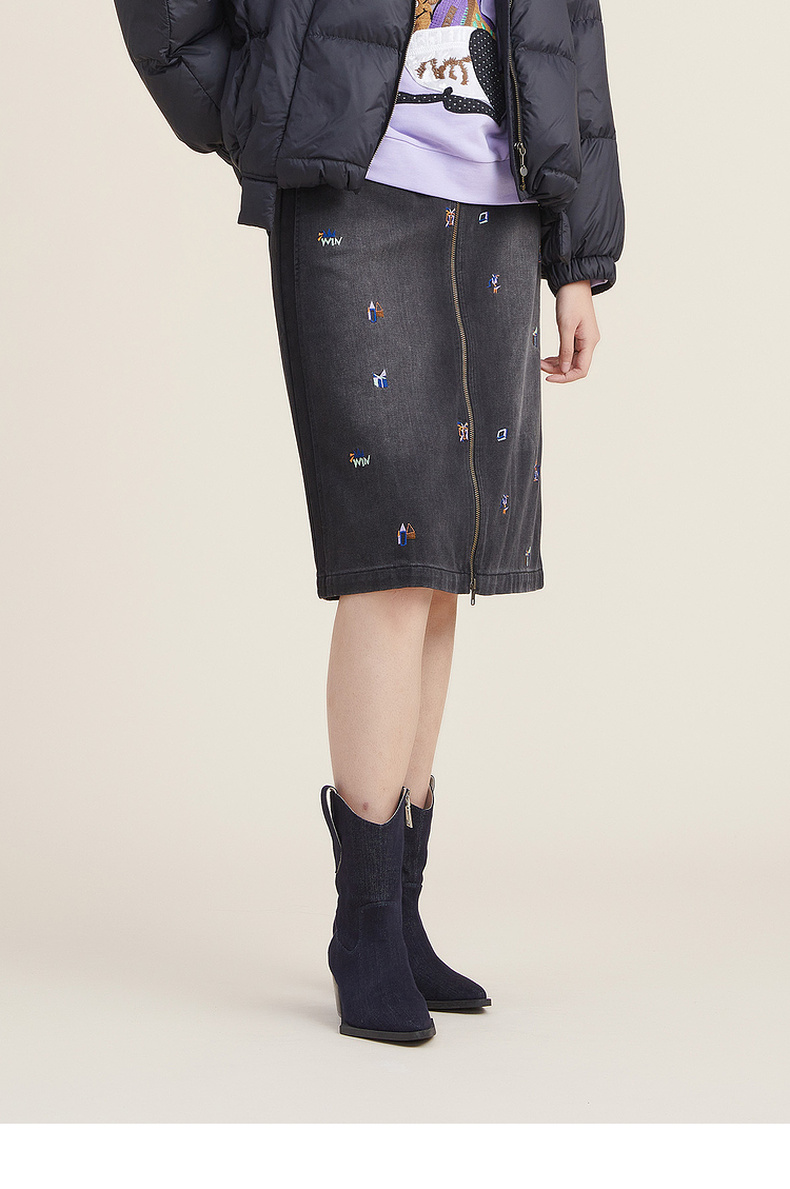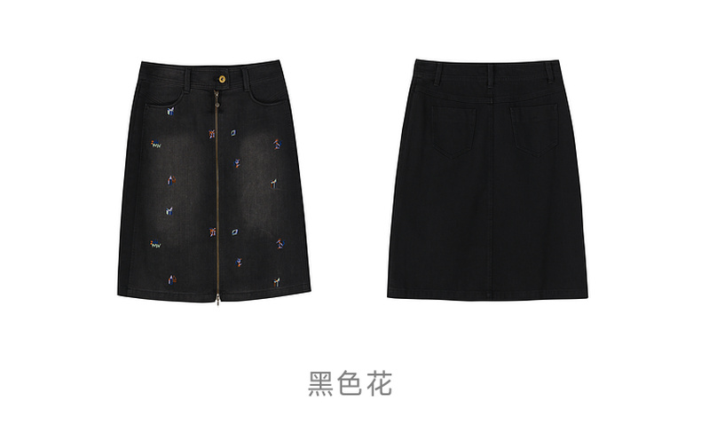 谜底2022秋新款复古卡通趣味绣花半身裙小A型中长款半裙223MB1023