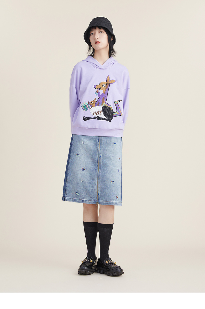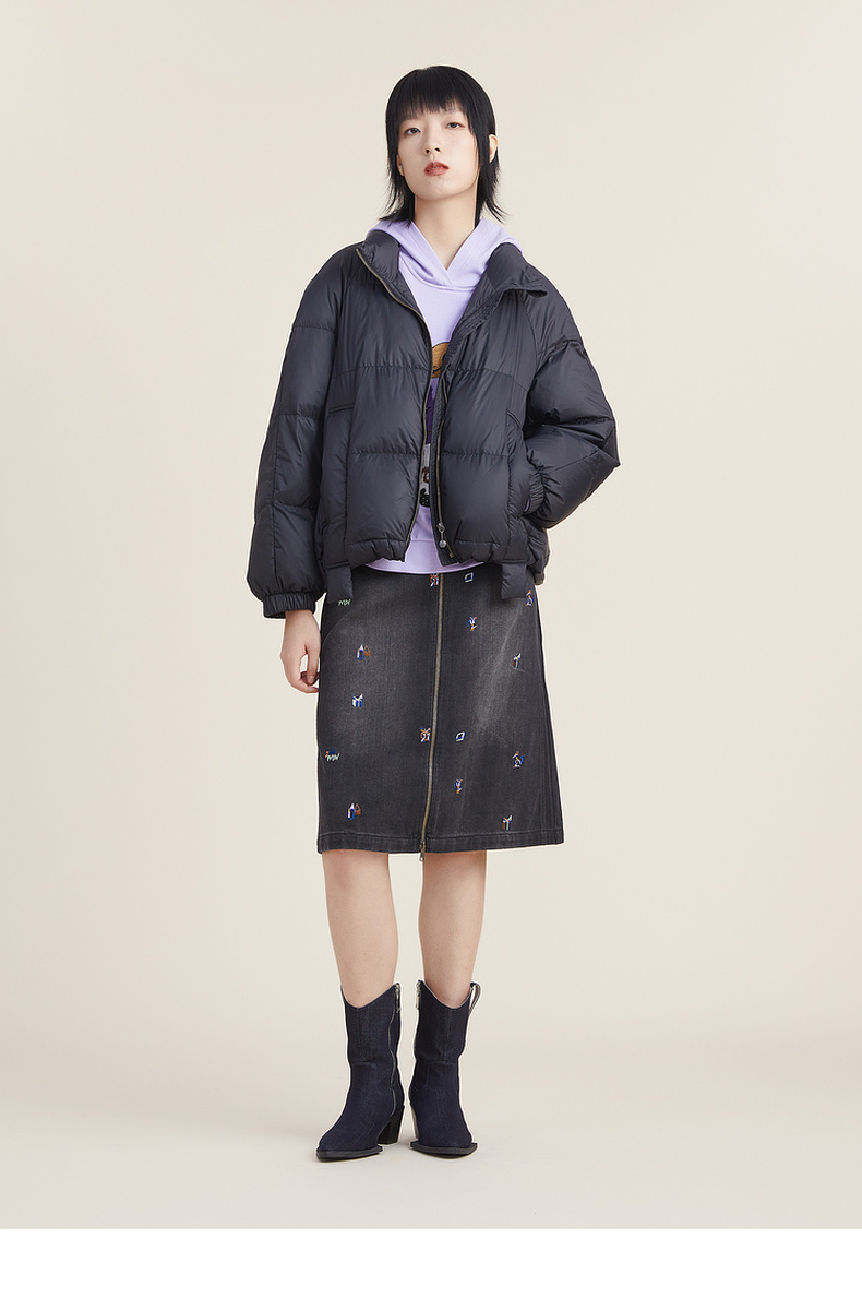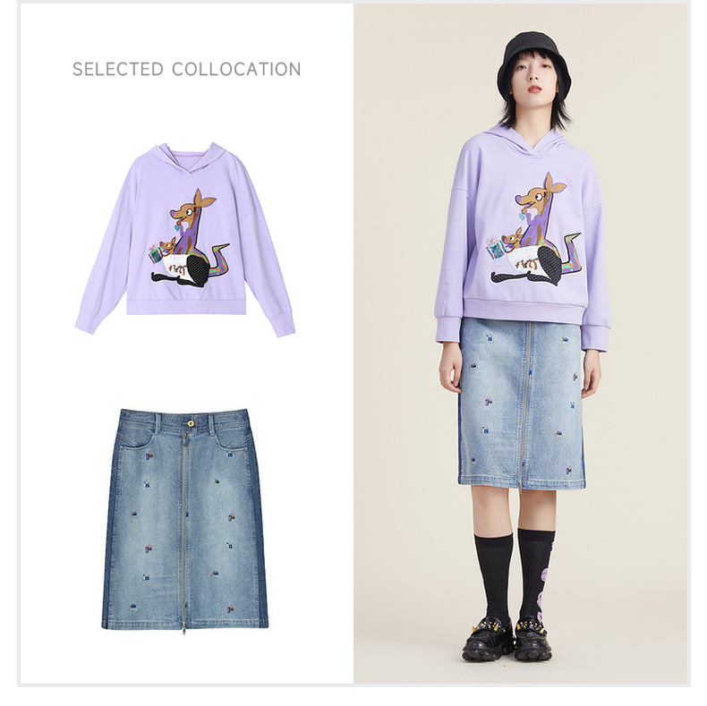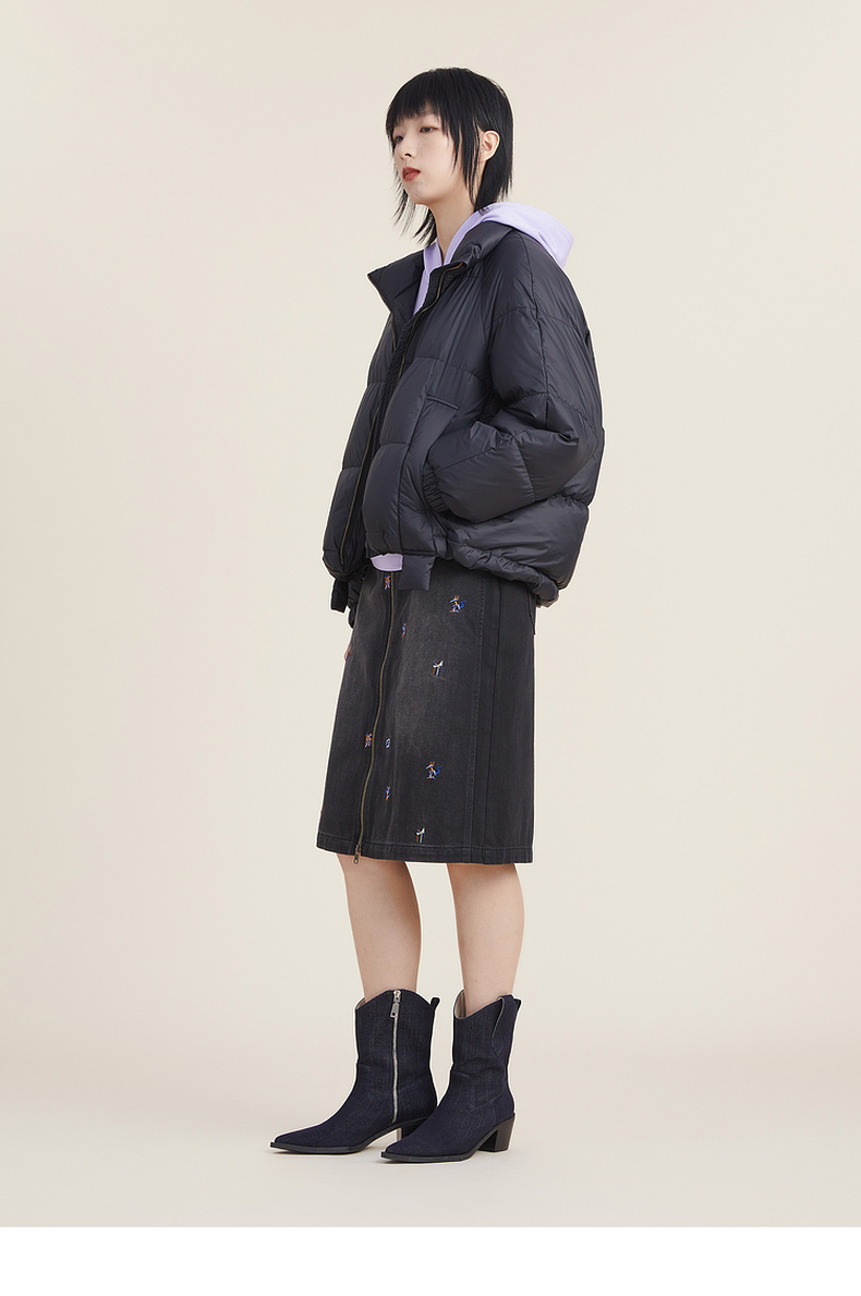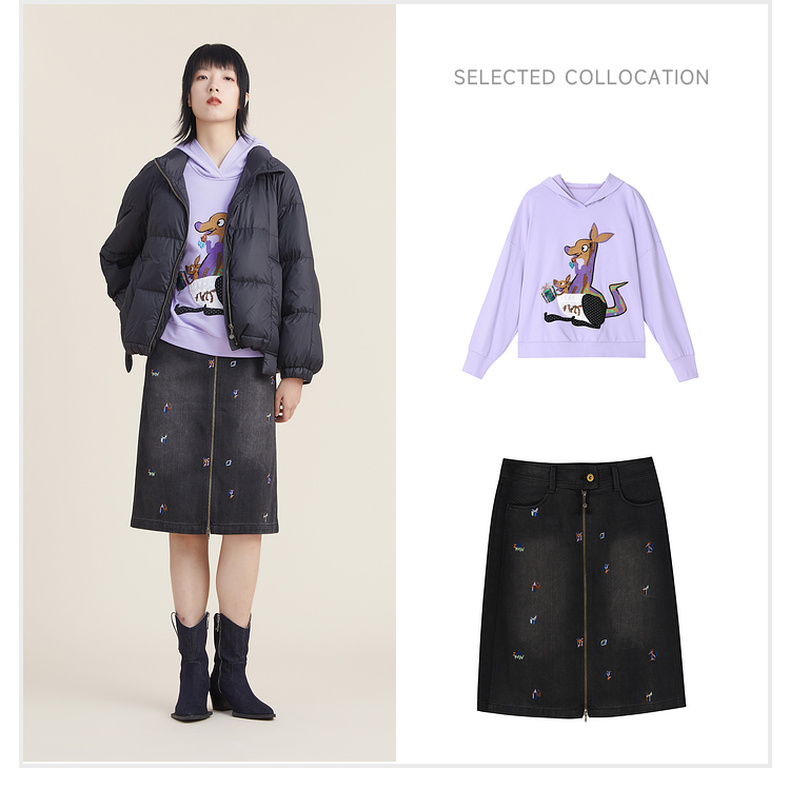 谜底2022秋新款复古卡通趣味绣花半身裙小A型中长款半裙223MB1023