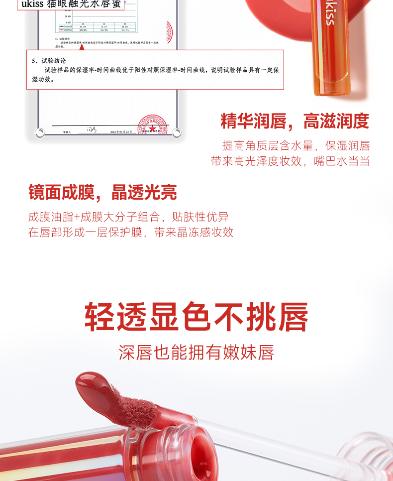 【🌷4.3-4.6踏青出游焕新妆】ukiss水精华唇蜜嘟嘟水嫩清透不黏腻打造光亮玻璃唇