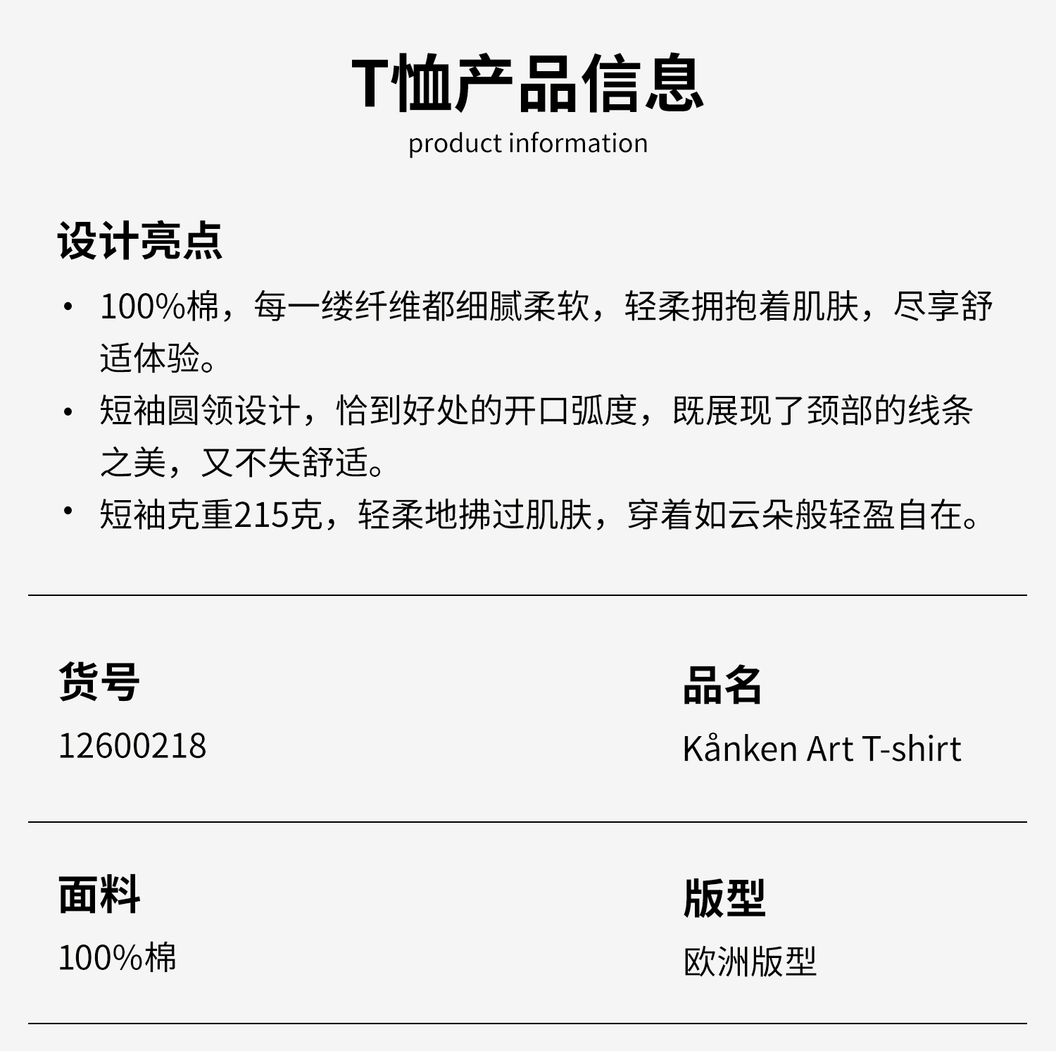 fjallraven北极狐Kanken Art城市户外短袖t恤 男女同款 12600218