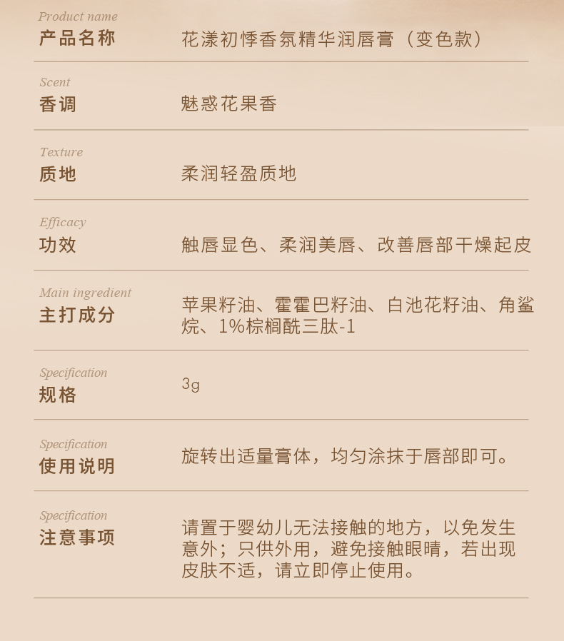 【现货速发】DearIrean 独特艾琳香氛精华润唇膏保湿补水防干淡化唇纹口红打底唇膜变色女3g