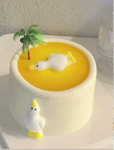 4英寸专场~躺平鸭(鸭子颜色随机)卡通小蛋糕系列-低糖处理无添加