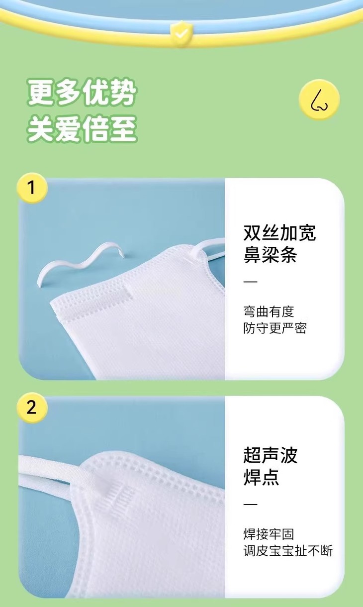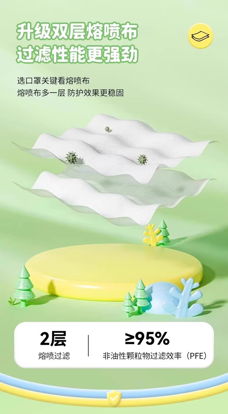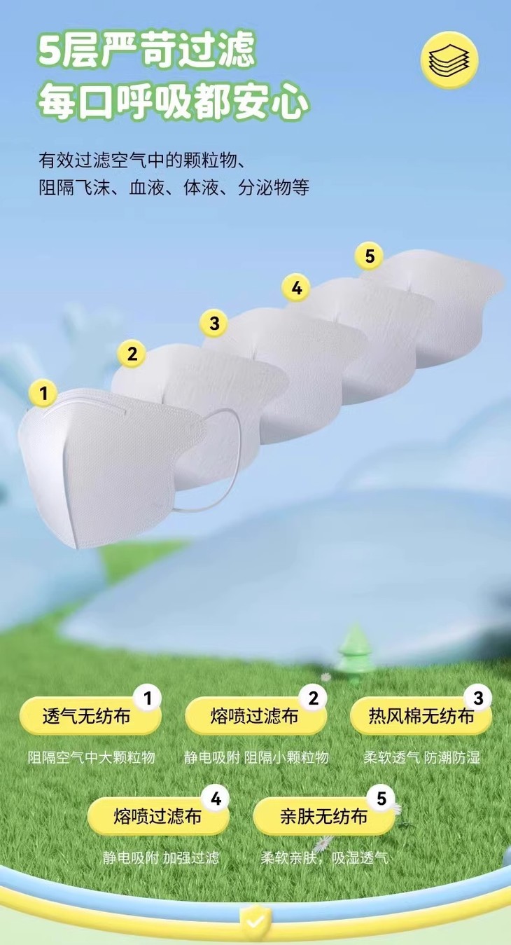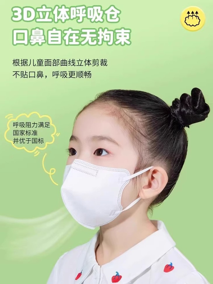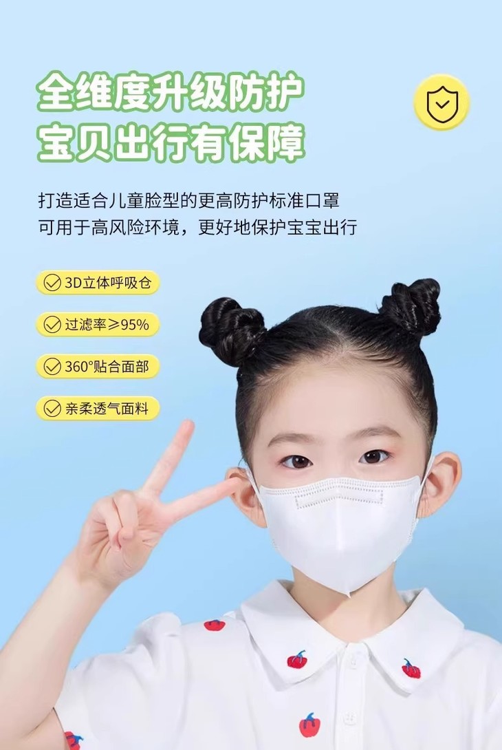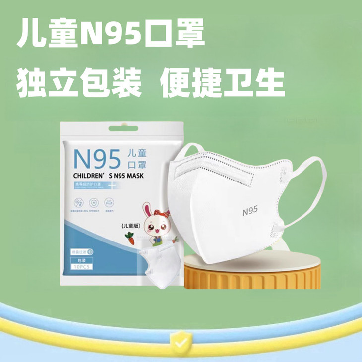 「9.9到手50个!独立包装」新款儿童N95五层防护一次性口罩 立体支撑防尘透气学生居家日用