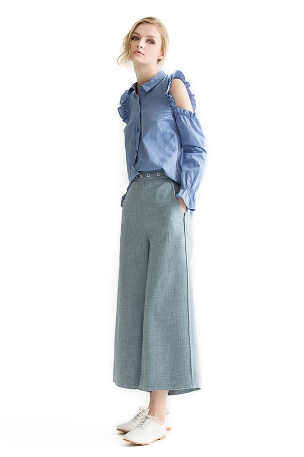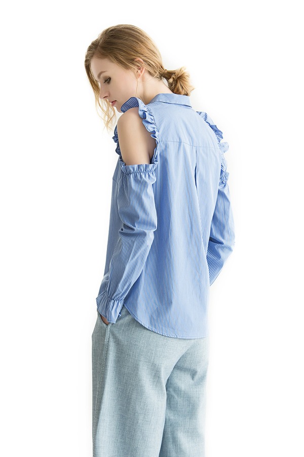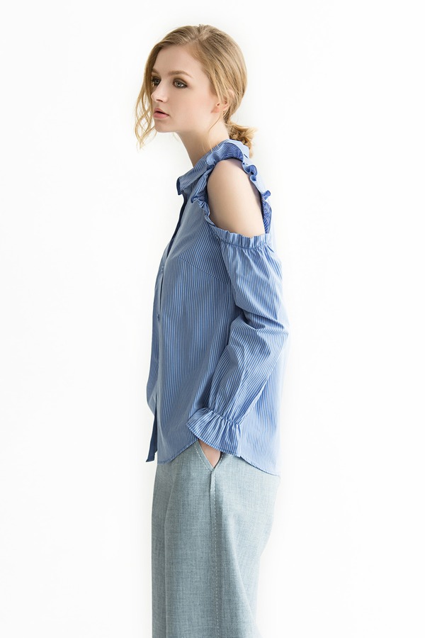 BCBGeneration 蓝色露肩条纹衬衫 657