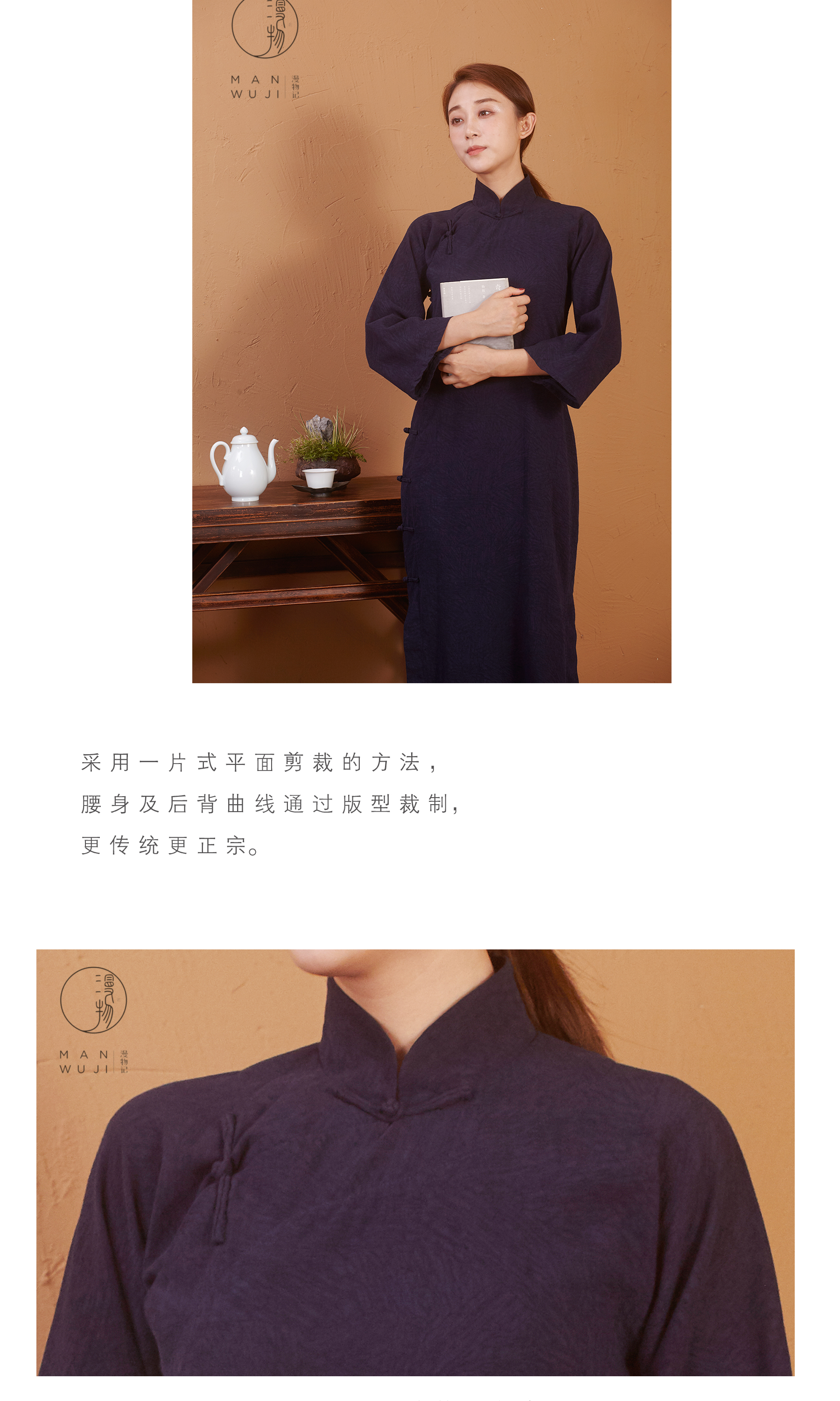 漫物记立领斜襟长款上衣xys-W091