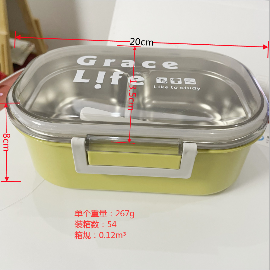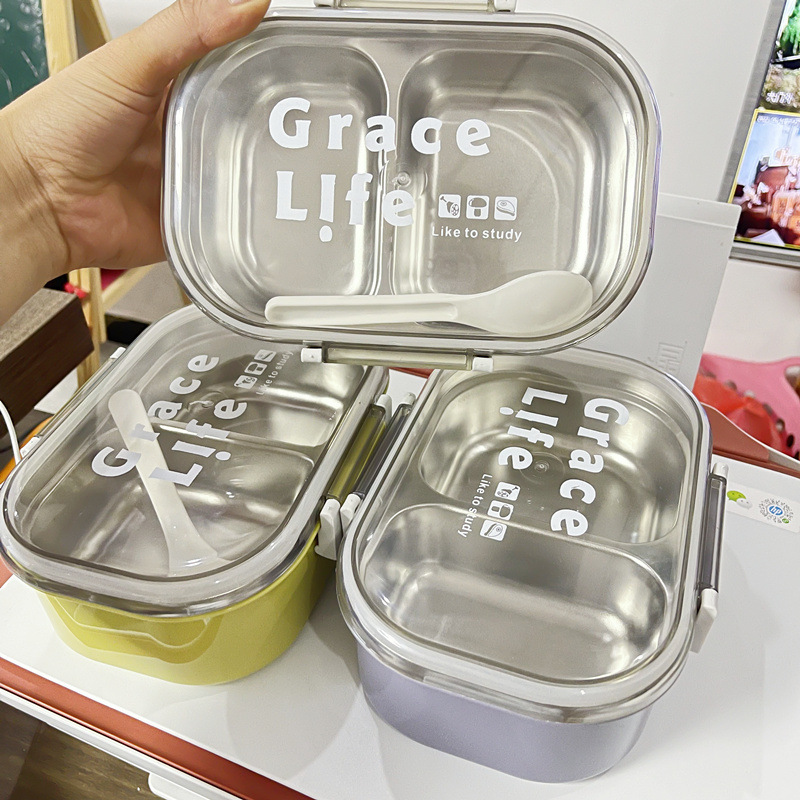 「不锈钢饭盒!拼团同款」高颜值小学生两格饭盒 韩式午餐盒上班族带饭带餐饮用具