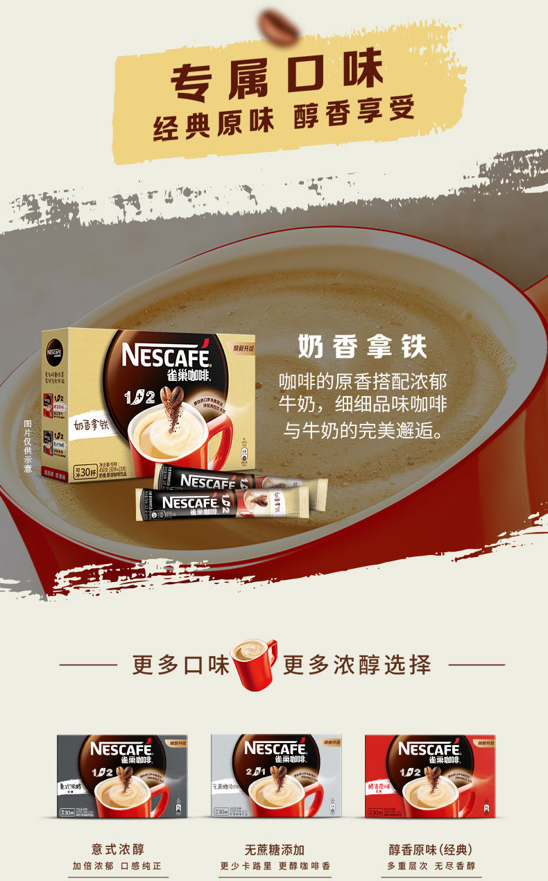 「整盒30条装」雀巢速溶咖啡特浓390g奶香雀巢30条装咖啡