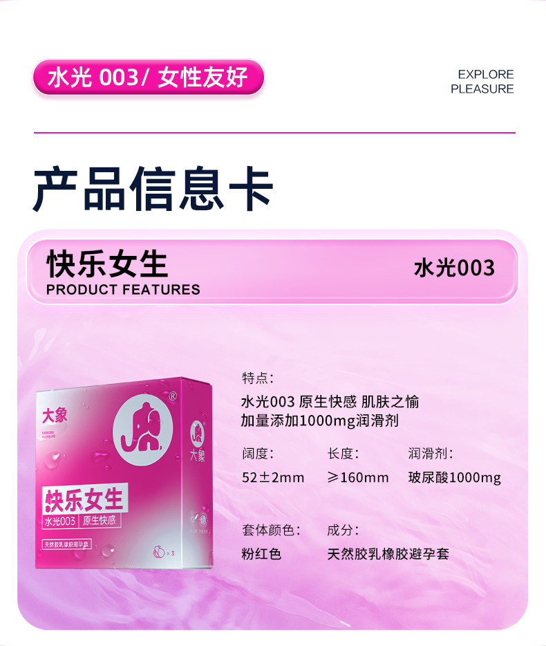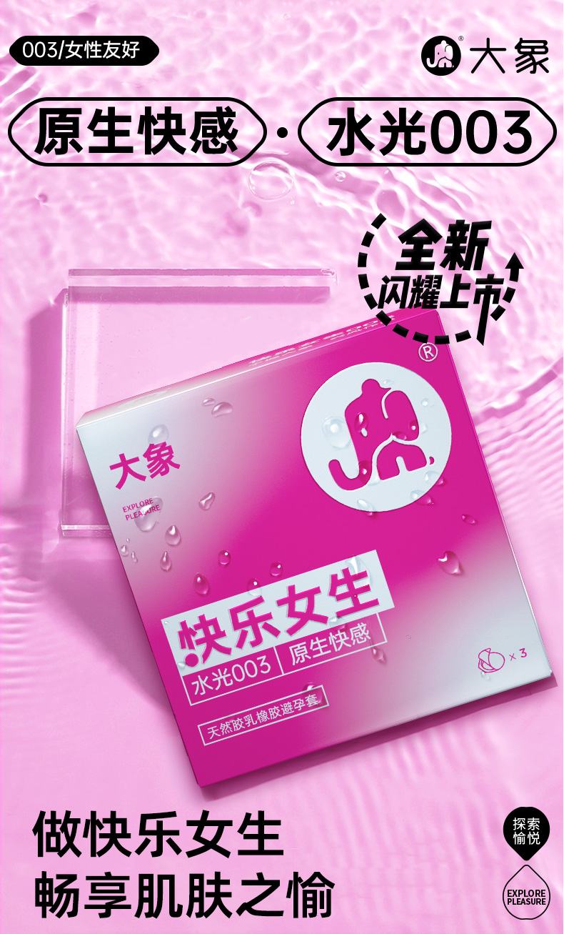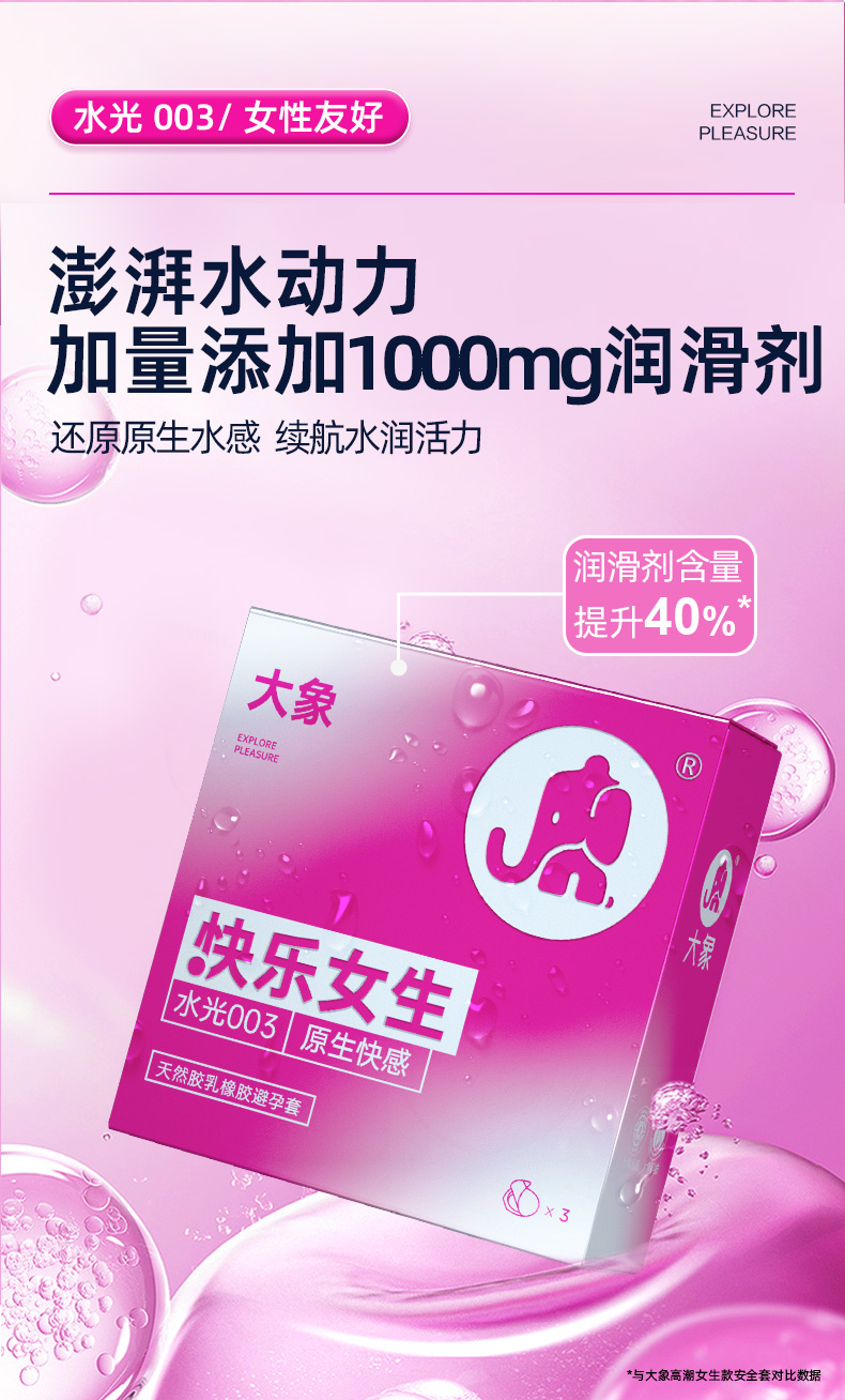 【双旦狂欢·钜惠来袭】 大象快乐女生避孕套 水光003 原生快感