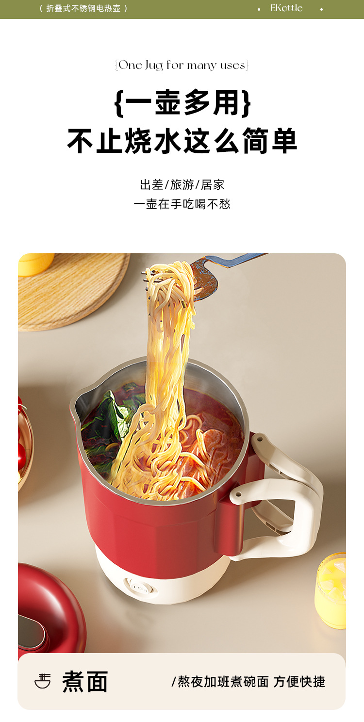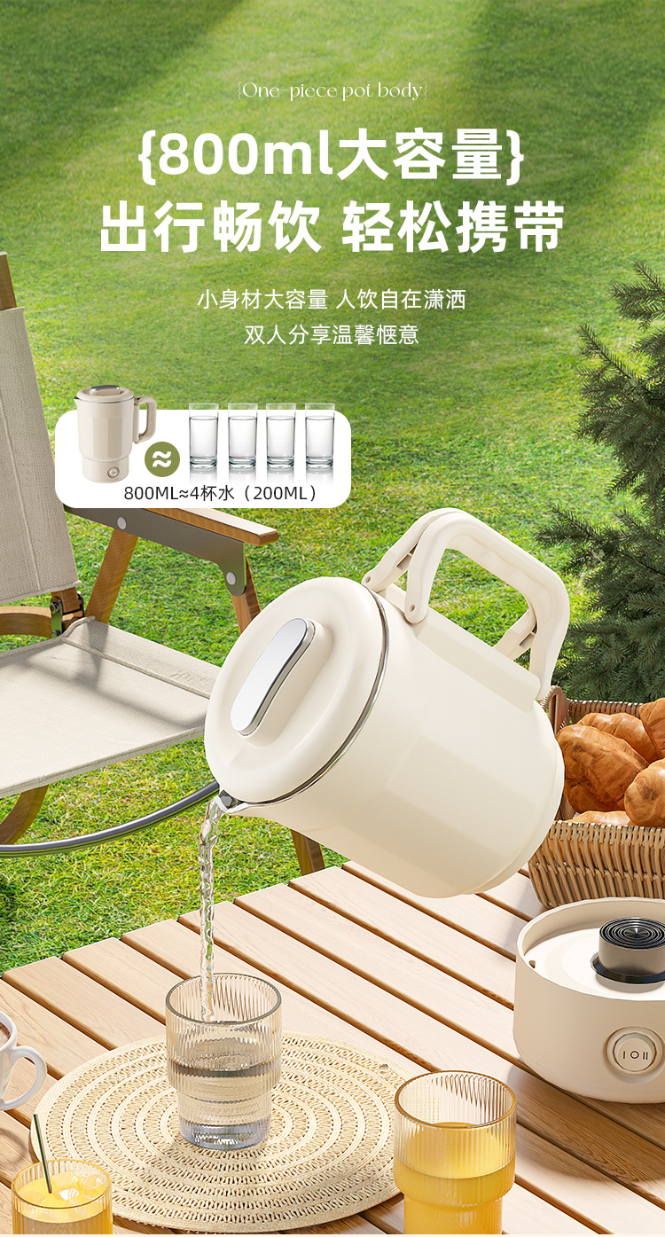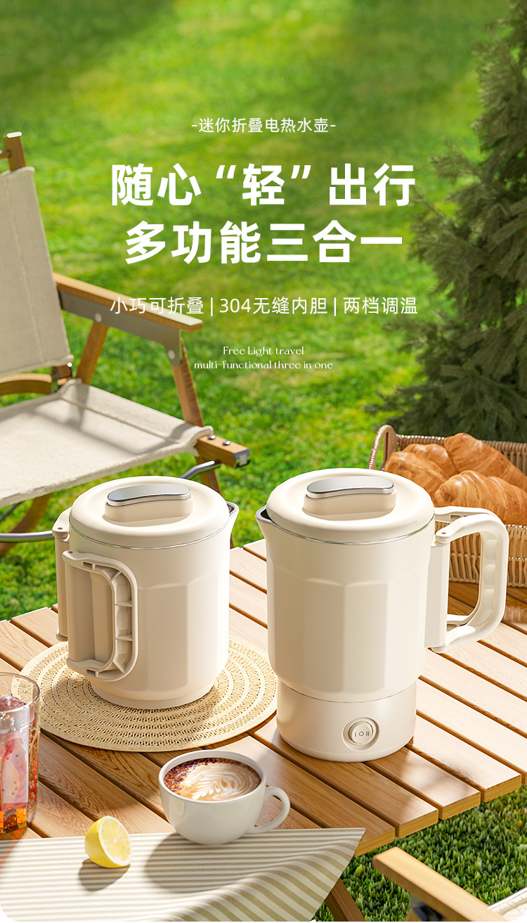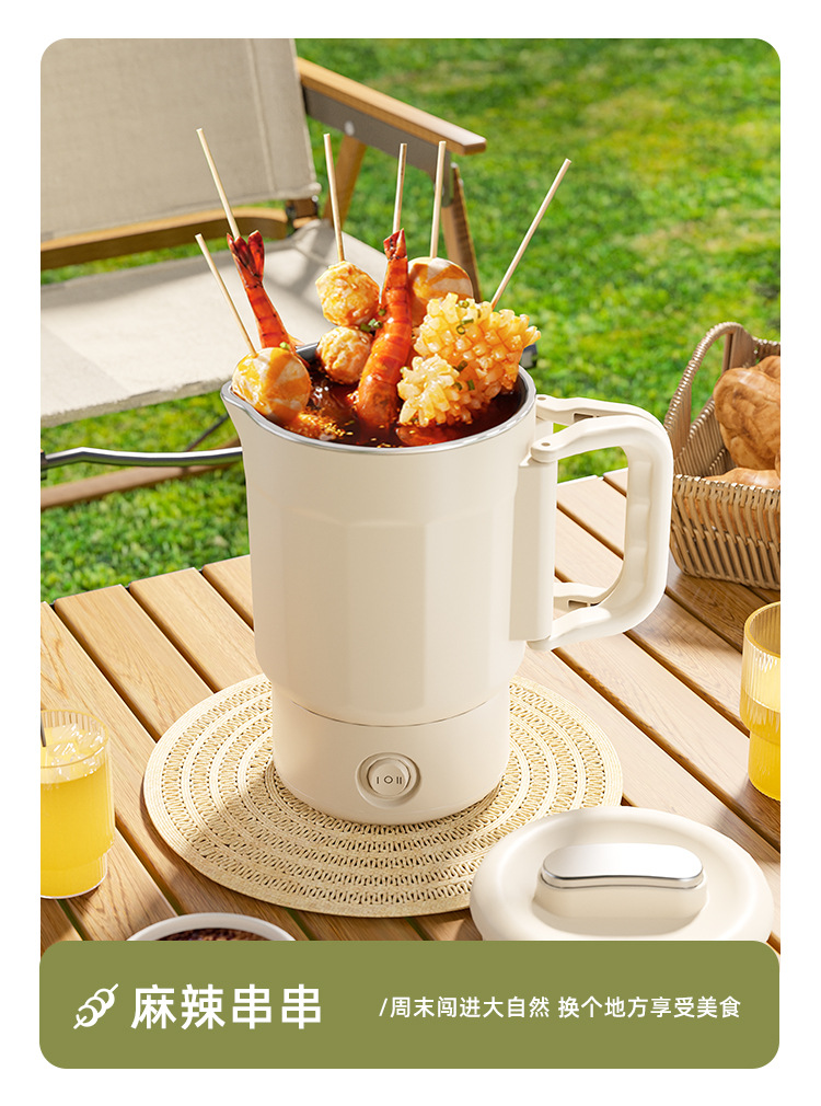 夏上新【五一出行方便携式神器】多功能304不锈钢 可折叠电热水壶 露营户外旅行便携式迷你烧水壶 安全便捷省力