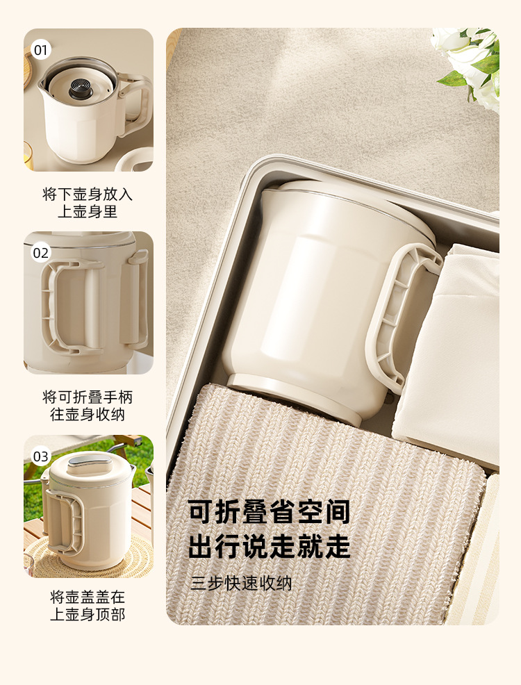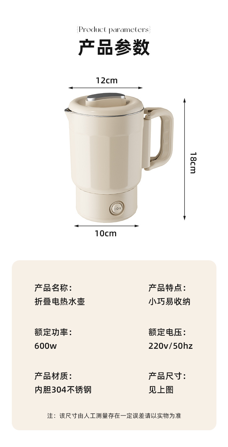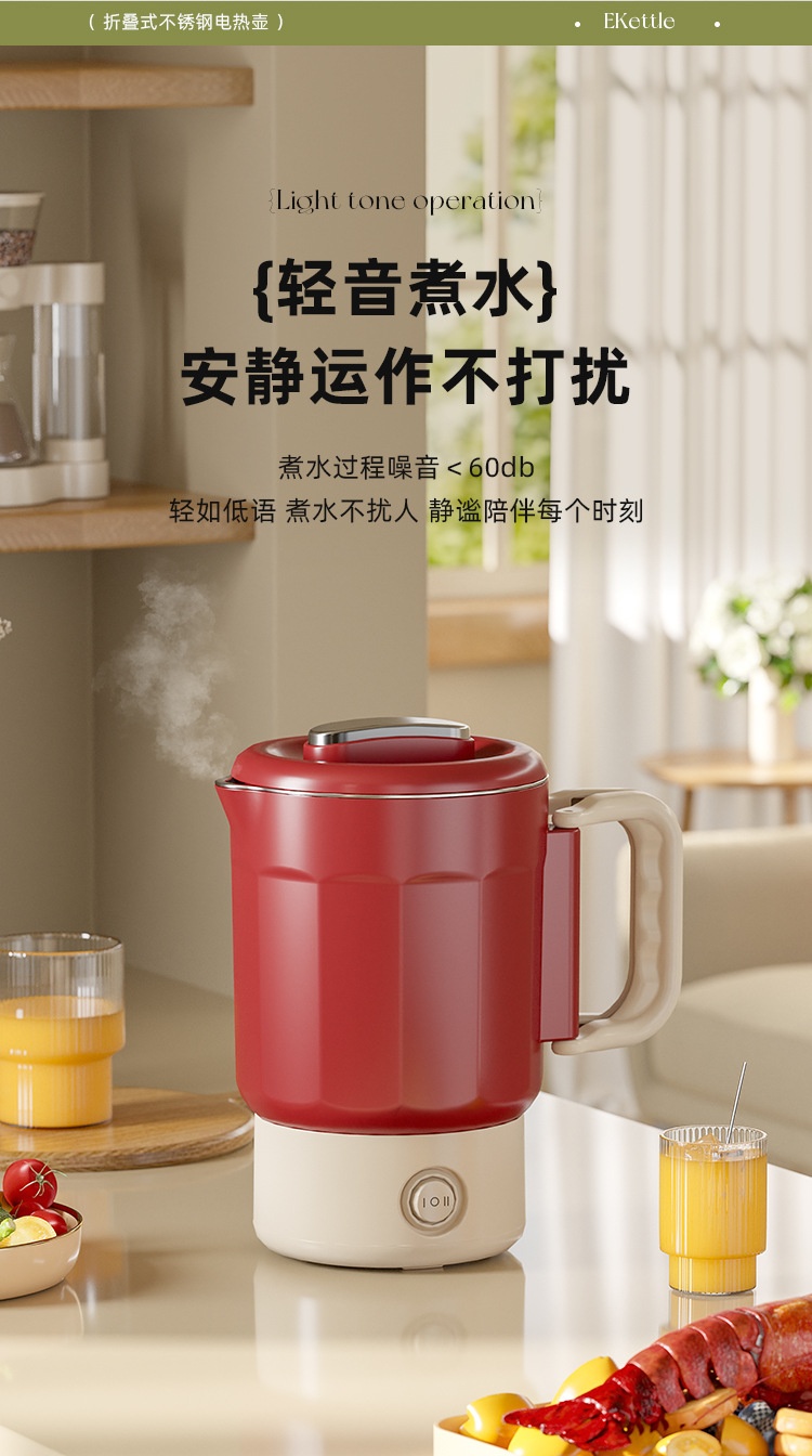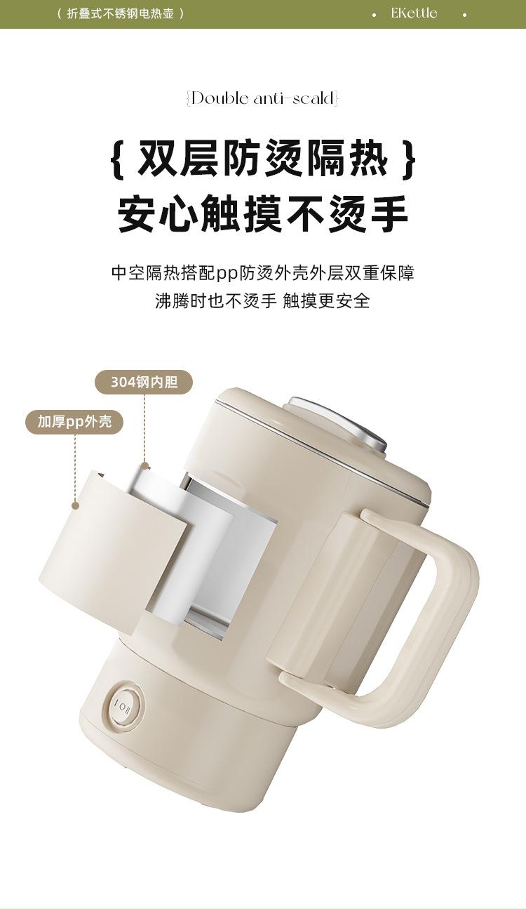 夏上新【五一出行方便携式神器】多功能304不锈钢 可折叠电热水壶 露营户外旅行便携式迷你烧水壶 安全便捷省力