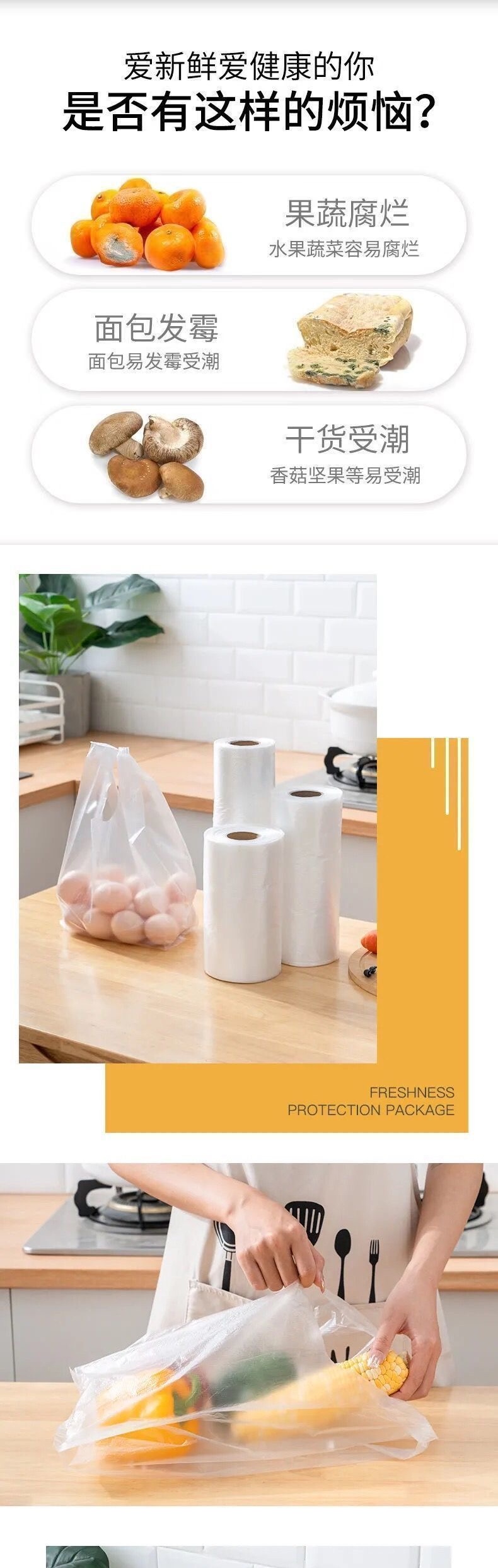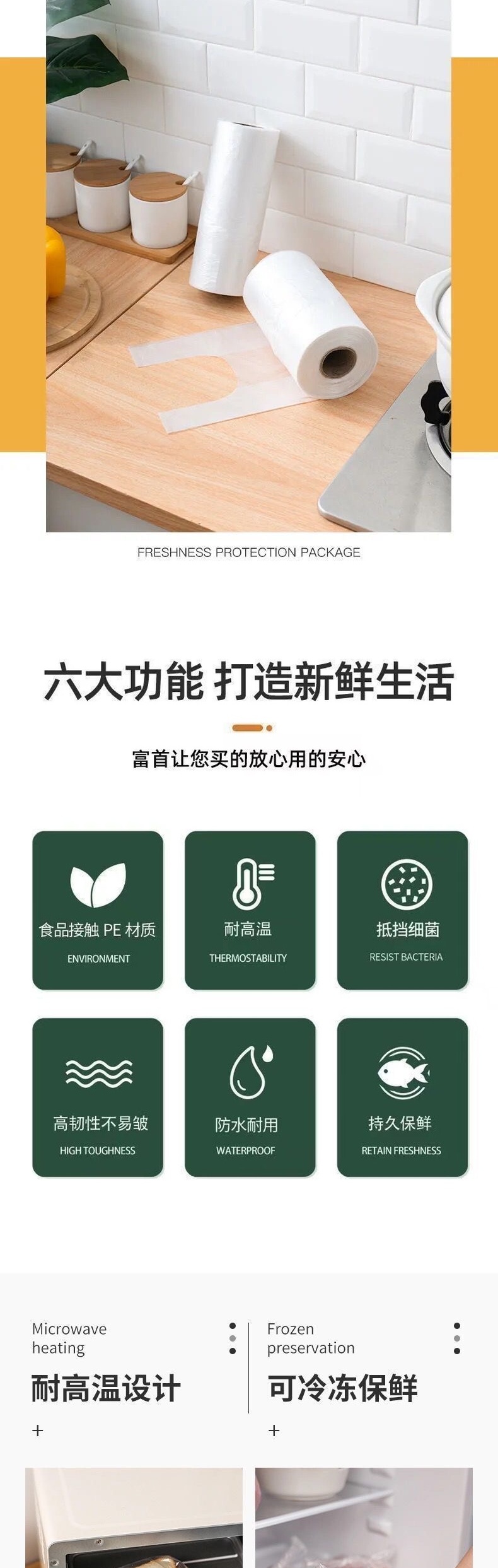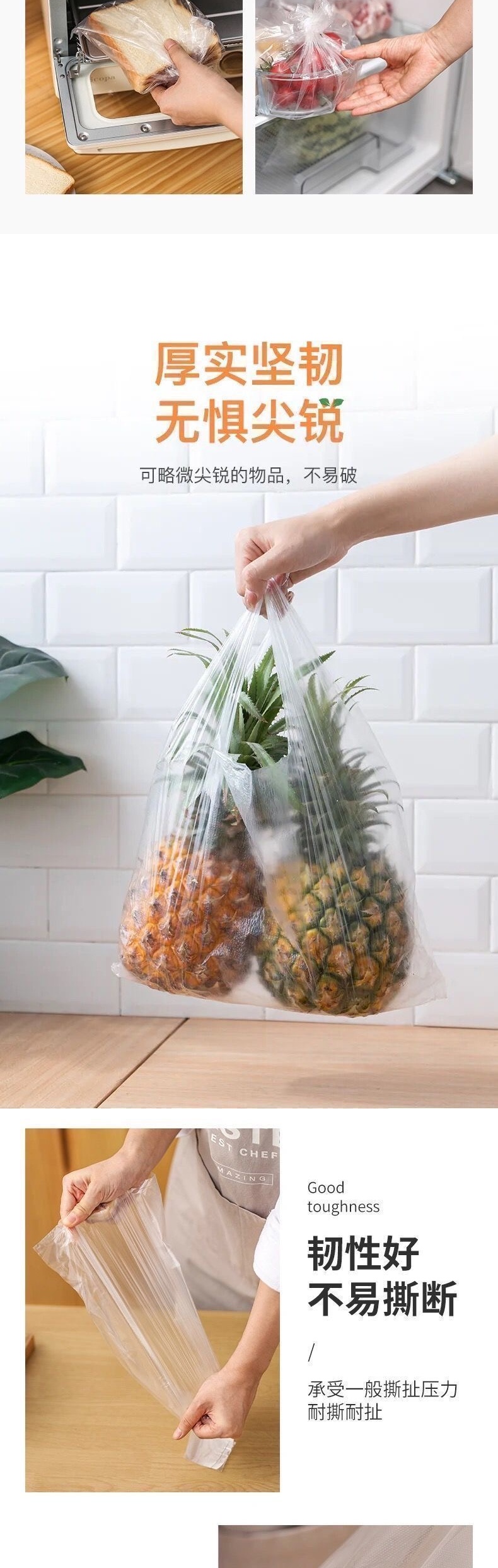 优云背心式卷装保鲜袋100只 手提冰箱冷藏袋家用食品包装袋