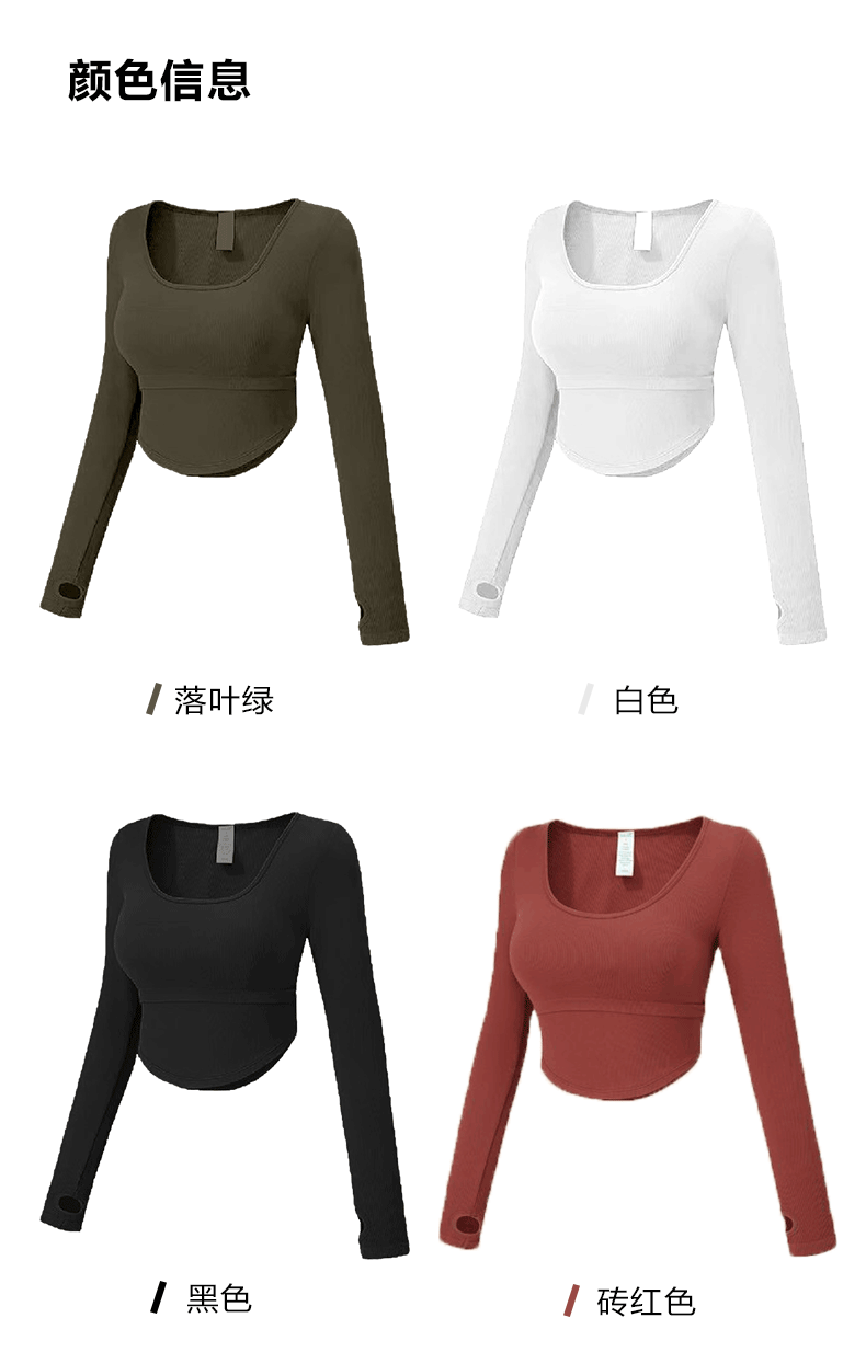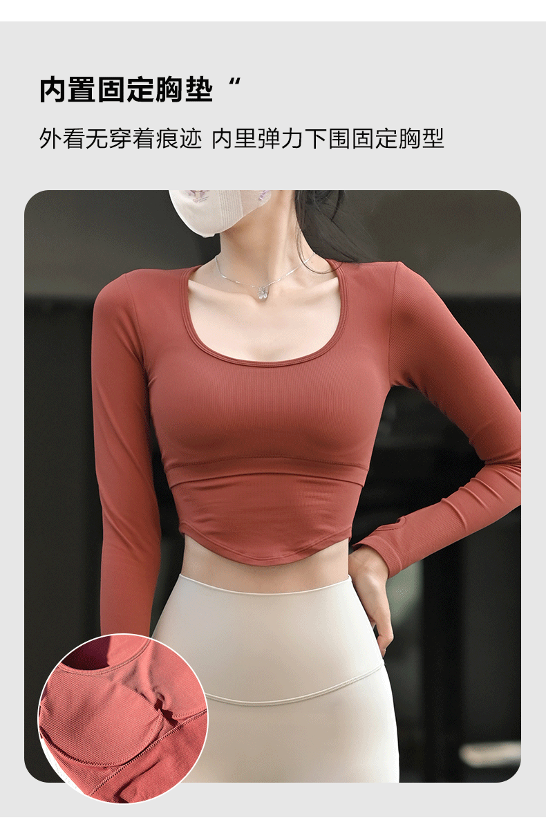 新款秋冬短款瑜伽服一体式美背健身长袖U领跑步运动上衣