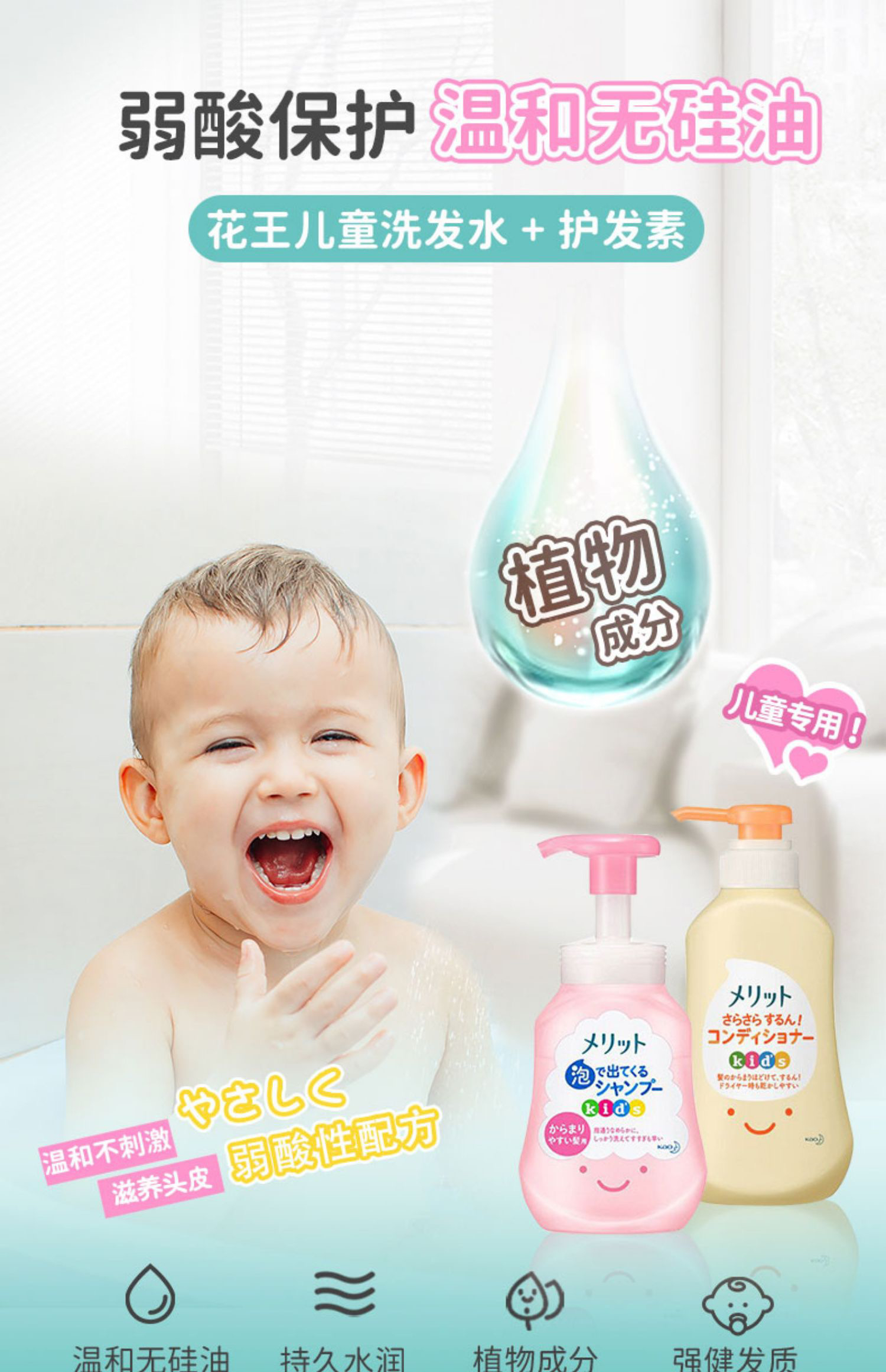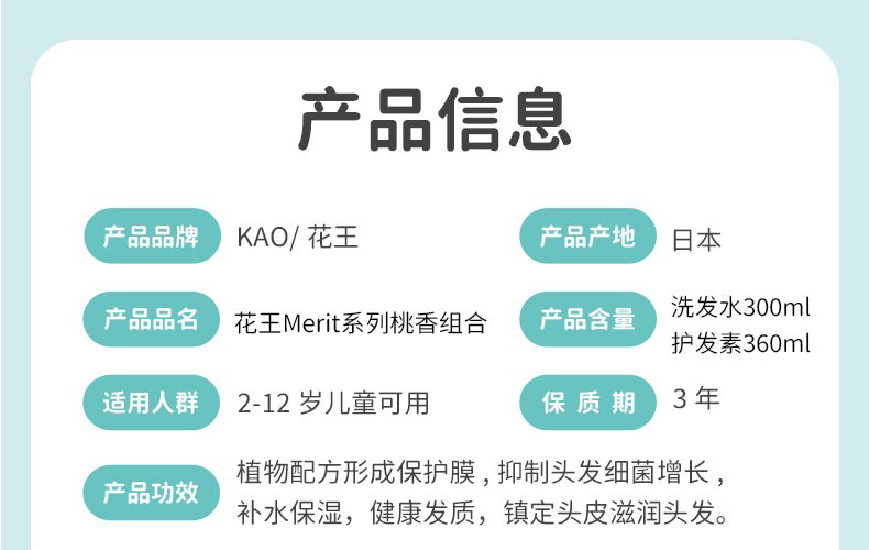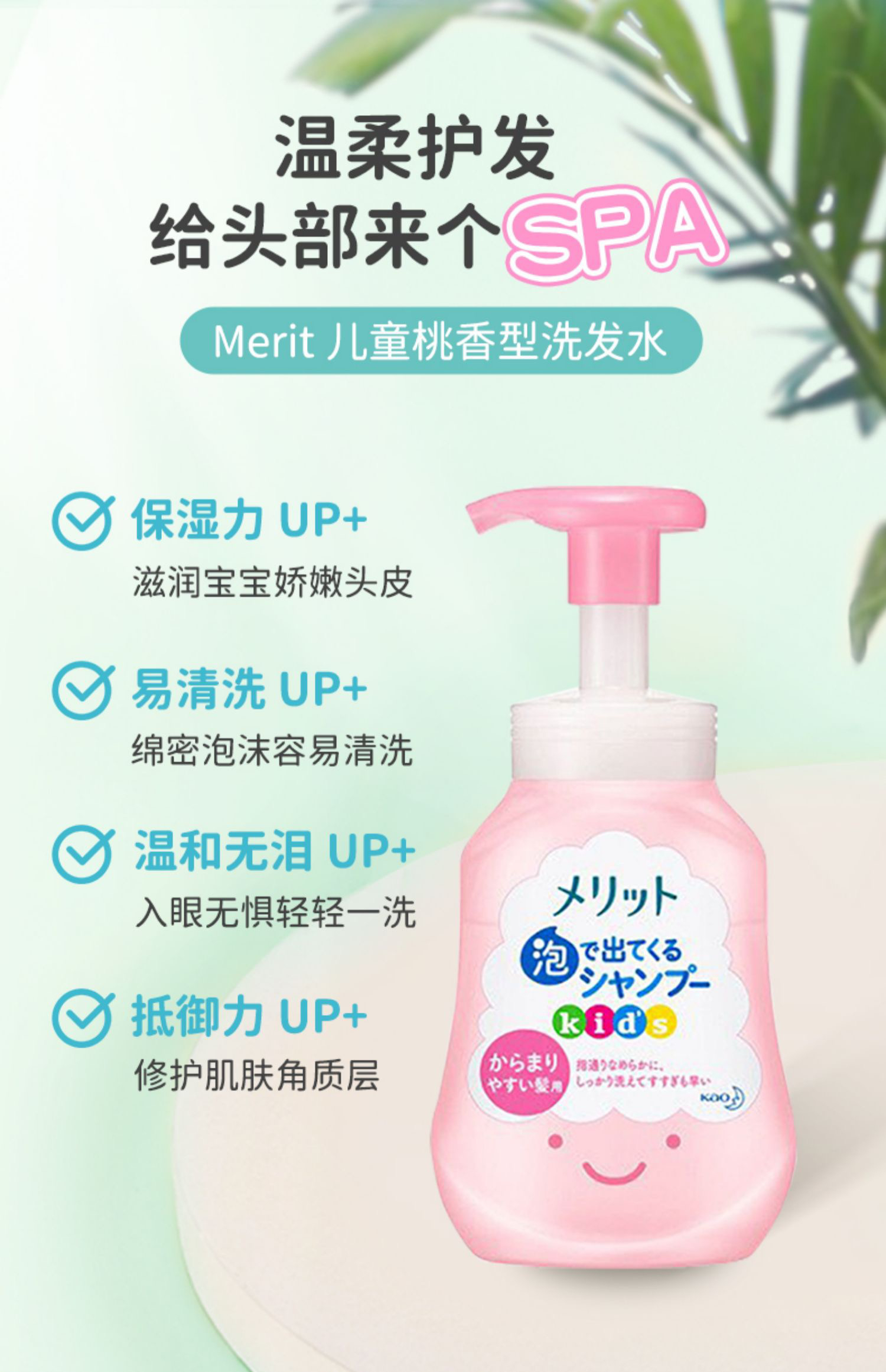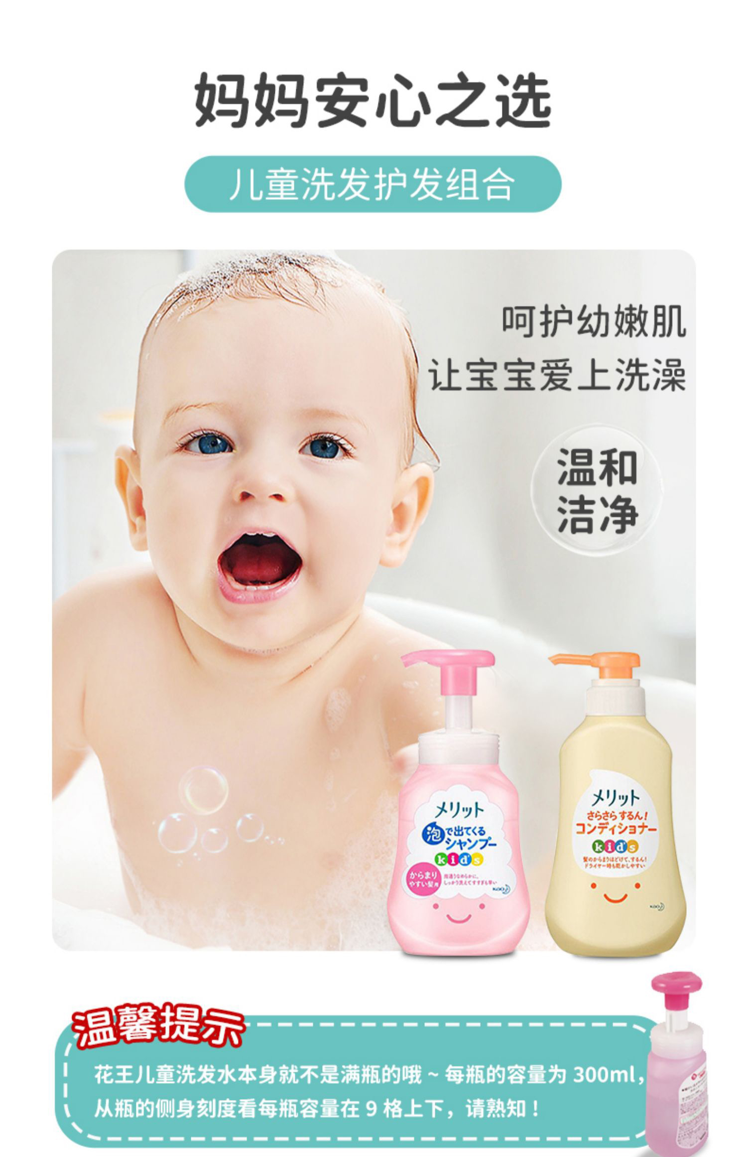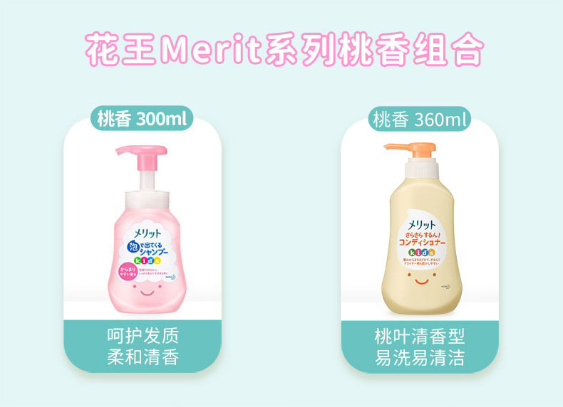 日本花王儿童蜜桃味洗发300ml护发360ml