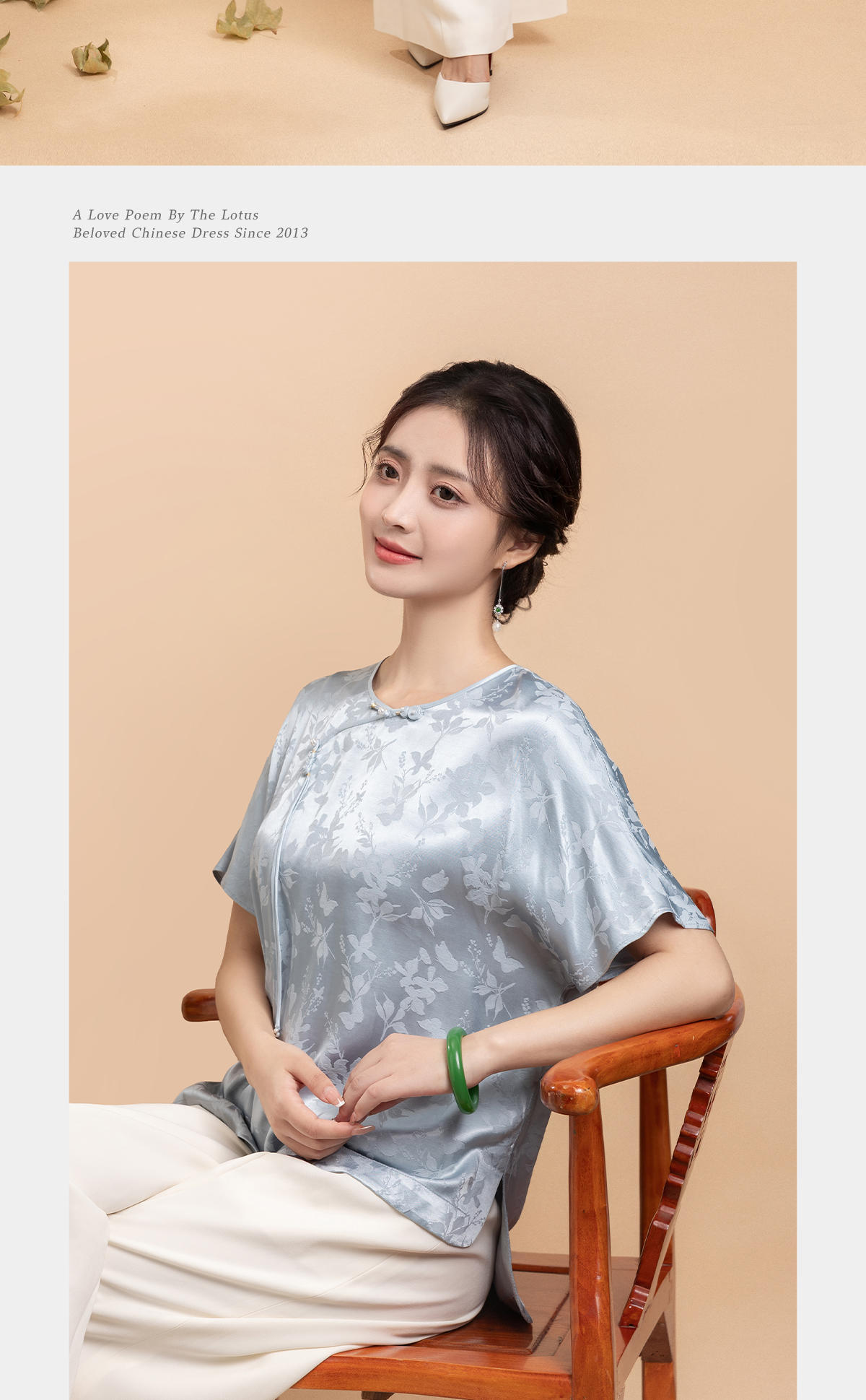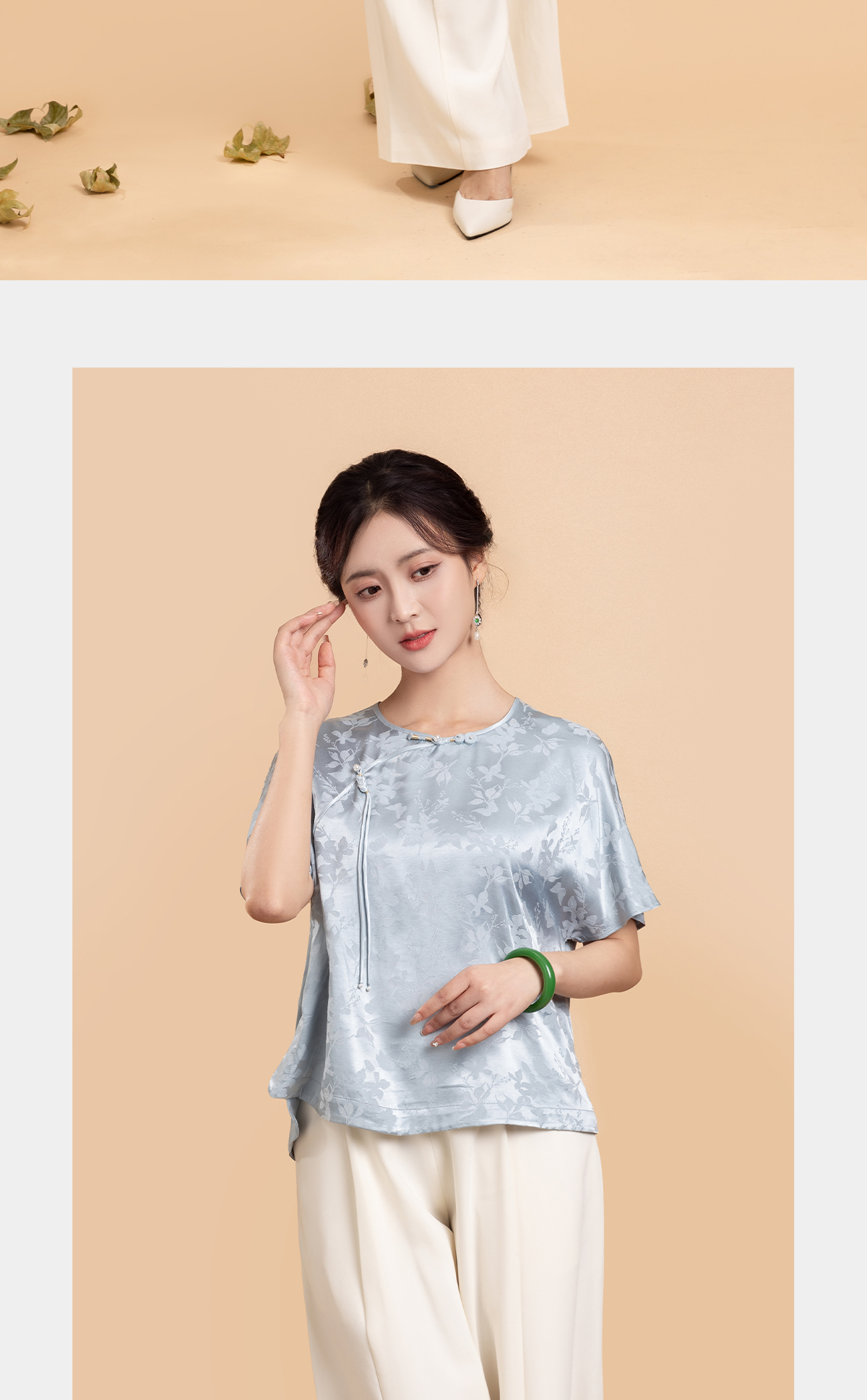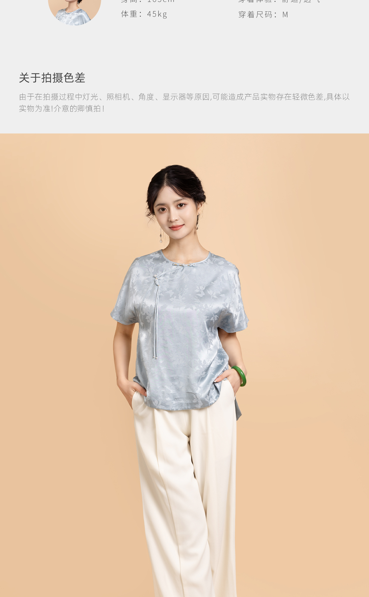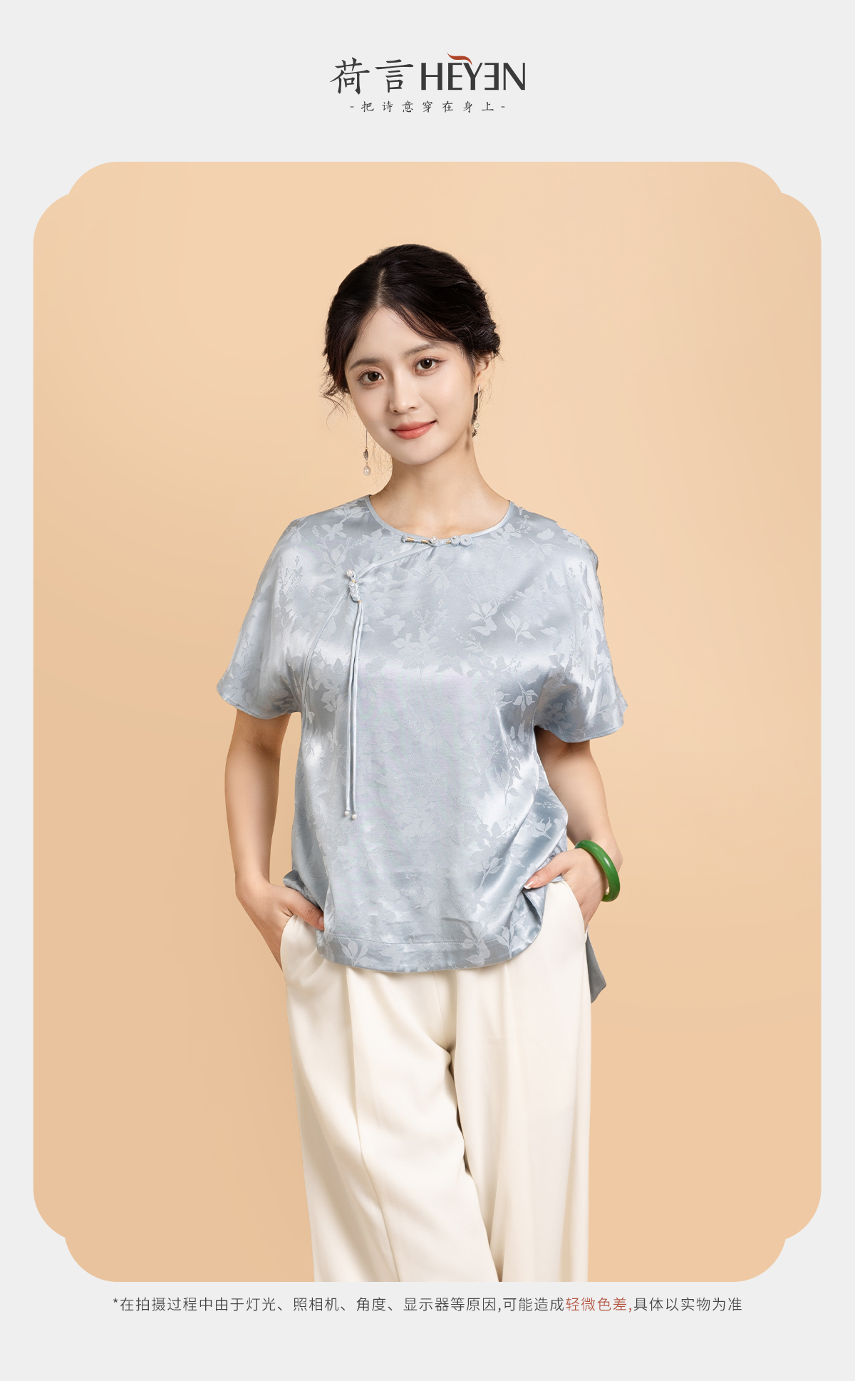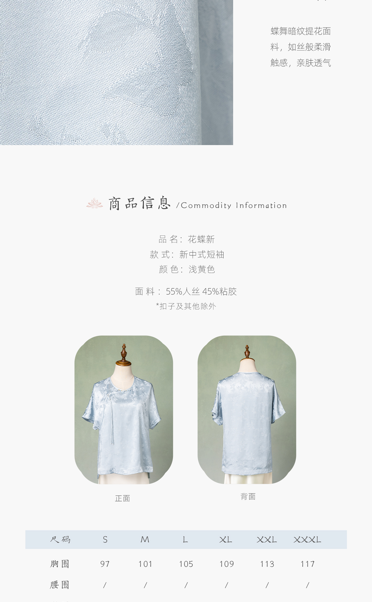 荷言GL 花蝶新 蝴蝶暗纹提花新中式短袖轻薄透气凉感夏季